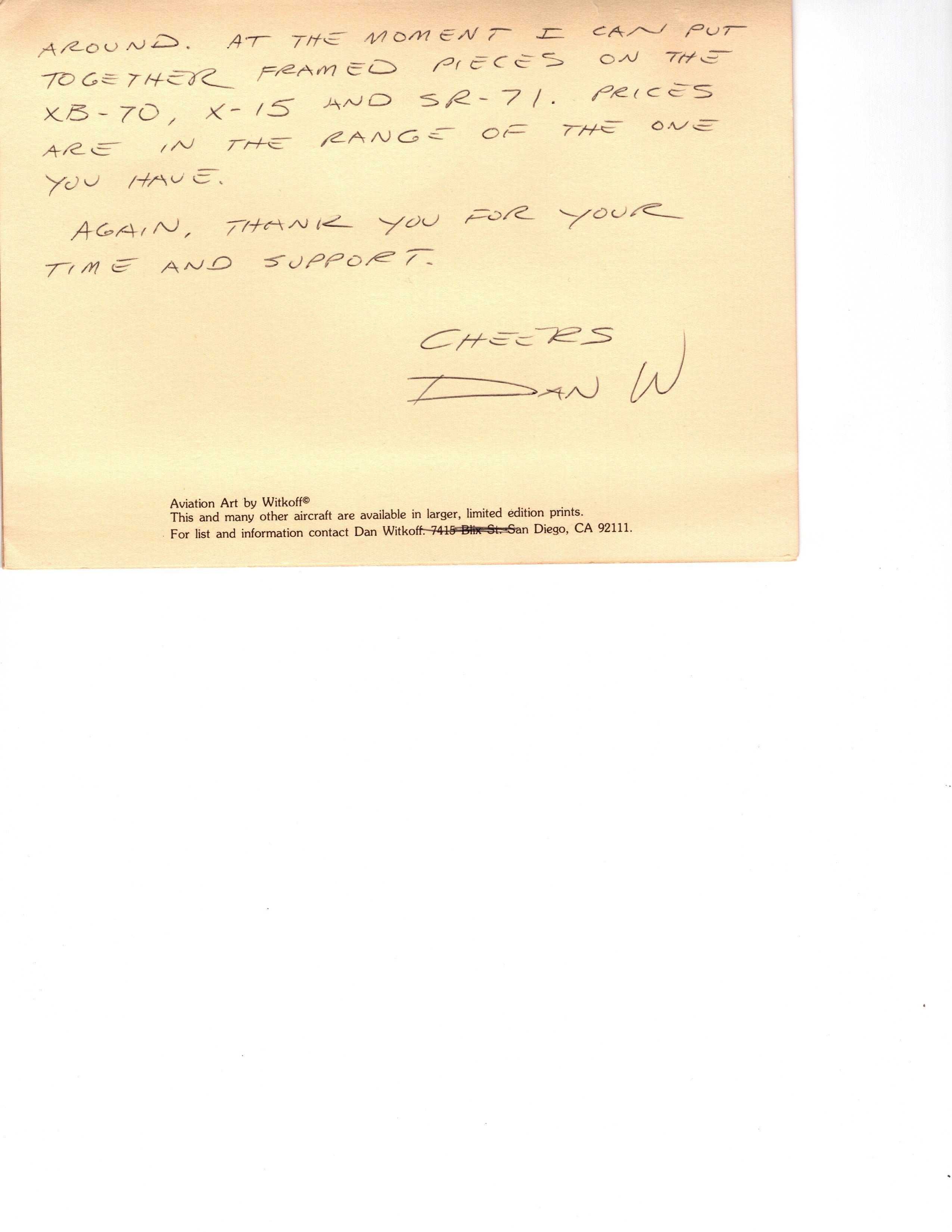 All of this is very nicely mounted under a sheet of glass in a metal frame. It measures about 25 1/4" x 14 1/2" x 1 1/2", and is in wonderful display condition. Included with the piece is some correspondence with the original purchaser and Dan Witkoff, proprietor of Aviation Art by Witkoff, who created this lovely display piece.