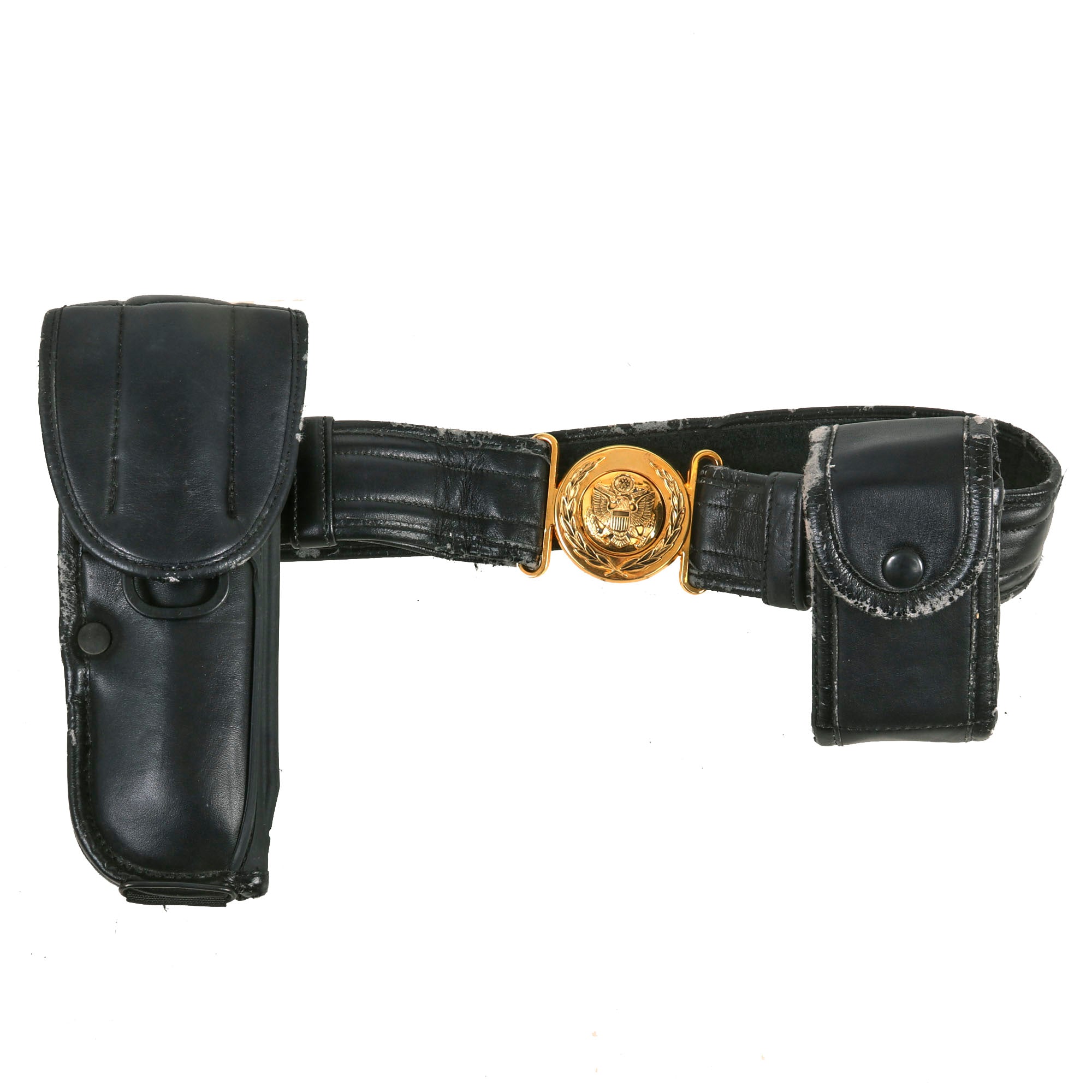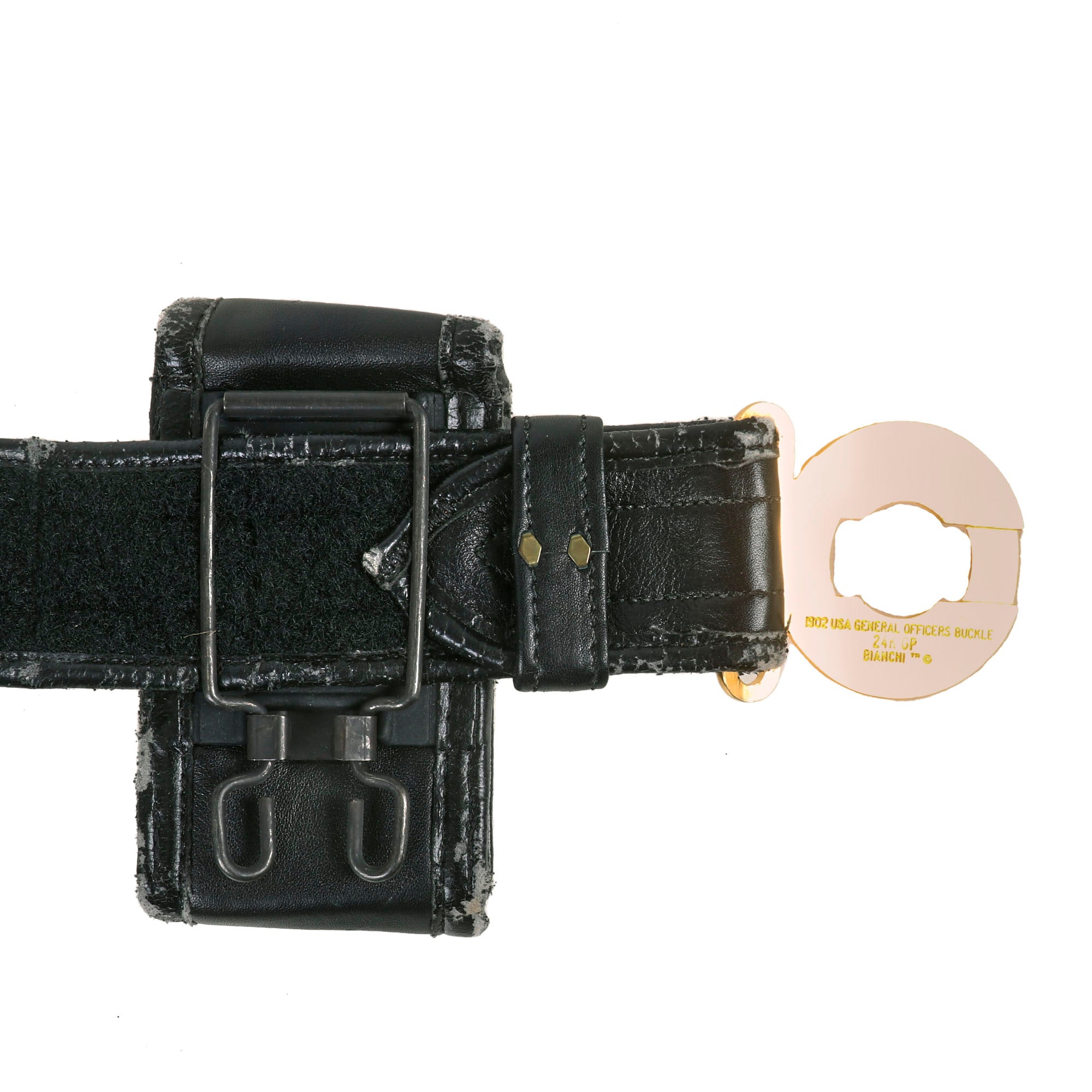 Original Item: Only One Available. This is an excellent example of a Vietnam Era General Officer’s Belt, as issued to Generals of the U.S. Army during the Vietnam War and beyond. This example is affixed with an M9 Beretta Pistol Holster & magazine pouch, which would date it around the Desert Storm period.