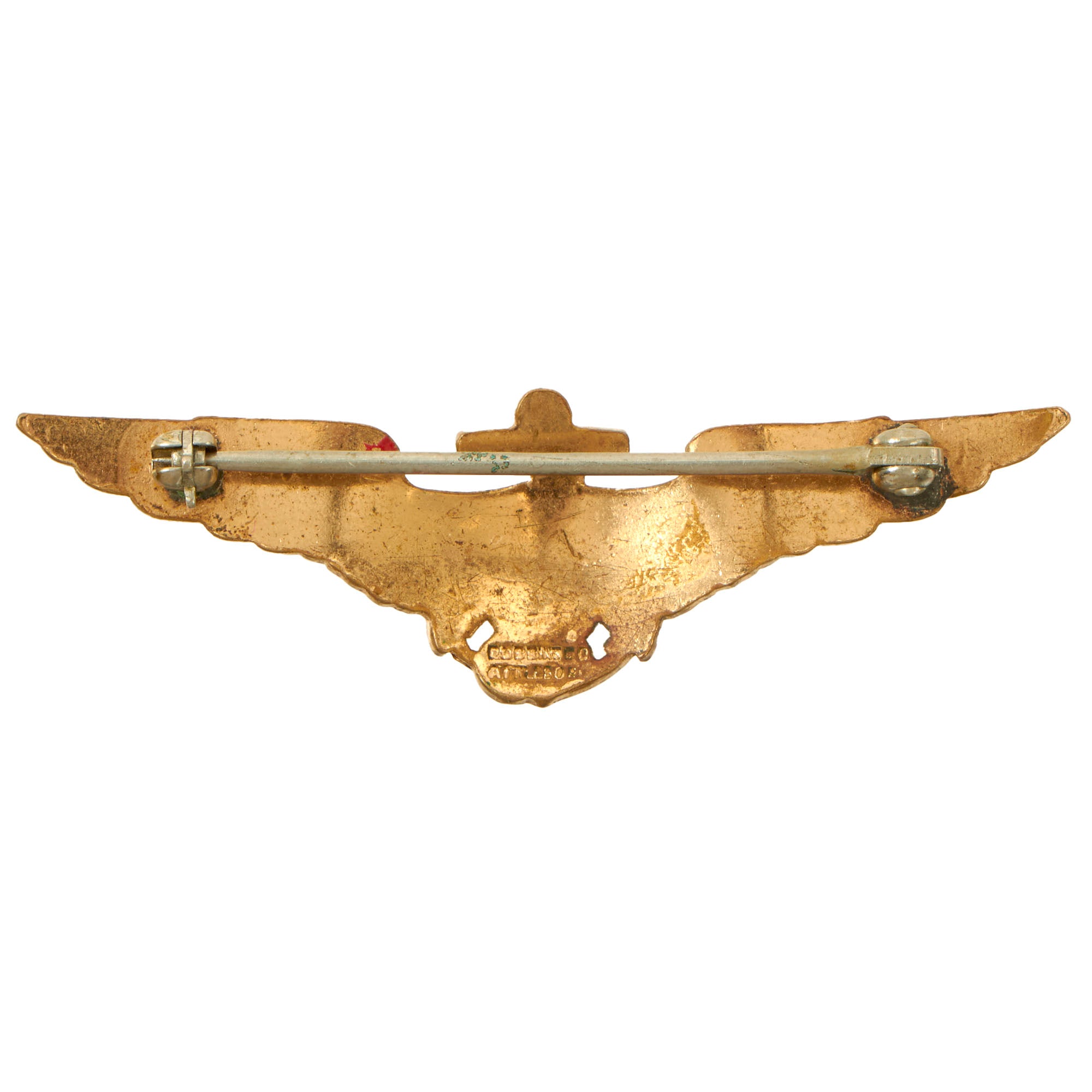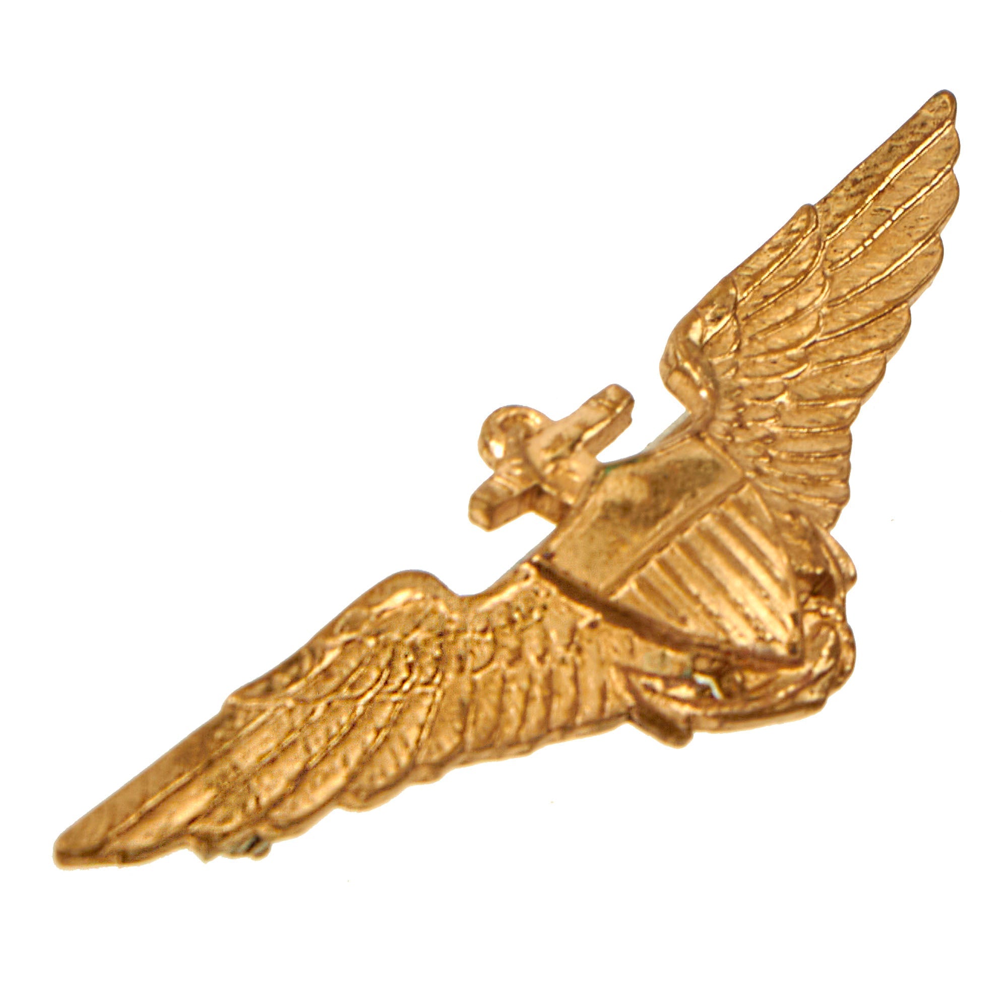 Original Item: Only One Available. This is a lovely Early 1920s US Navy Pilot Shirt Wing, a smaller version of the normal set, only measuring 2” across, manufactured by Robbins Co. and offered in excellent condition. The reverse is marked for Robbins Company of Attleboro, Massachusetts. The feathering and detail on this wing is absolutely beautiful.The wings have lovely detailing and the markings on the reverse are clear. The roller latch is in good condition and functions as intended.A very nice set by a well-known maker, ready for further research and display.