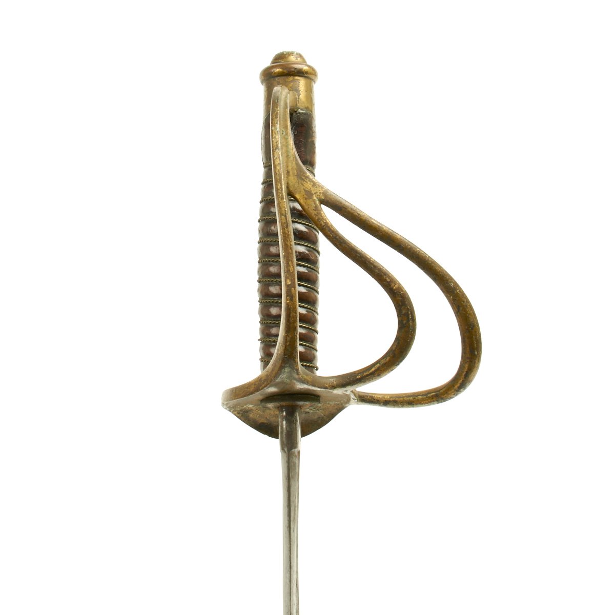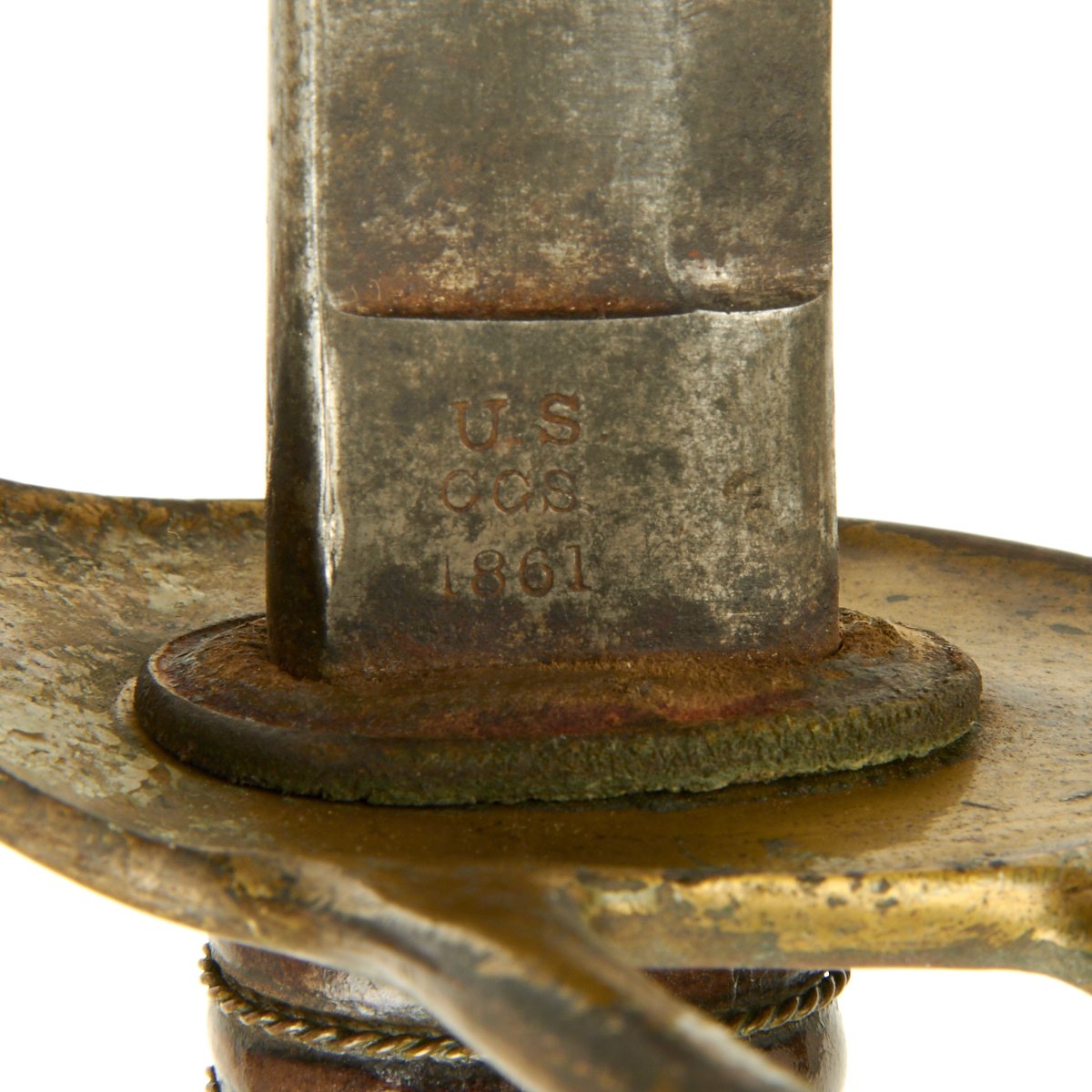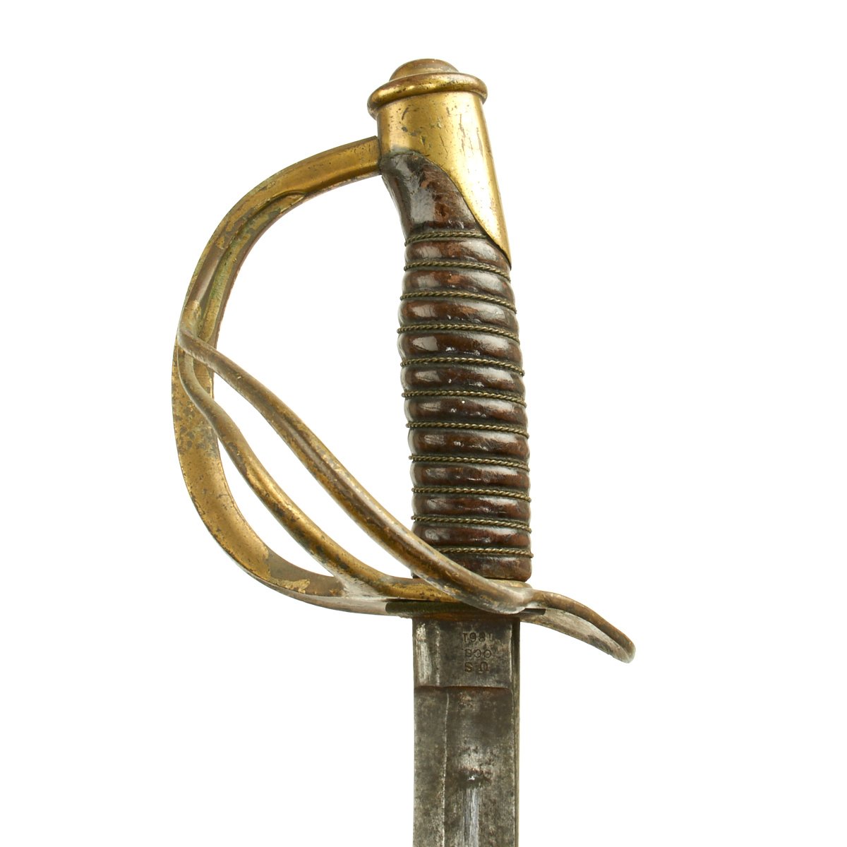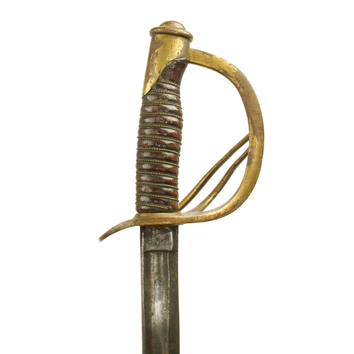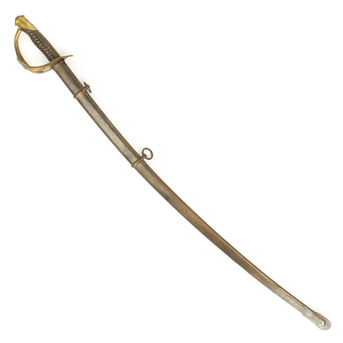 Original Item: One Only. This is a genuine Union cavalry trooper's curved M-1860 saber. It is in very good condition with expected wear from age and storage. The markings at the base of the blade are very clear and the brass hilt is in perfect order. The leather grip binding is tight and still in place wrapped with brass wire. The saber comes complete with the correct matched all steel scabbard.