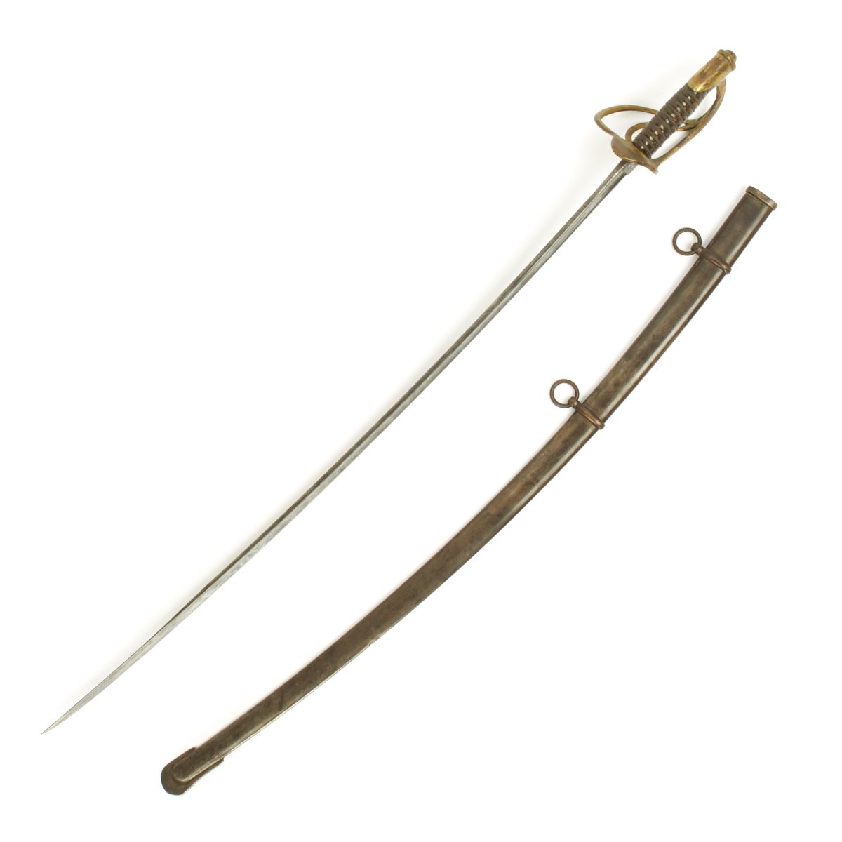 This is the sword the cavalry use in Westerns, many being original antiques purchased by the movie industry in the 1920s when surplus Civil War equipment was cheap.