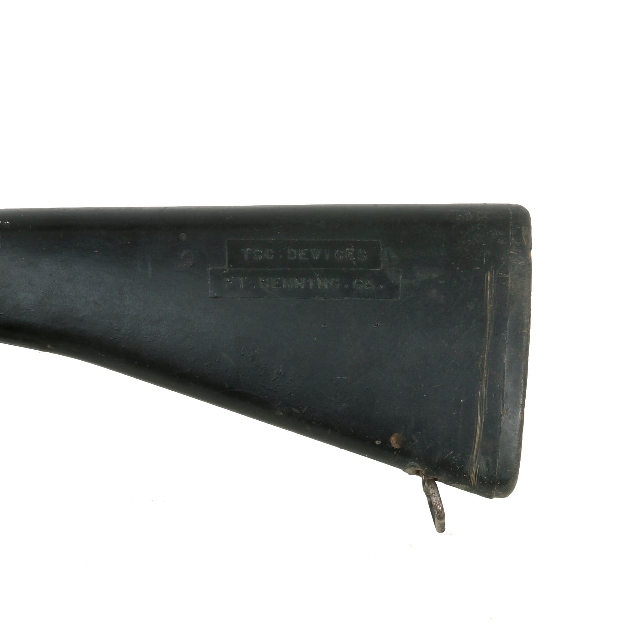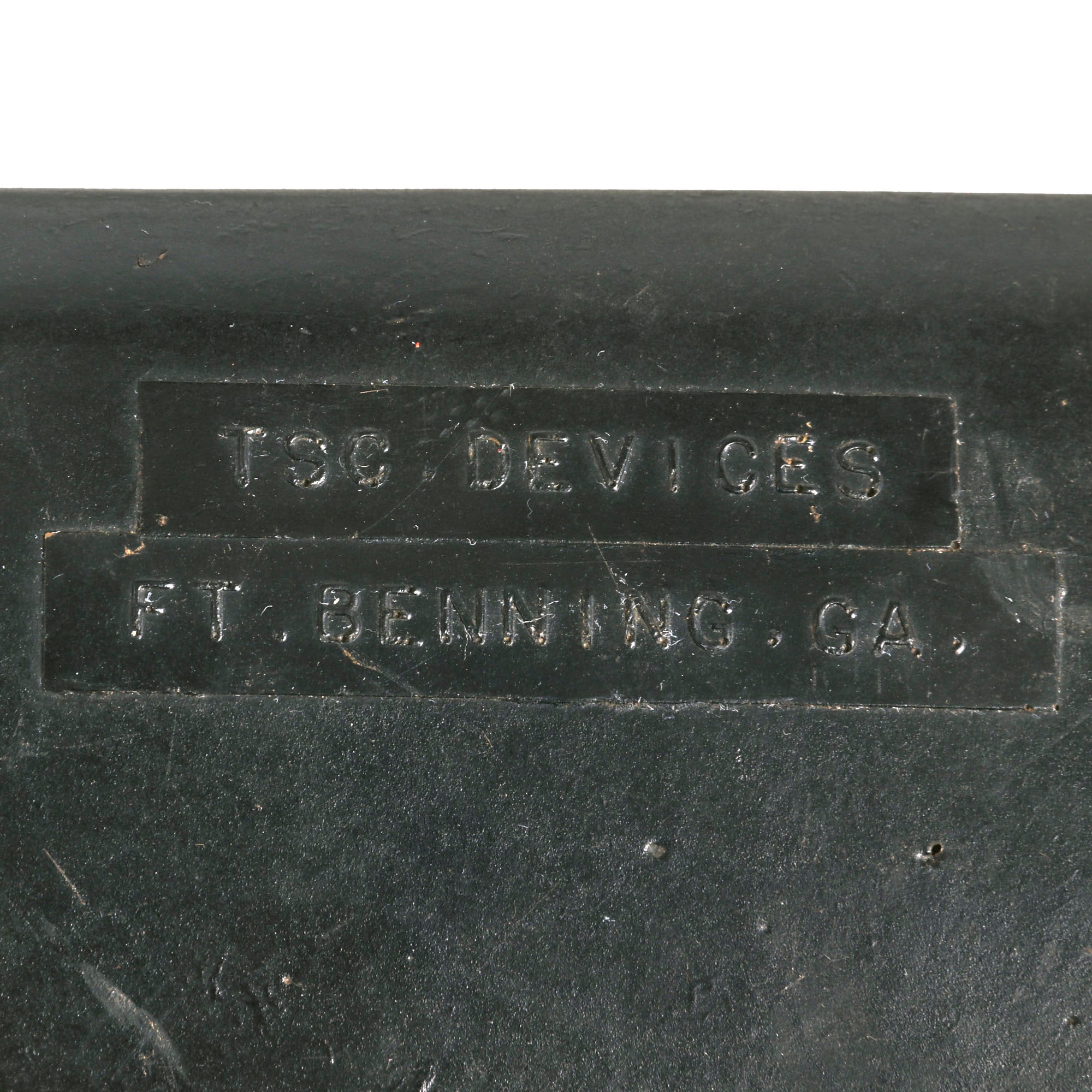 This would indicate that it was made by the Training Support Command at Fort Benning in Georgia. It does show signs of use, and has some damage to the center area as mentioned, but certainly looks the business. Would like great hanging from a wall!