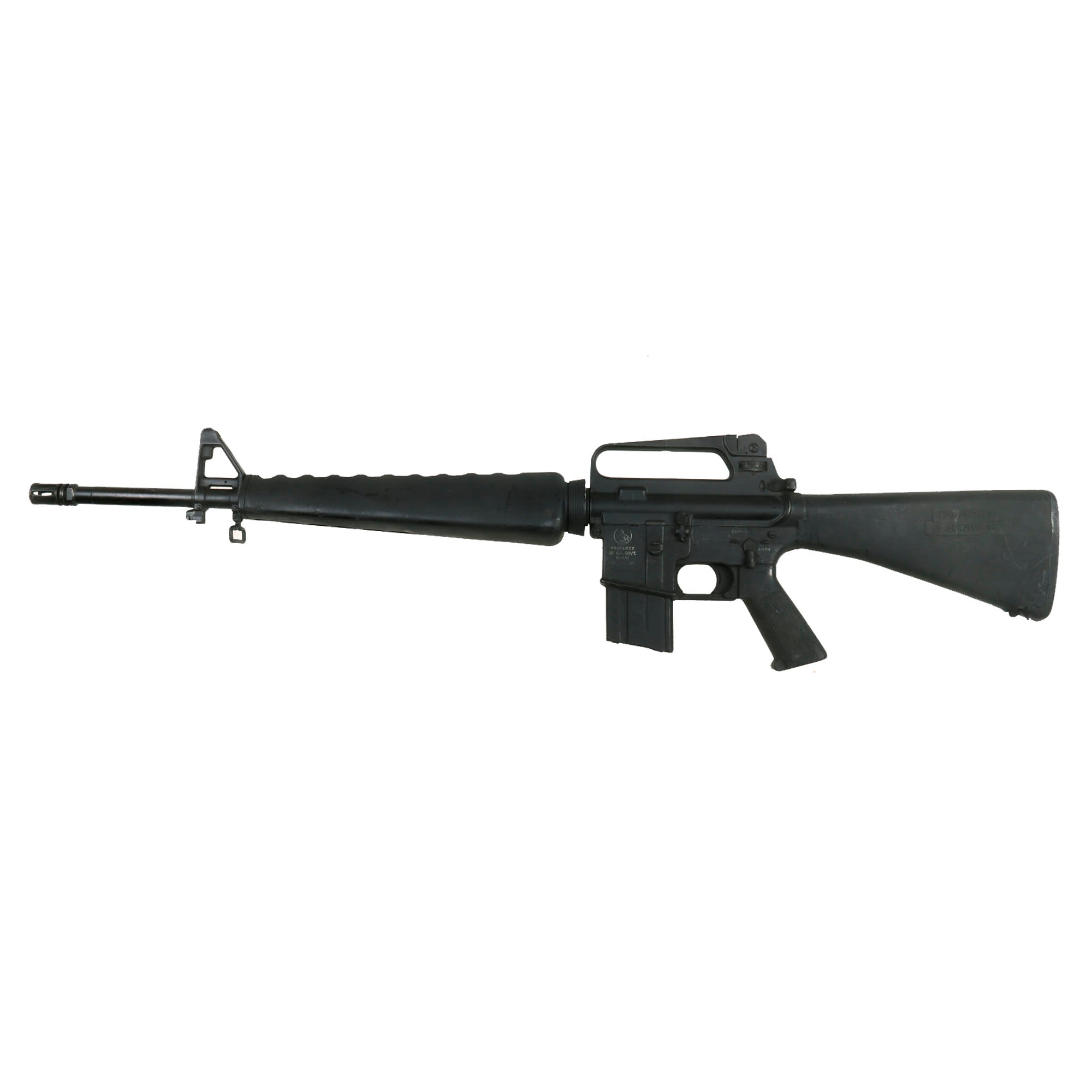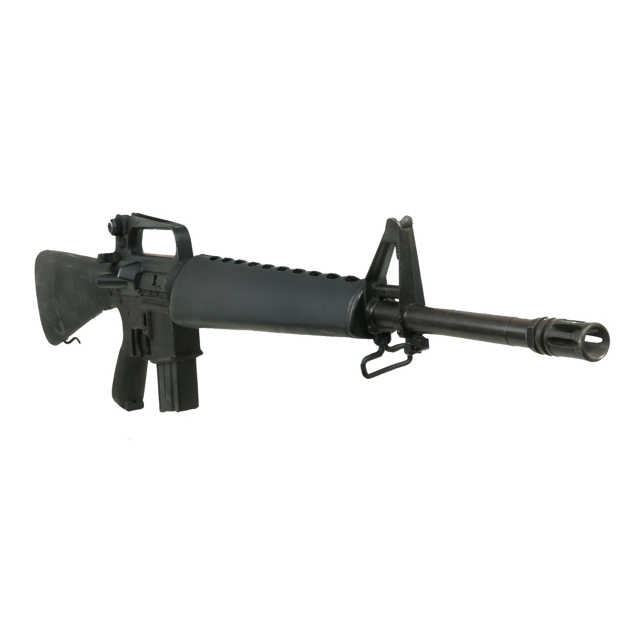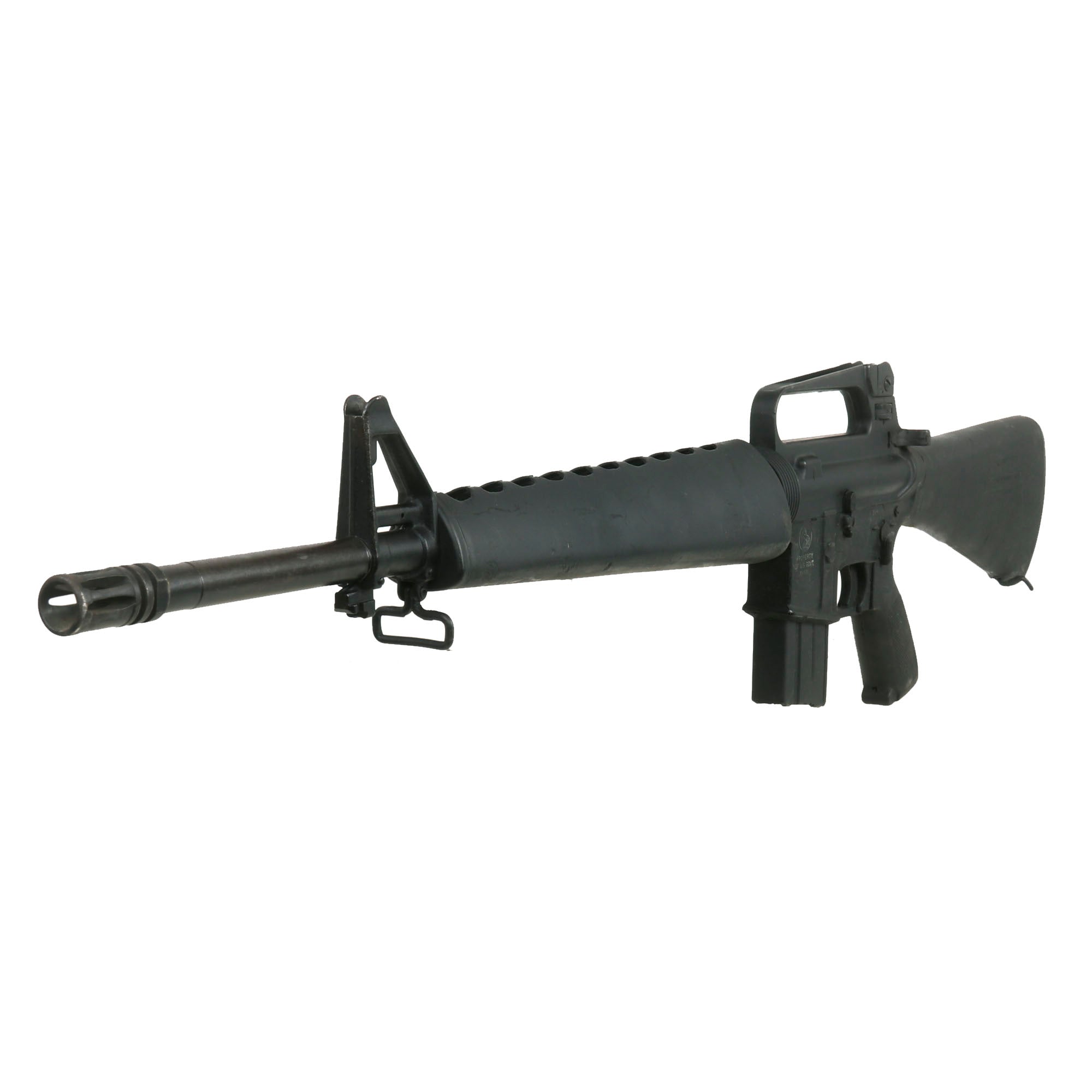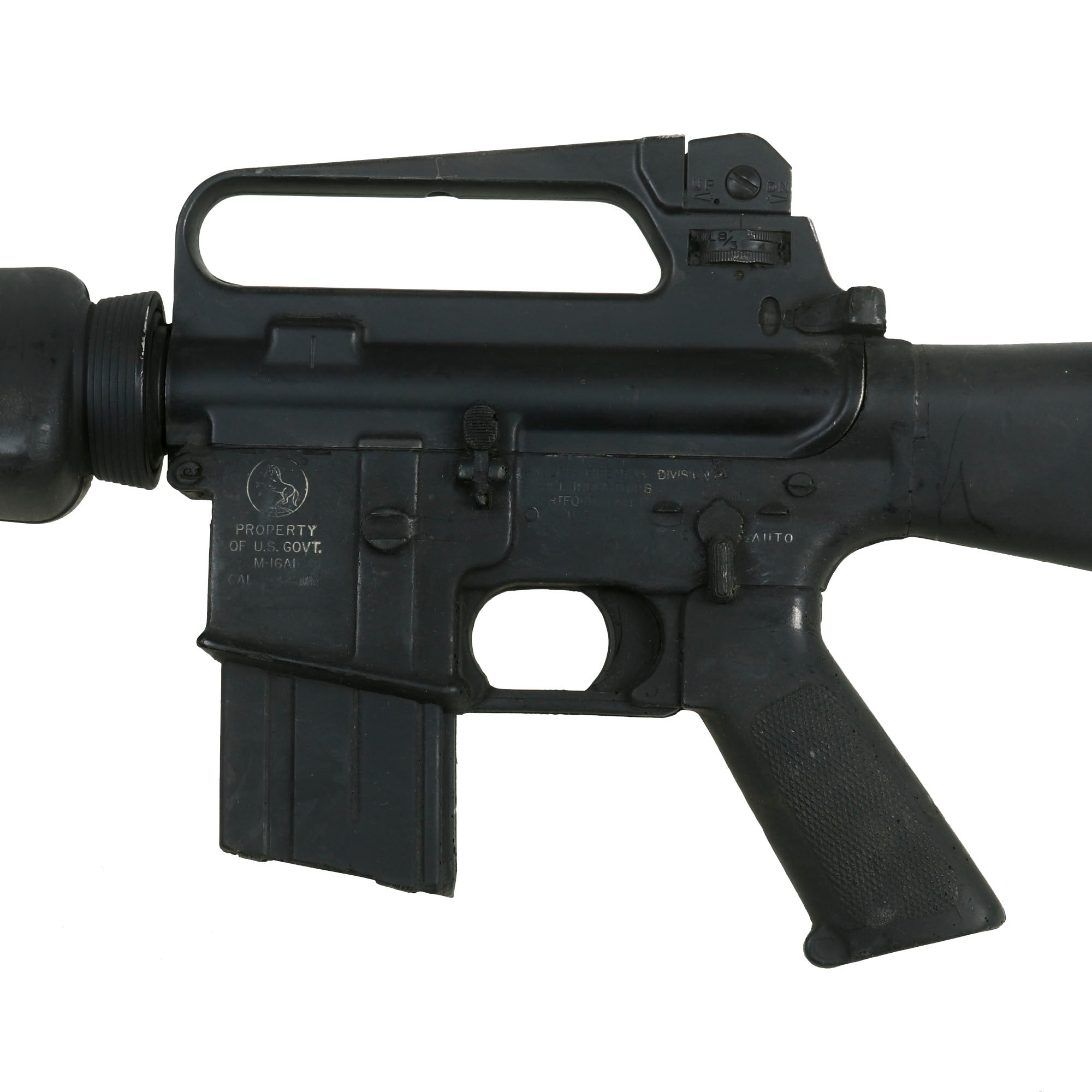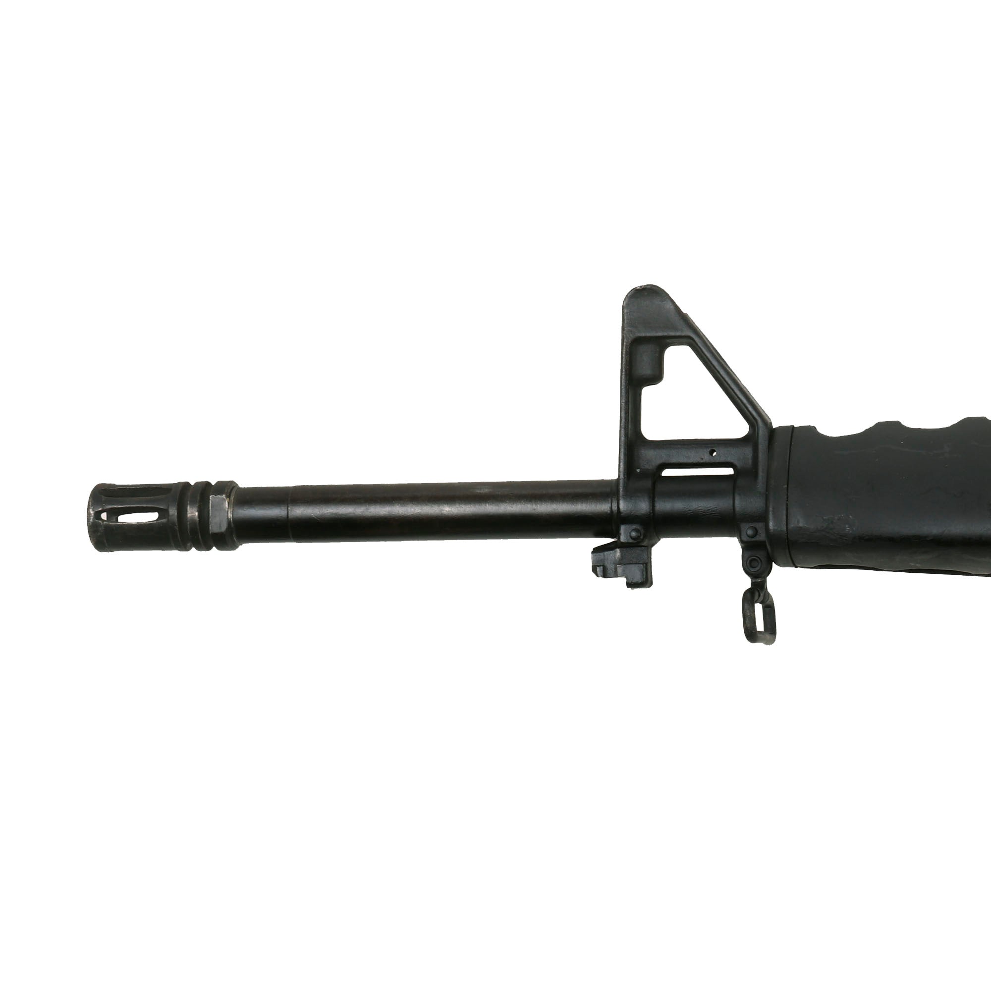 Original Item: Only One Available. Colt M16A1 Military issue non-functional RUBBER DUCK training and parade rifle. Features genuine M16 components, held together with resin construction. This early example has more original components than most, and looks to have an original metal barrel, muzzle brake, front sight, front sling swivel, and even an aluminum upper receiver with rear sight. The fore grip / heat shield also looks to be an original component. These would later all be replaced with rubber / resin.