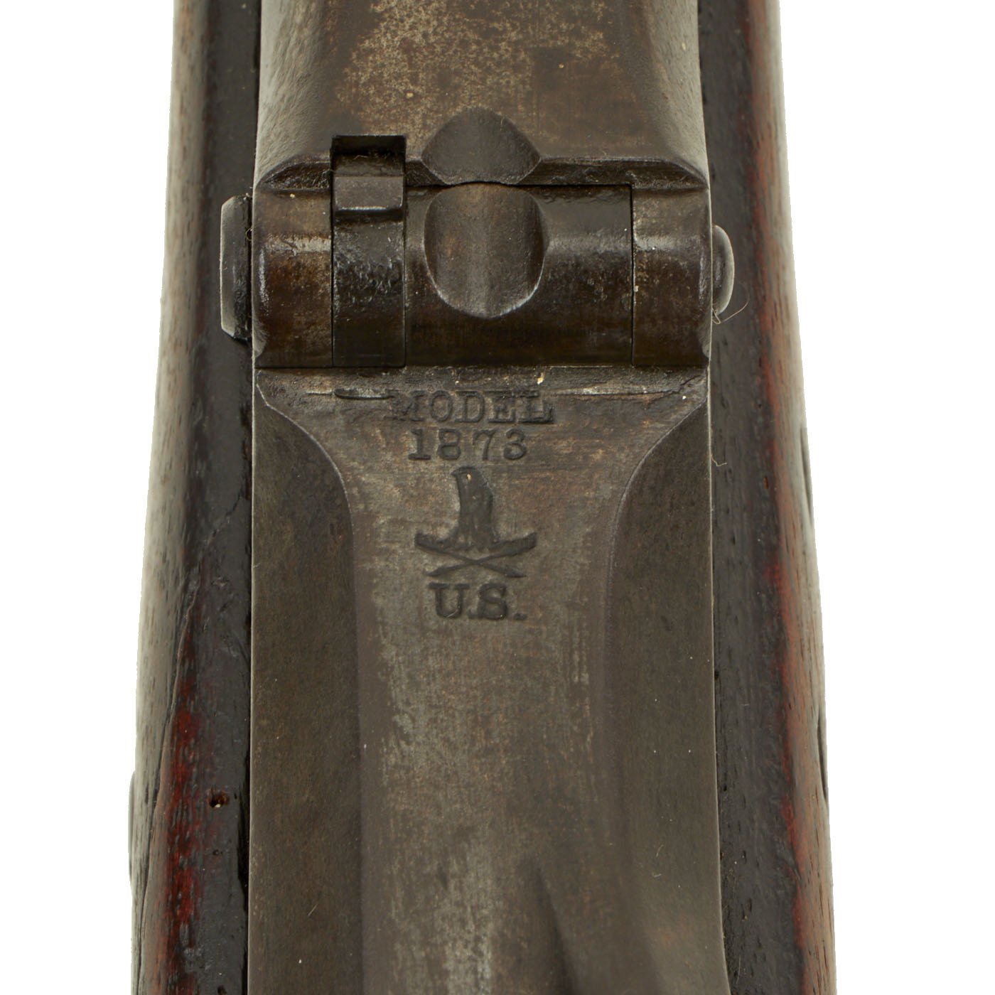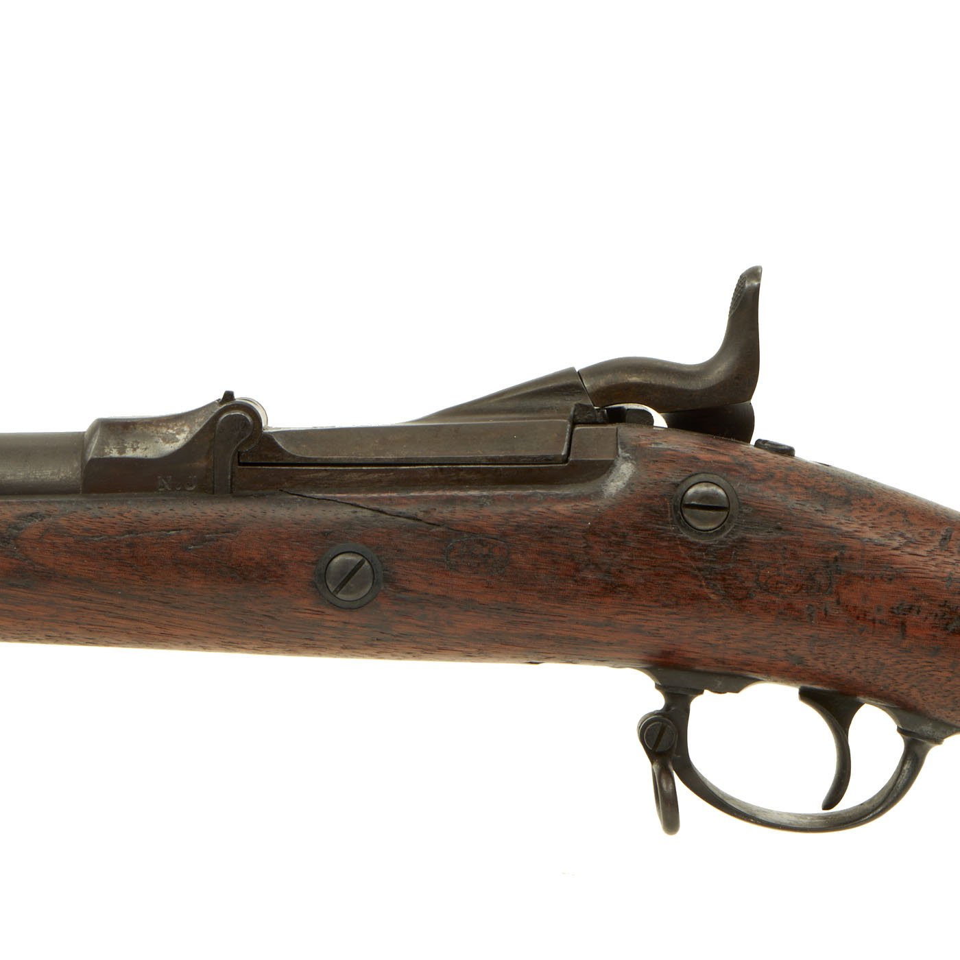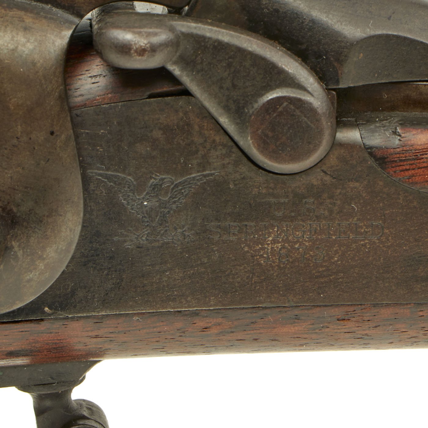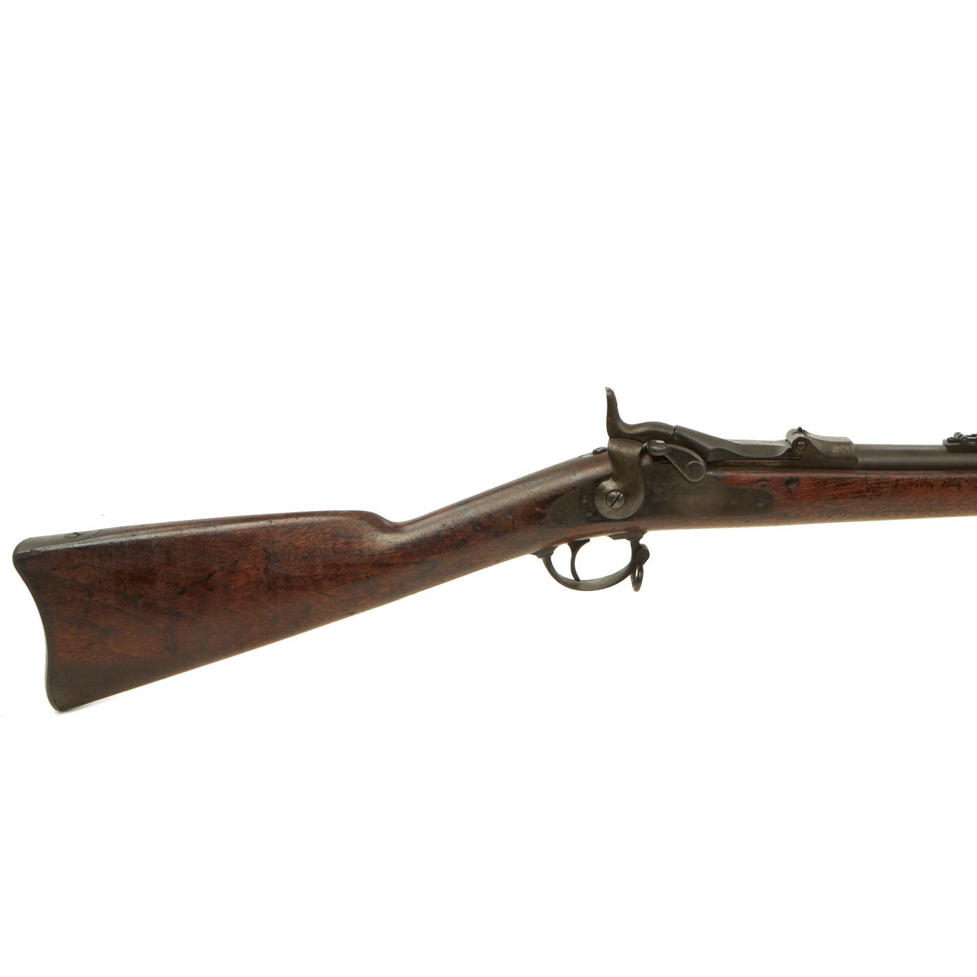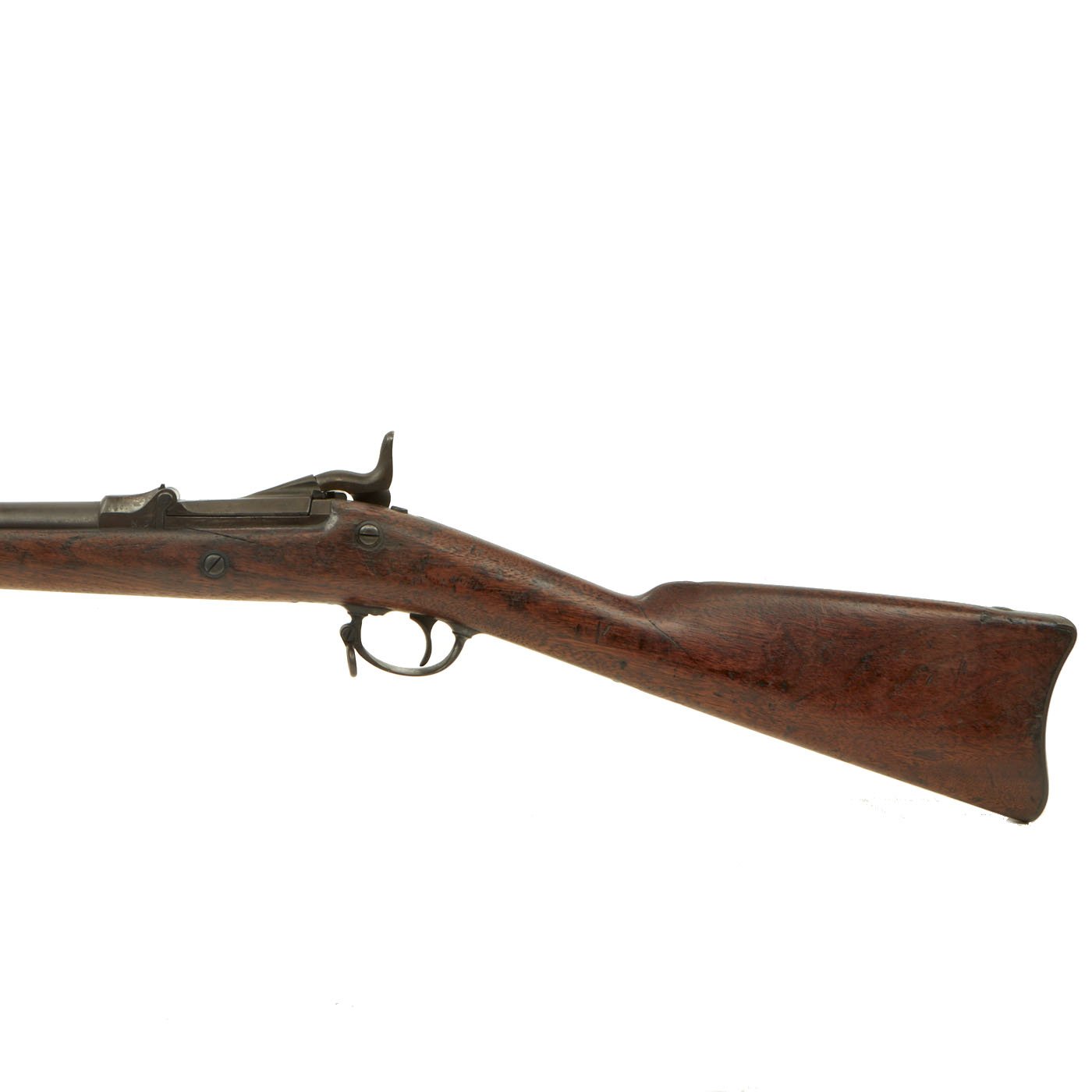 Original Item: Only One available. This is a VERY early example of the classic Springfield trapdoor rifle, with some features that were removed in the subsequent years. The most noticeable of these are the early 1st pattern "stepped" rear sight and "long wrist" on the stock. This is the weapon used, in its carbine form, by the troopers of the 7th Cavalry that met their fate at the Battle of Little Big Horn in 1876. The breech block is marked: