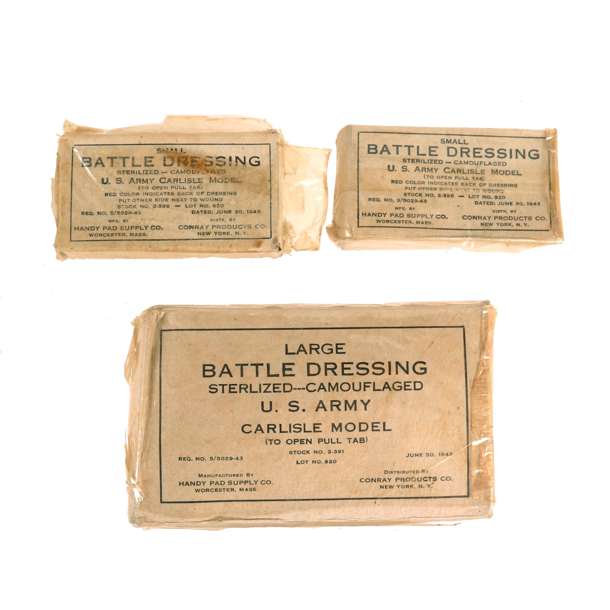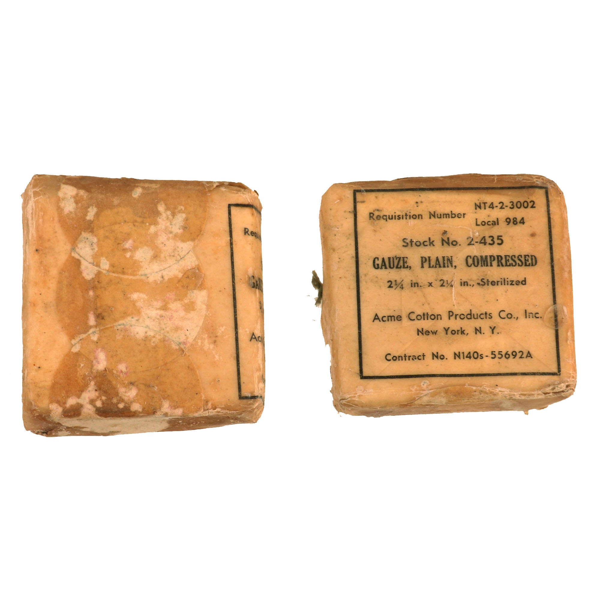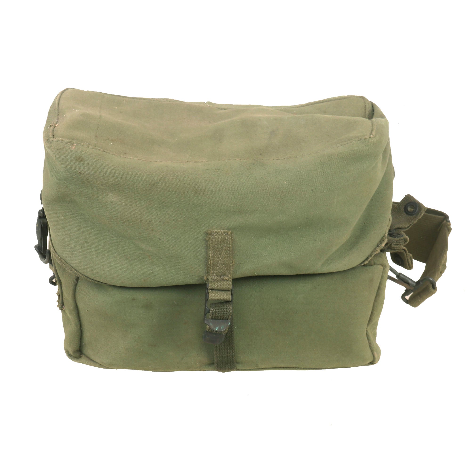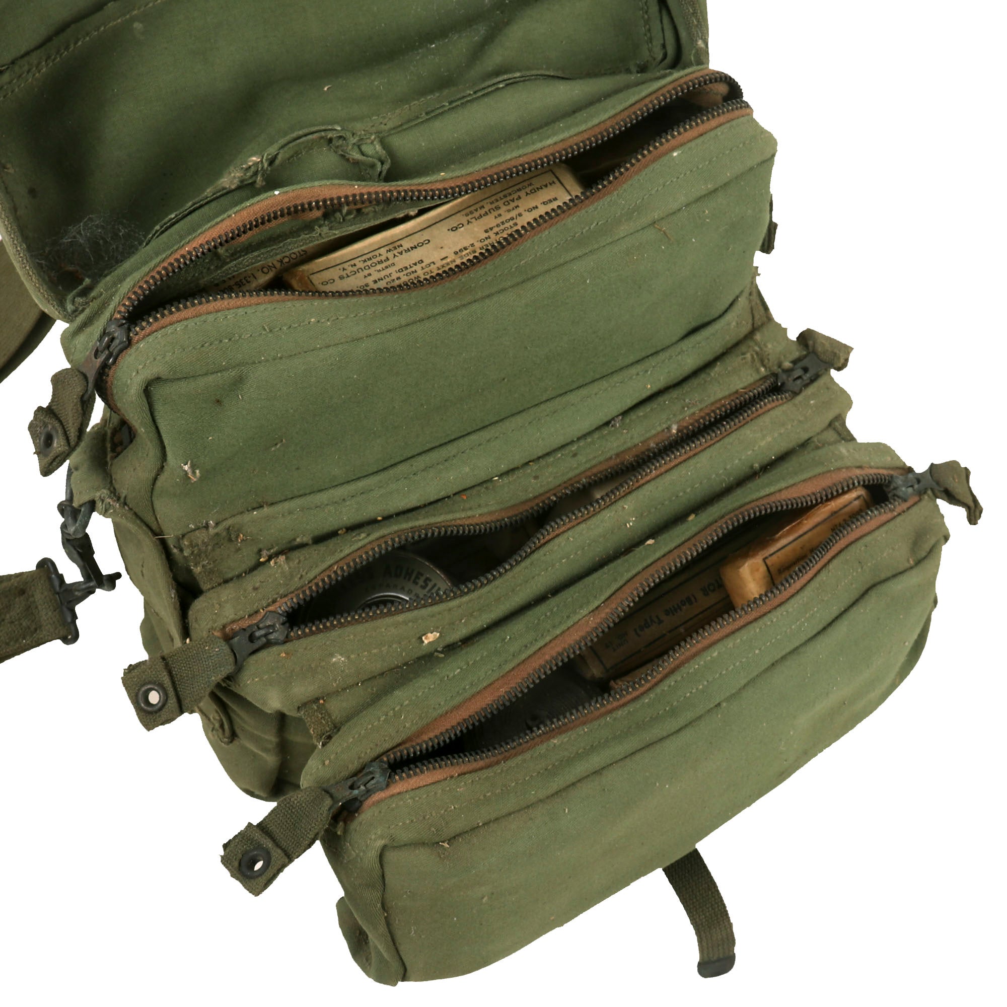 This M3 rubberized medics’ bag is free of any major damage but does show signs of heavy usage due to the wear and fading to the exterior. The contents inside consist of various WW2 dated bandages, which was not uncommon during the Korean War. There are unopened battle dressings, medical tape, water purification tablets, iodine tablets, sodium tablets, Calamine lotion and much more medical material.