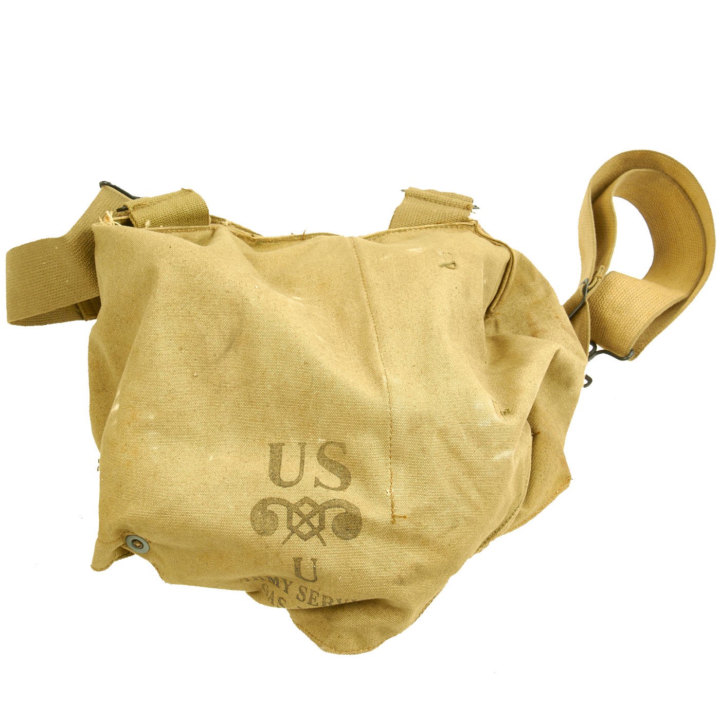 Original Item: Only One Available. This is a very nice example of the first type of gas mask that the United States fielded in WWII. The M1 Design had first come about in 1921 as an improvement of the M1919 gas mask, developed at the end of WWI. It then went through several improvements, with the M1A2 being introduced in 1934, and remaining the standard U.S. Gas mask into the early years of WWII. This example has the correct U.S. / U marking on the forehead, indicating the "Universal" size of the M1A2.