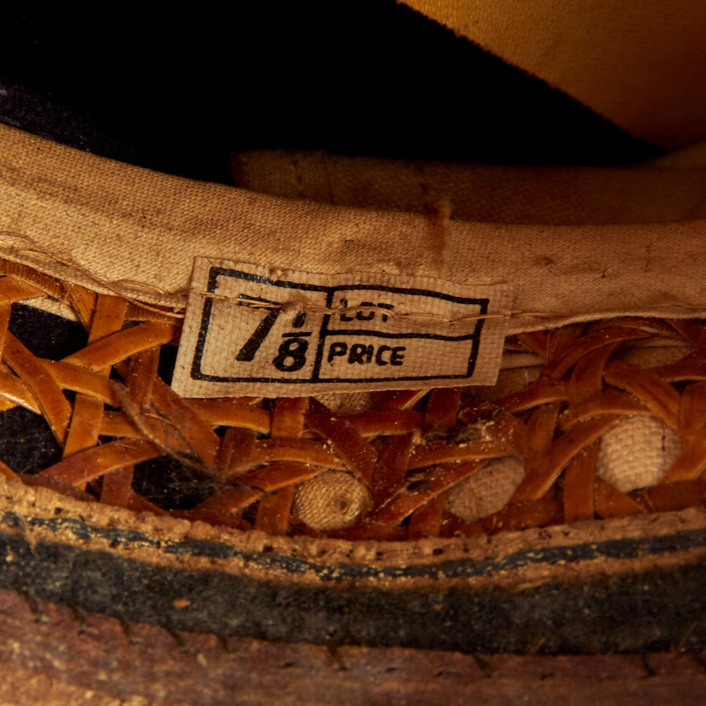 The visor still bears a manufacturers stamp on the top celluloid piece: