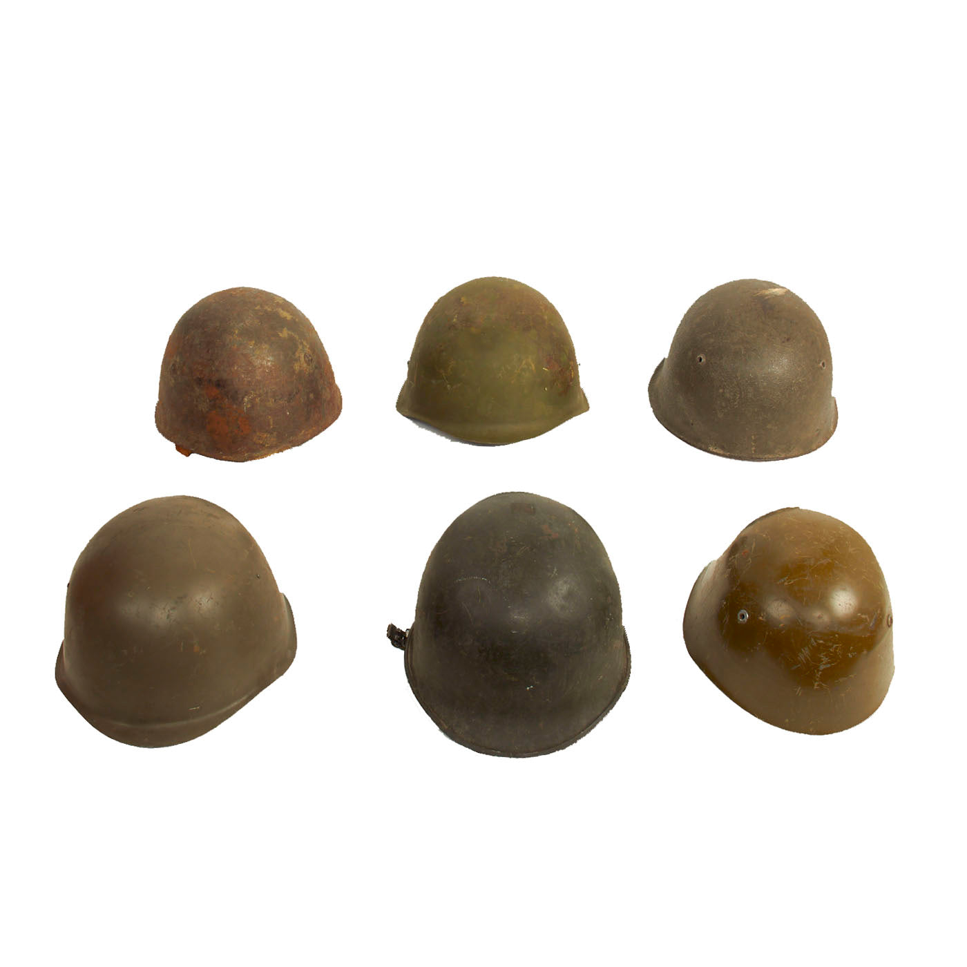 Original Items: Only One Lot of 6 Available. A combat helmet or battle helmet is a type of helmet. It is a piece of personal armor designed specifically to protect the head during combat. Modern combat helmets are mainly designed to protect from shrapnel and fragments, offer some protection against small arms, and offer a mounting point for devices such as night vision goggles and communications equipment.