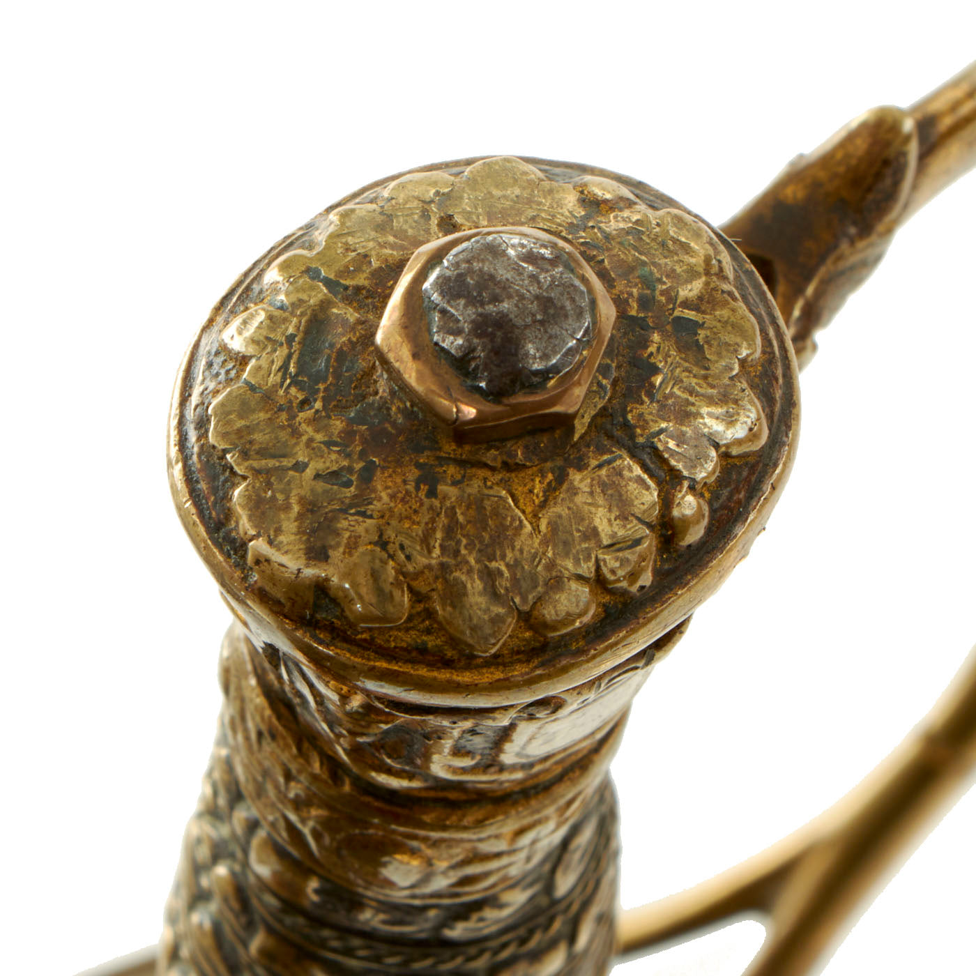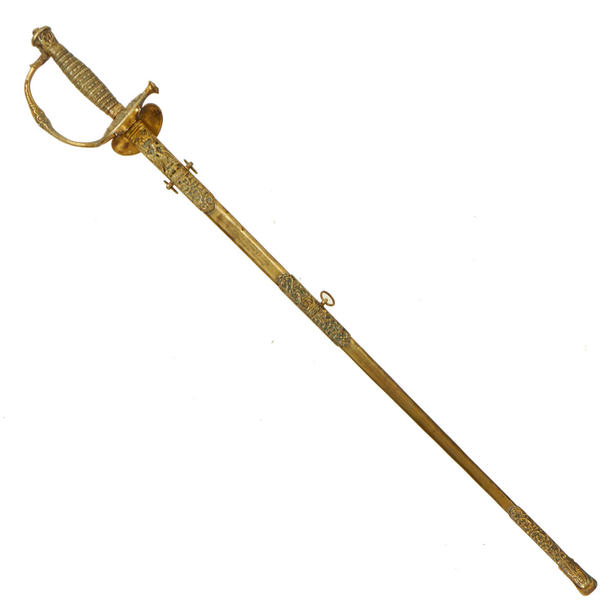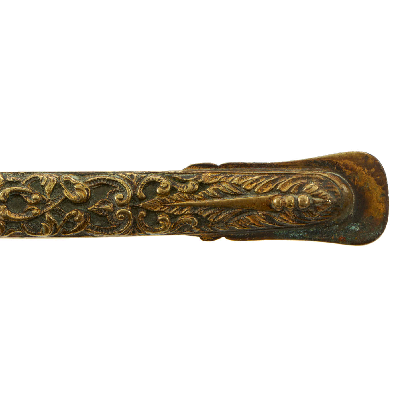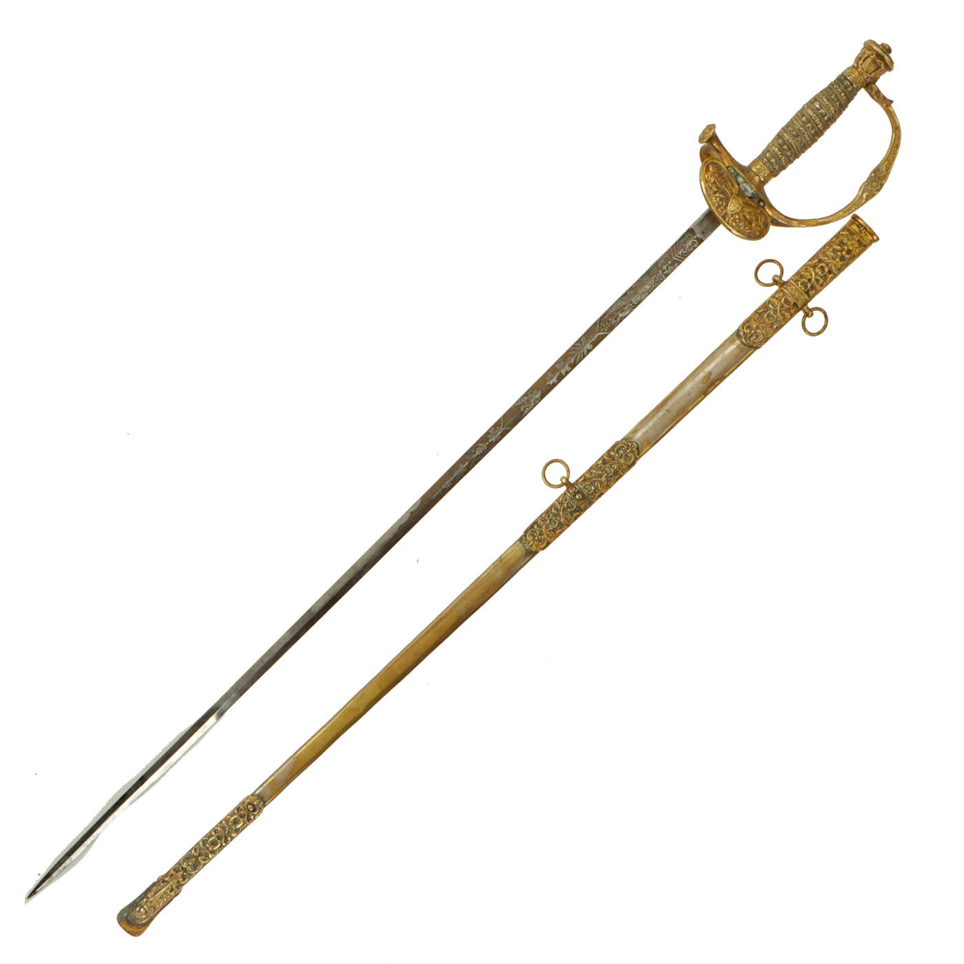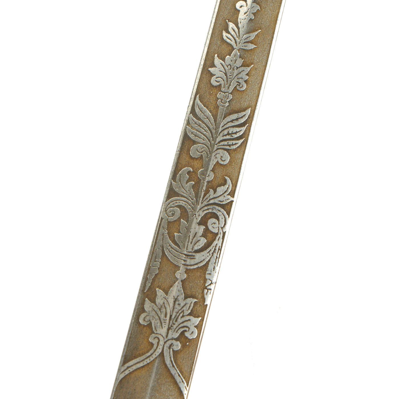 Original Item: One Of A Kind: Beautiful Presentation Grade Model 1860 Staff and Field Officer’s Sword by an unknown firm. Dating the Model 1860 Staff and Field Officer’s Sword is difficult as they were made from 1860-1900. Generally, the best way to date the sword is either by the maker or the blade used on the sword itself. Elliptical double-edged blades are the earliest, which is what our example has.