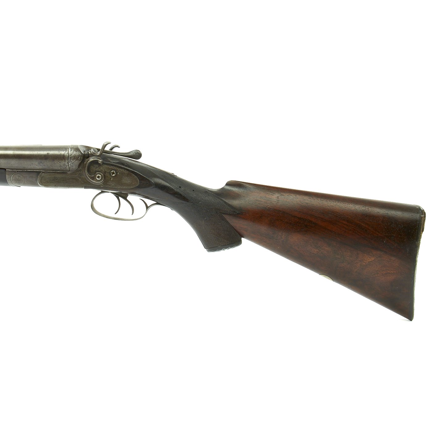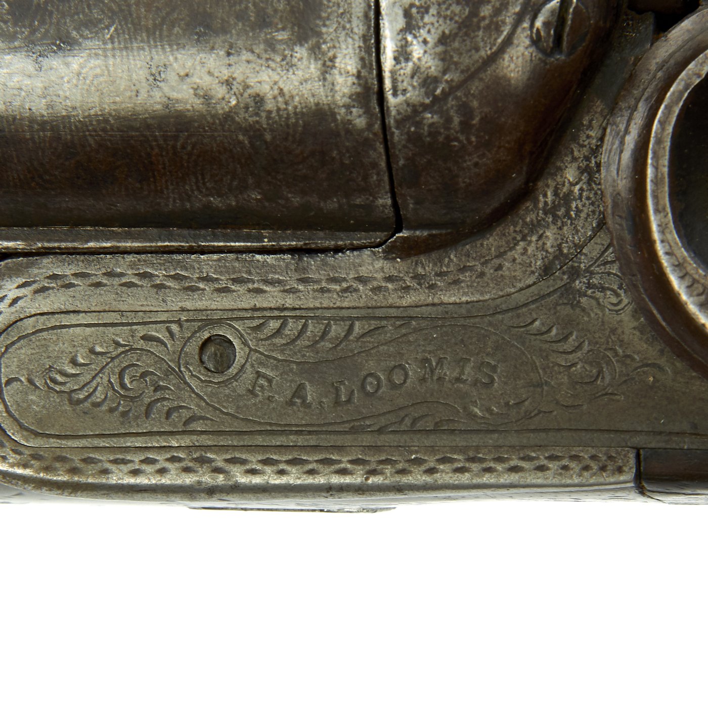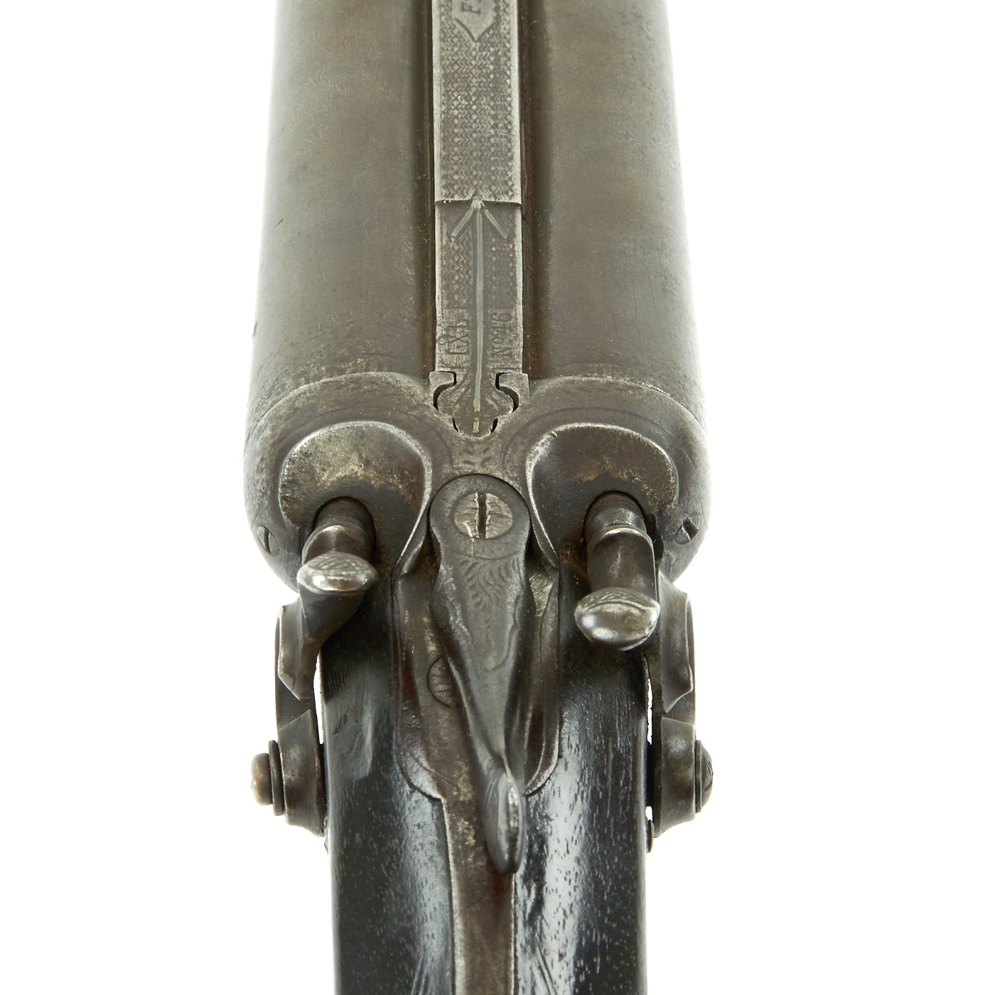 Removing the fore stock and barrel reveal the serial number of 51118, along with various proof and choke specification markings for the barrels, including the gauge of 11. The presence of Birmingham proof marks shows that this is an Imported British gun, made for the U.S. Shotgun trade, which was substantial. We have not been able to find much about F. A. Loomis, except that it was a trade name, possibly out of Folsom or some other area. However, that discussion is more academic than anything else, and not the most interesting matter regarding this fine shotgun by far.