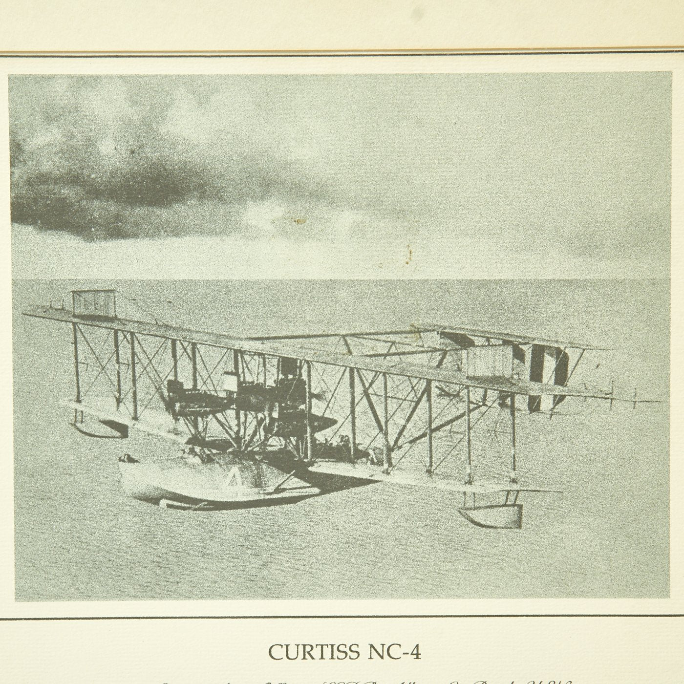 Original Items: One-of-a-kind set. This is a great piece of Early U.S. Aviation history! The NC-4 was a Curtiss NC flying boat that was the first aircraft to fly across the Atlantic Ocean, albeit not non-stop. The NC designation was derived from the collaborative efforts of the Navy (N) and Curtiss (C). The NC series flying boats were designed to meet wartime needs, and after the end of World War I they were sent overseas to validate the design concept. The aircraft was designed by Glenn Curtiss and his team, and manufactured by Curtiss Aeroplane and Motor Company, with the hull built by the Herreshoff Manufacturing Corporation in Bristol, Rhode Island.