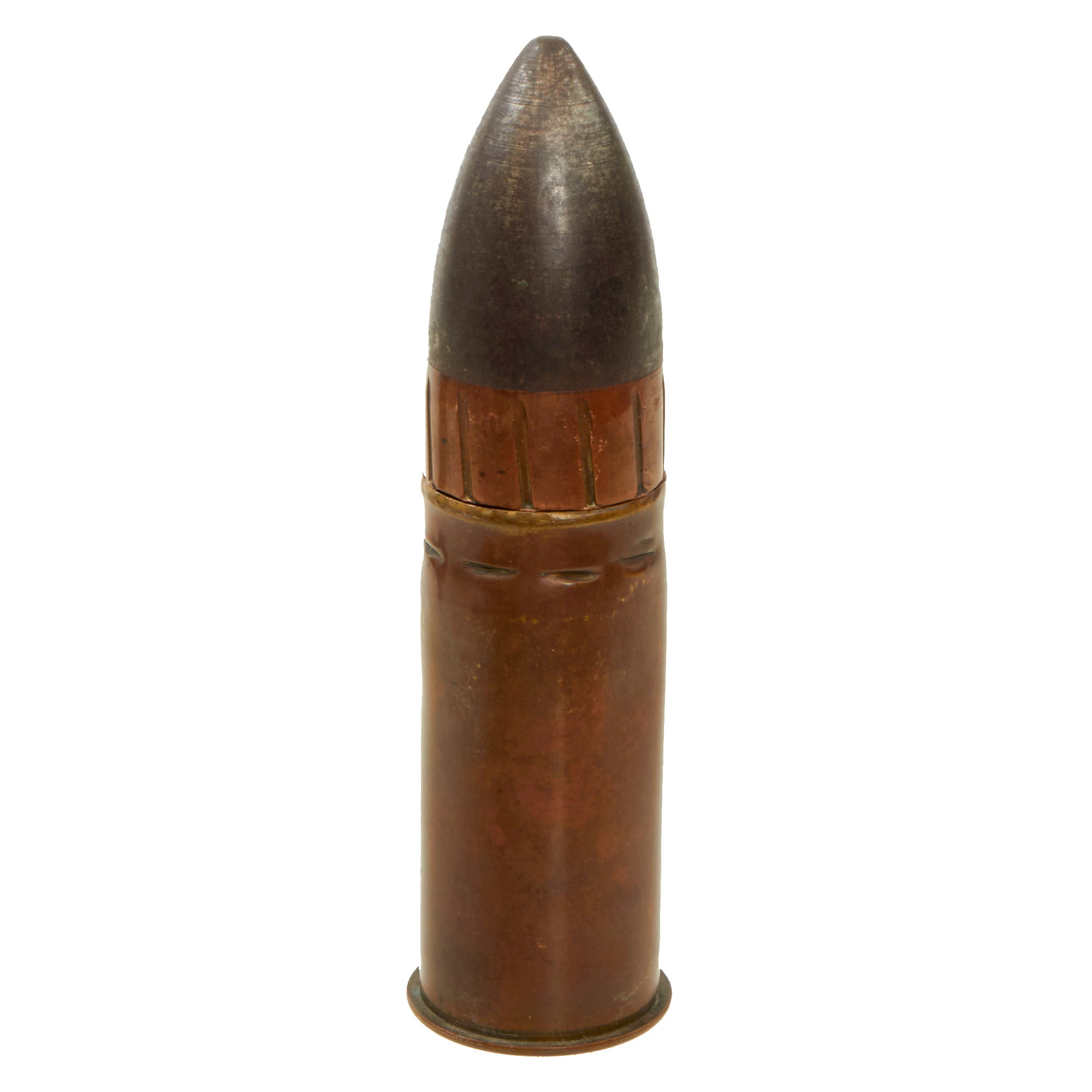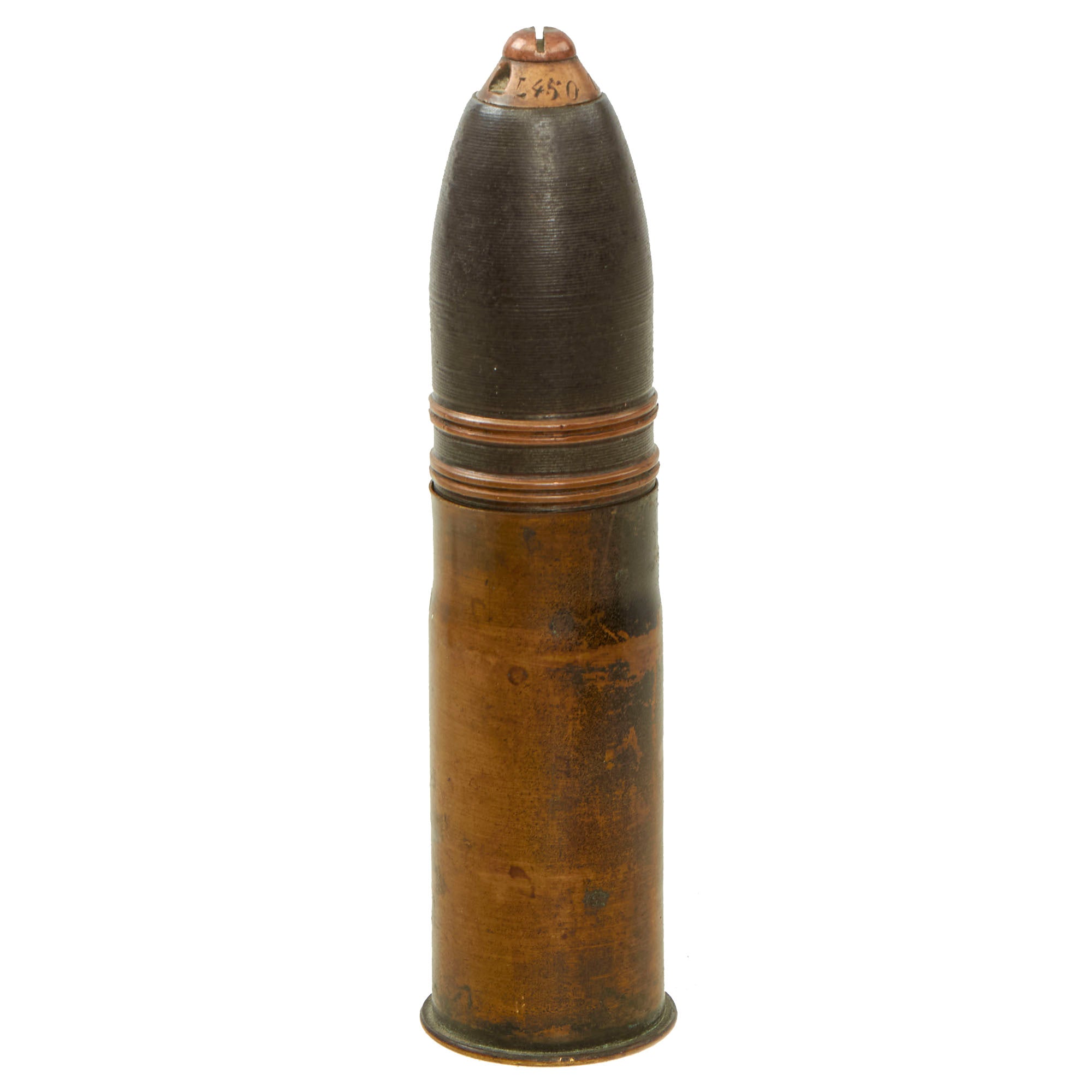 Original Items: Only One Lot of 3 Available. This is a fantastic lot of inert BATF compliant 37mm rounds as used with the “Infantry Gun Model 1917”. The rounds are in wonderful condition and still retain legible headstamps on the bottom of the casings. The 37 mm Infantry Gun Model 1917 was a light artillery piece produced in the United States during World War I for the French Army. It was adopted by the US Army when it entered the war on the side of the Allies.