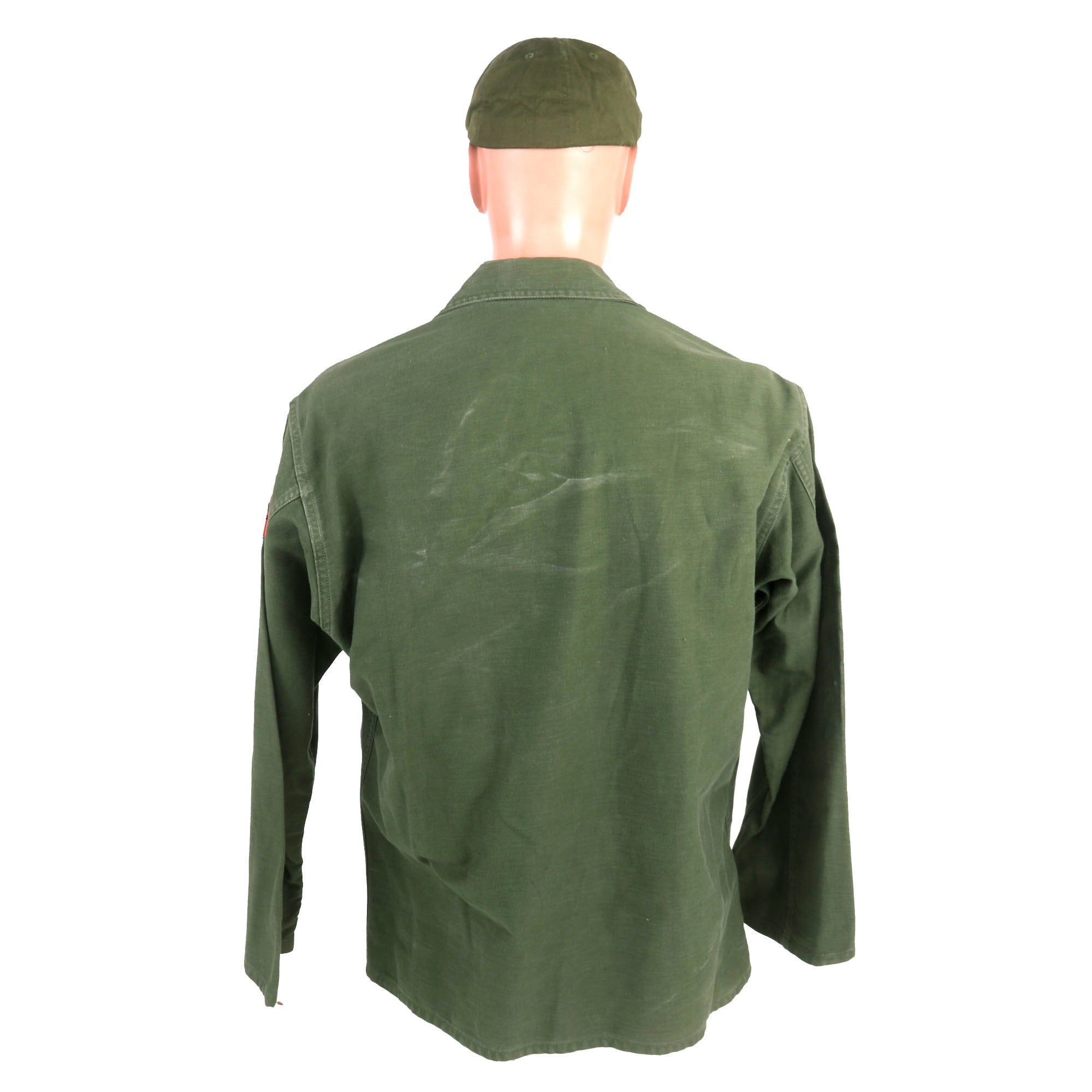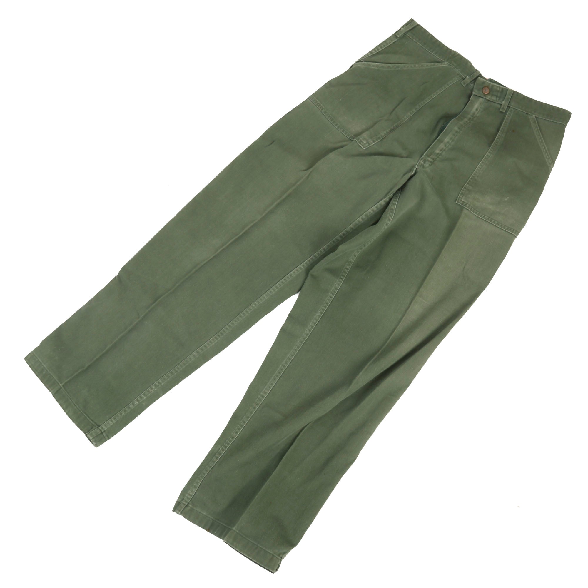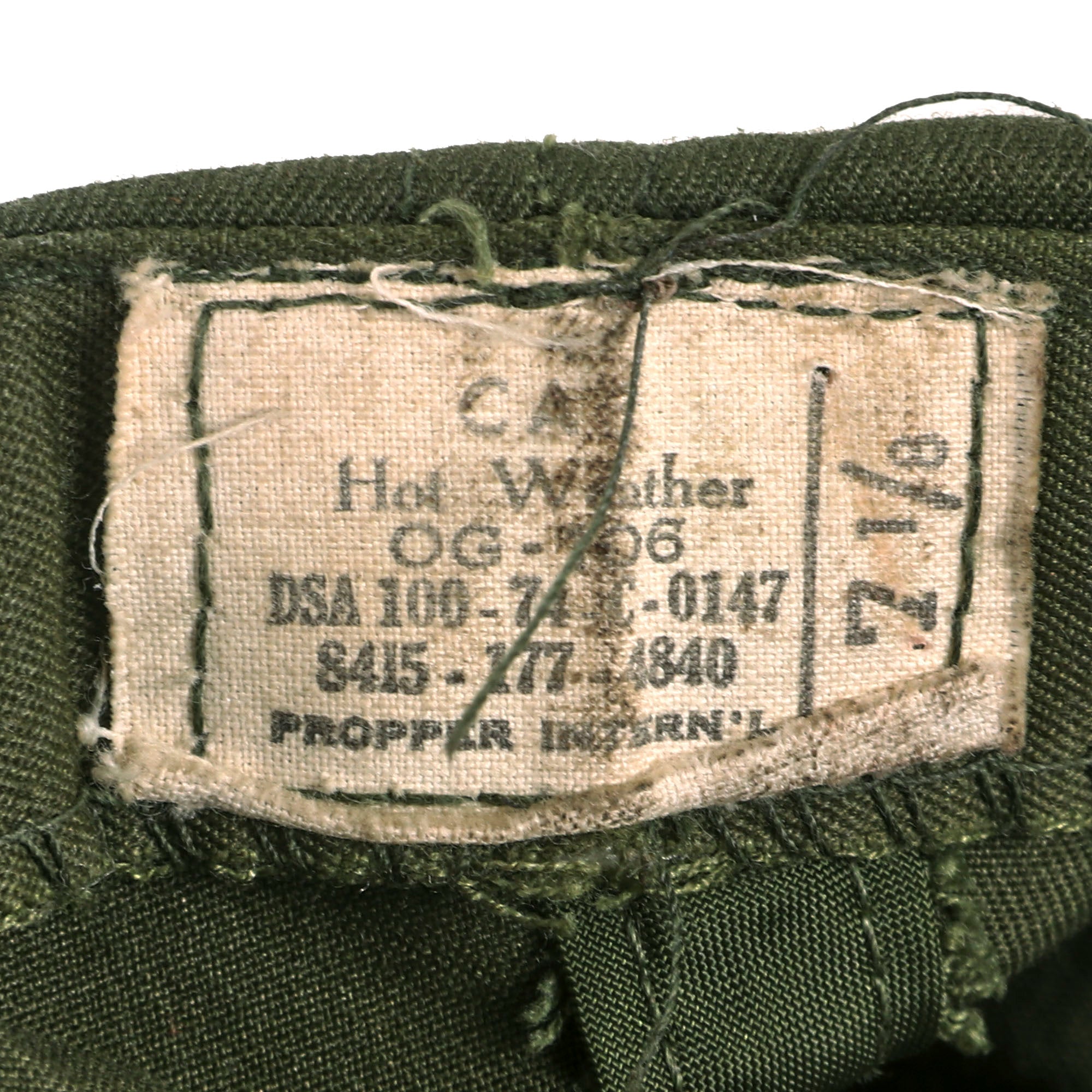 The accompanying trousers match the condition of the shirt, and appear to be of Private Purchase origin, as they are fitted with a snap at the waist as opposed to a button, as with an issue garment. The original label is unfortunately missing.