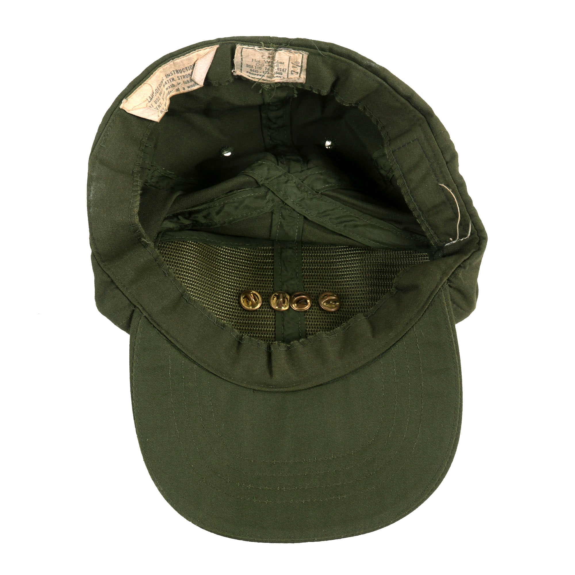 The Cap may possibly be one of Abrams’ later caps, due to the fact that the label in the cap bears a DSA-74 Code (1974, the year of Abrams death). The cap is marked size 7 ⅛. The cap has pinned on two General’s Stars, each bearing the hallmark “W-23”. The museum likely applied the insignia to match the rank of the uniform for display purposes.