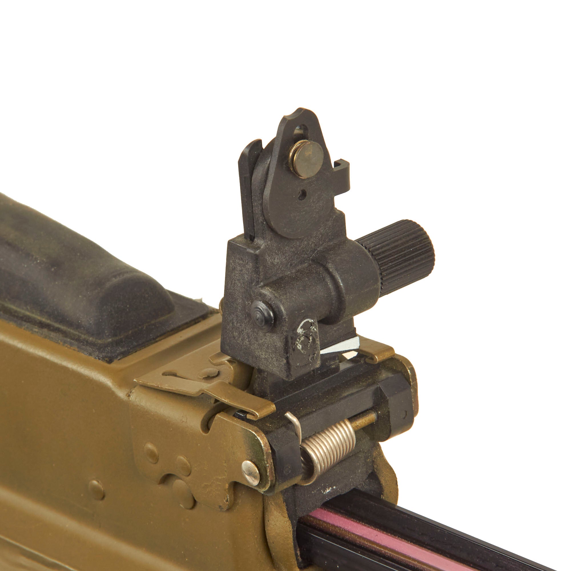 This very nice example has the front sight intact and the rear sight, both are often seen broken or missing. The sling and end cap are both present but the transport safety retaining pin for the end cap is missing.