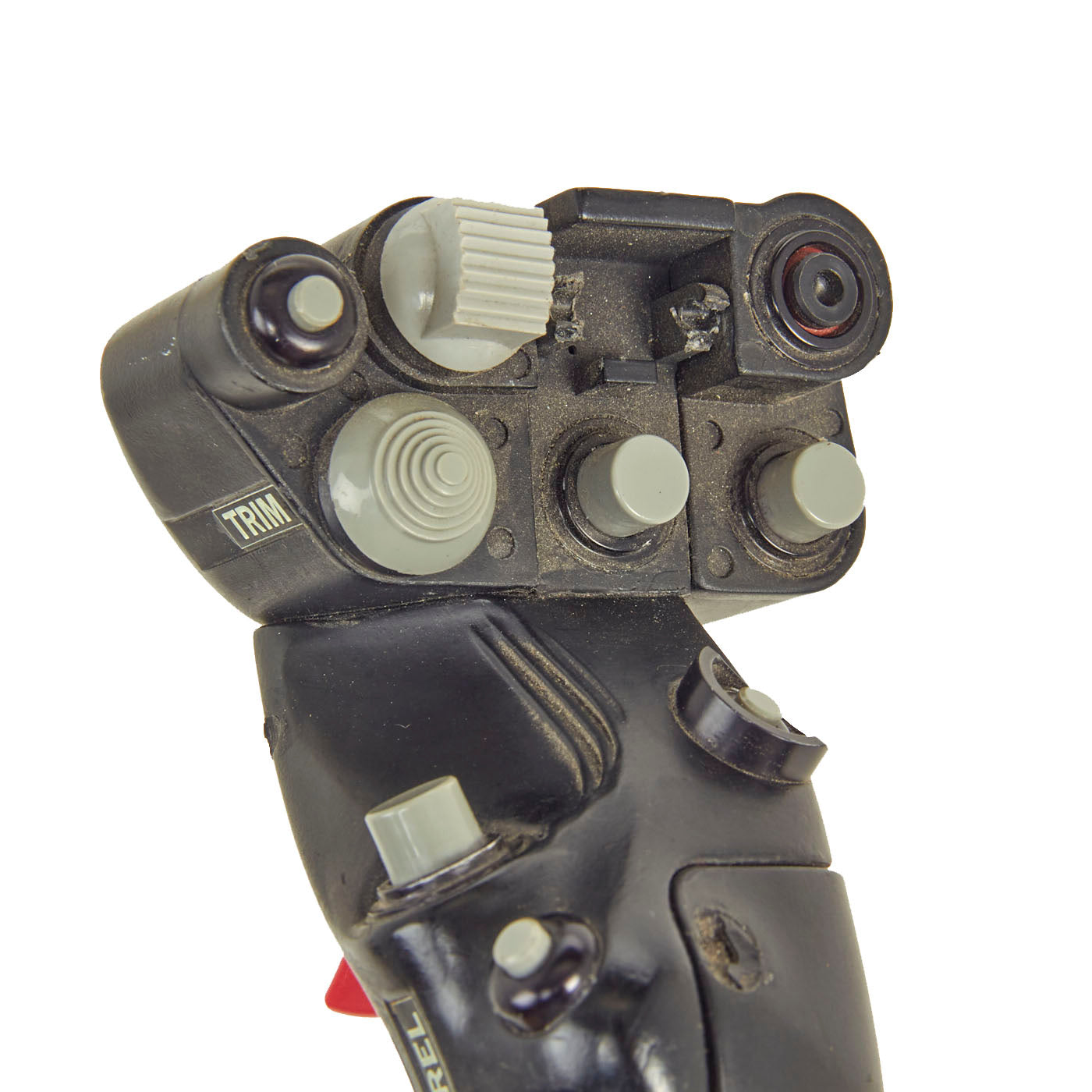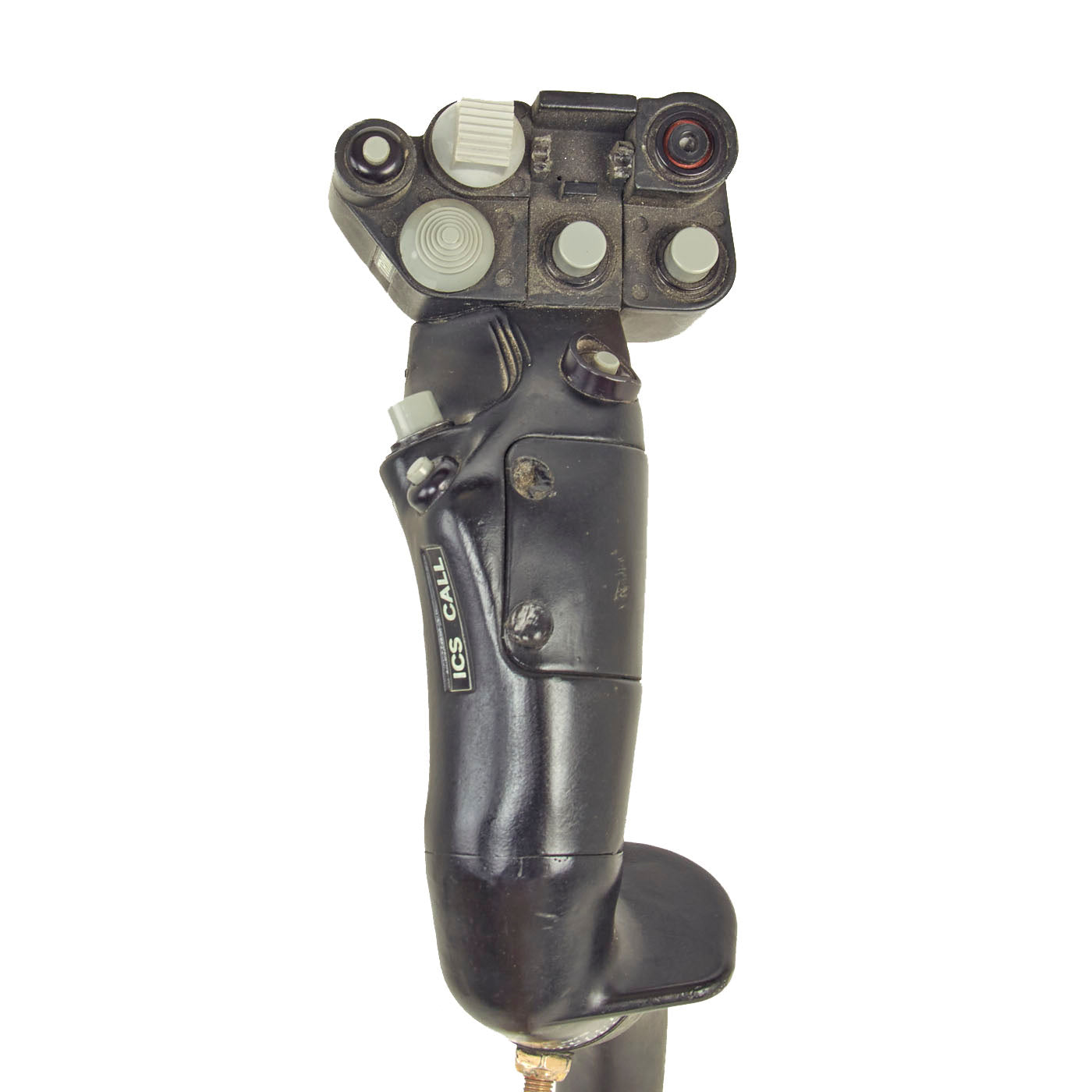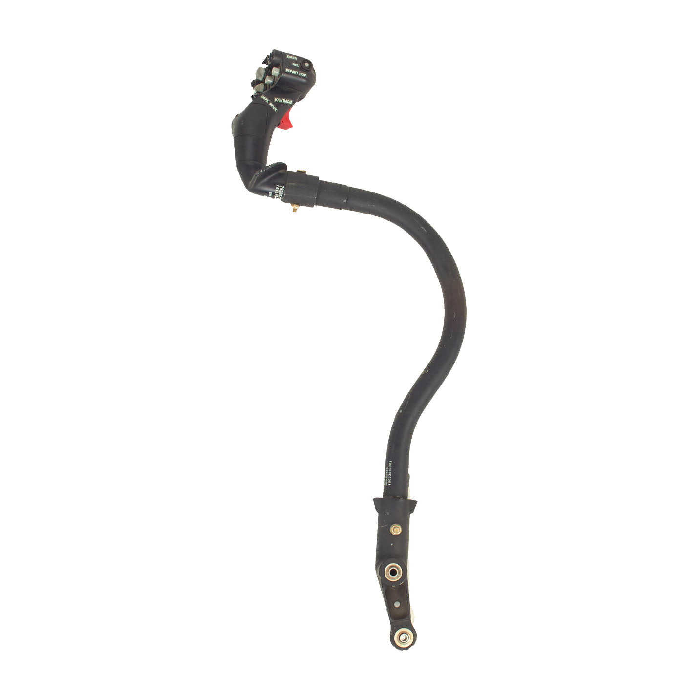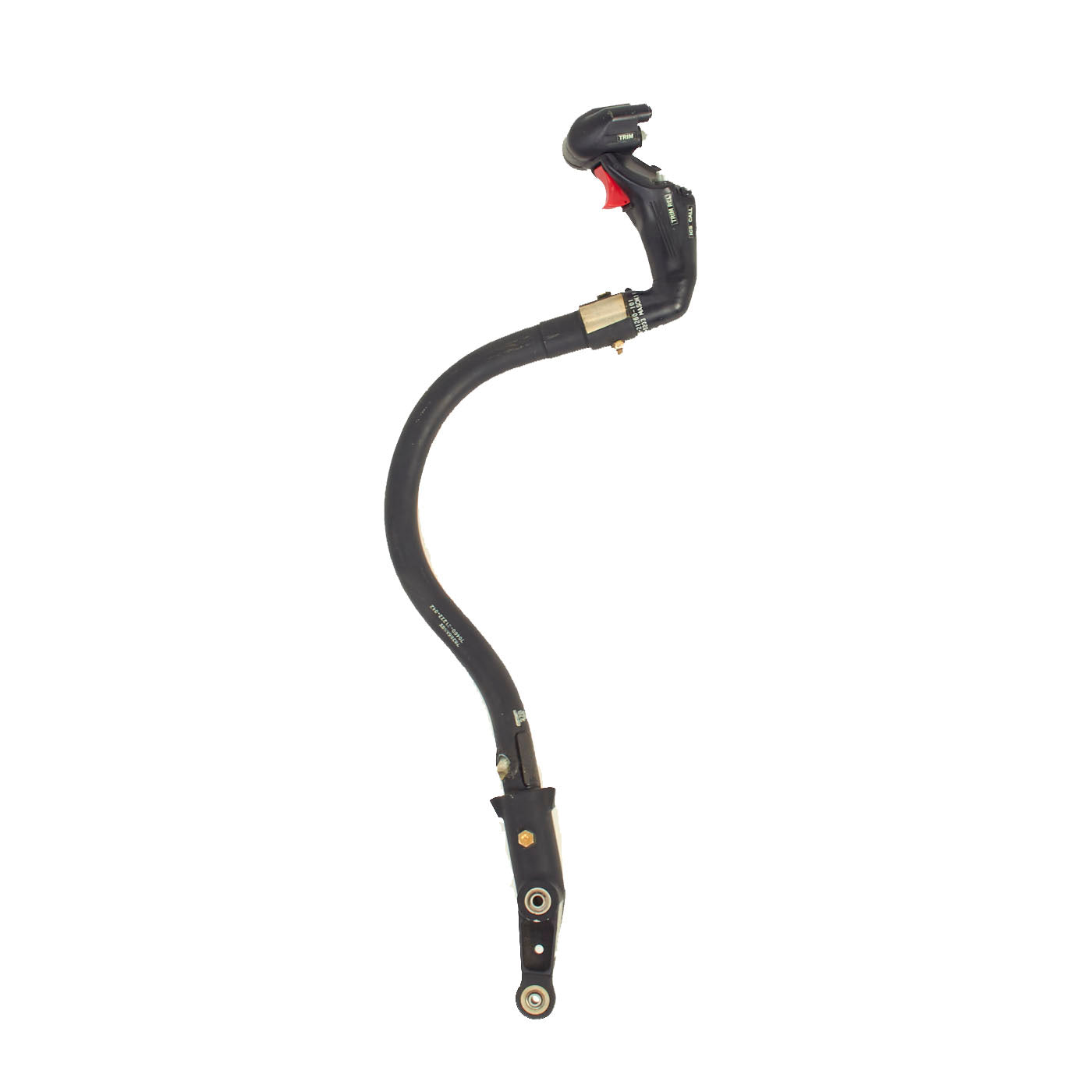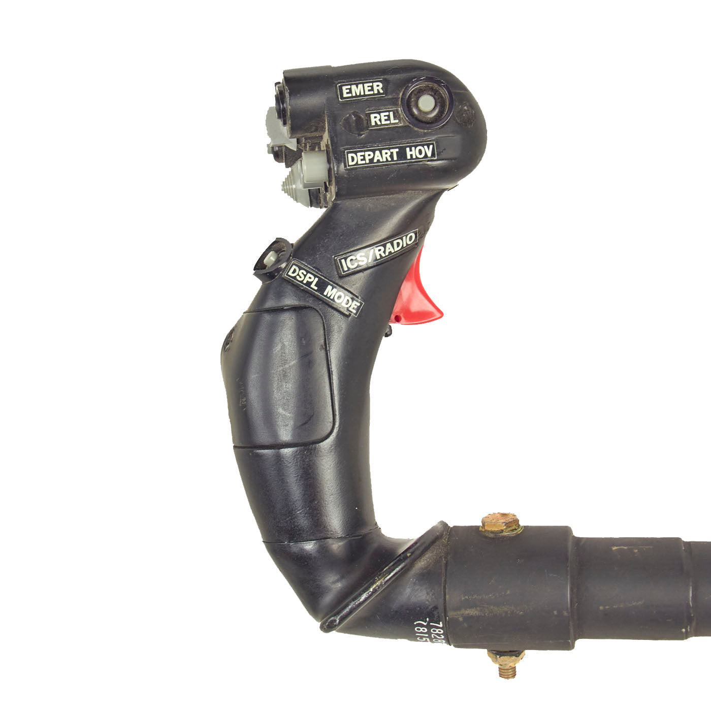 All markings present on both the control stick and grip assembly, mainly being 805356090 and 70400-21226-041 identifies this as being used on the Seahawk. The condition is near excellent with the exception of the flip up button cover on the center being broken and completely missing. Measures about 28 inches in overall length.