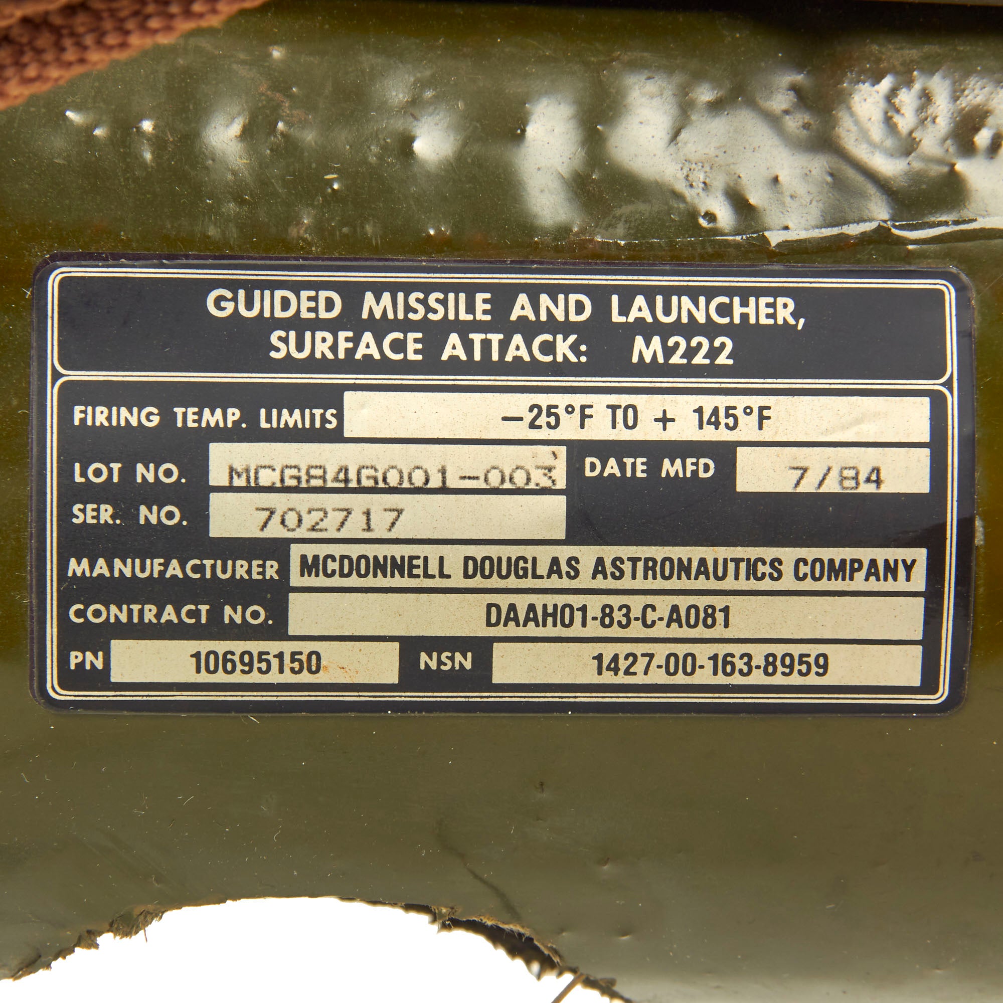 Original item: Only One Available. Totally inert non-firing BATF (Bureau of Alcohol, Tobacco, Firearms and Explosives) compliant M47 Dragon Anti-Tank Weapon offered in excellent condition. The launcher itself measures about 46 inches in length, with a 6 inch wide bore, and expands to around 8 inches wide at the base. It comes complete with the attached stand, which holds the muzzle about 28 inches above the ground, and the foam breech protector with muzzle protector.
