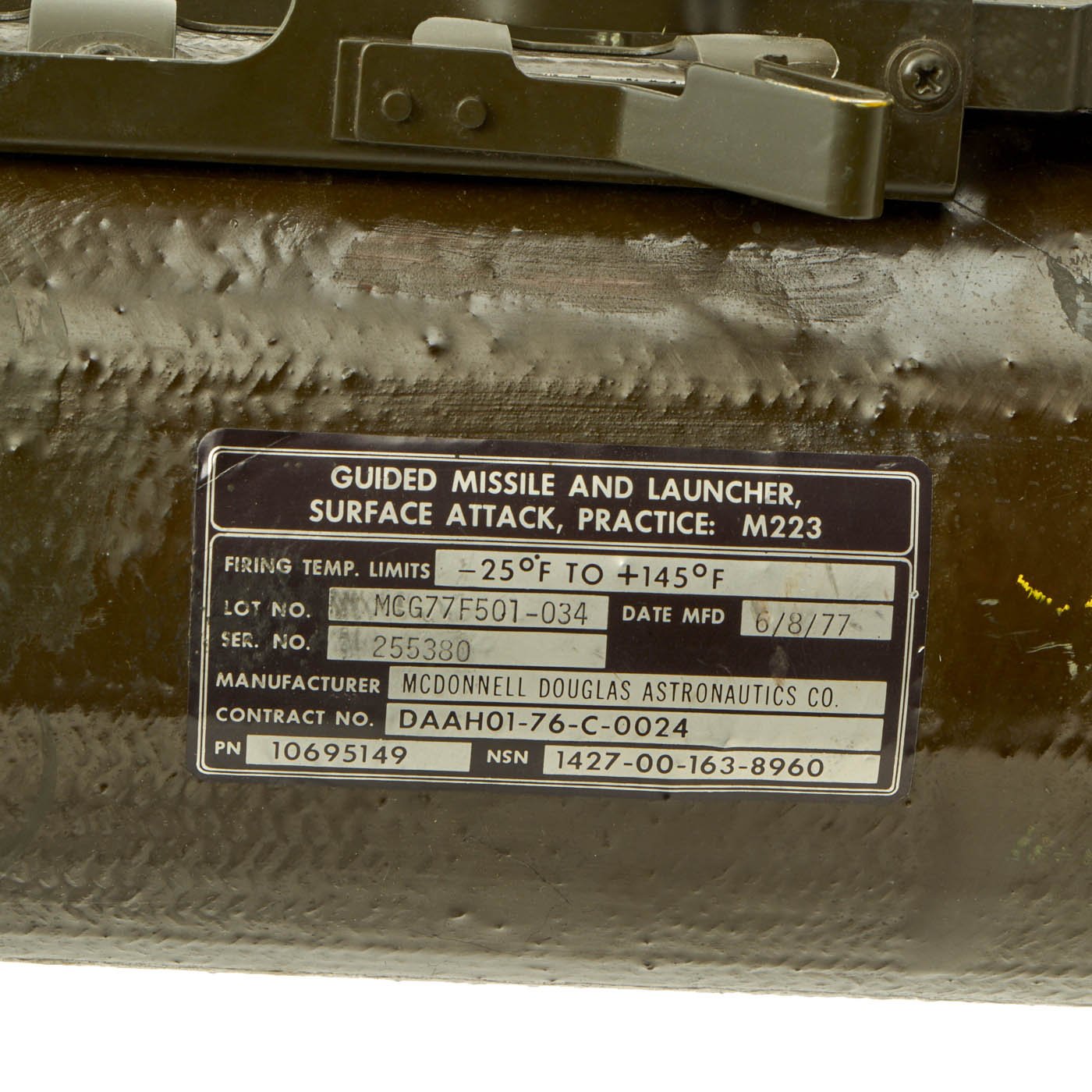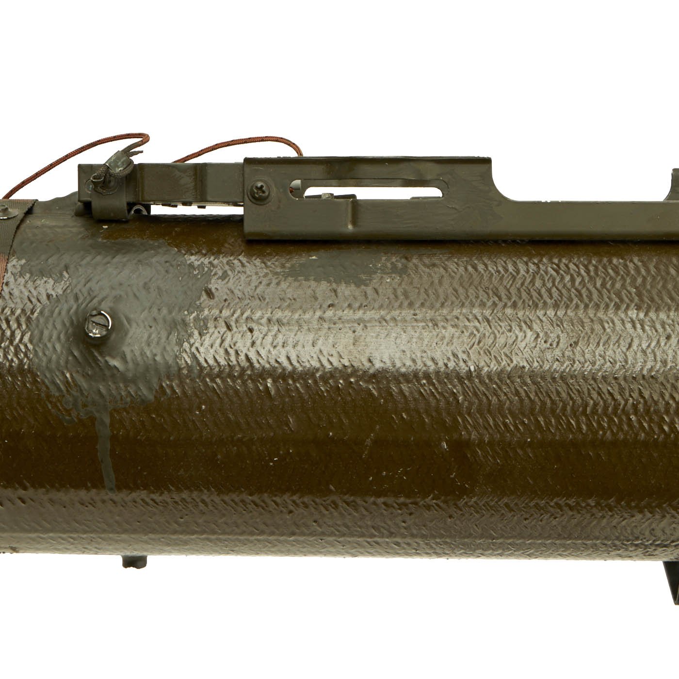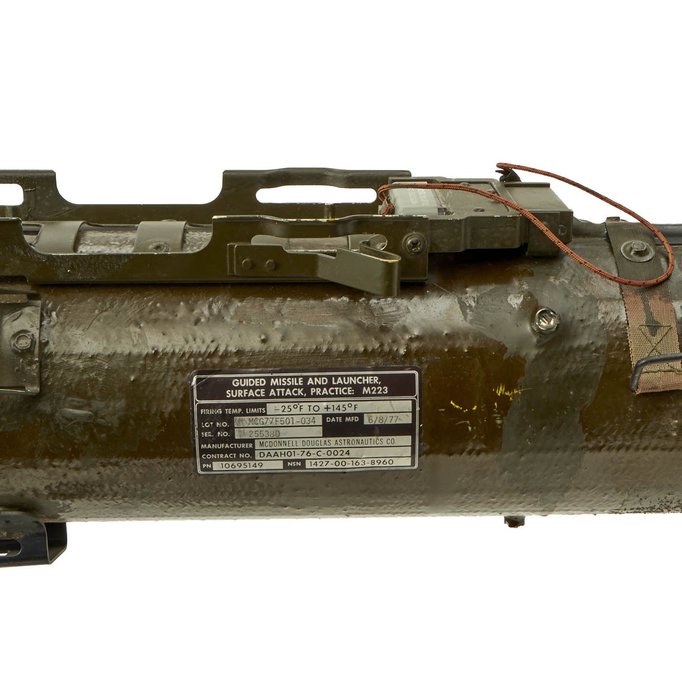 Original item: Only One Available. Totally inert non-firing BATF (Bureau of Alcohol, Tobacco, Firearms and Explosives) compliant M47 Dragon Anti-Tank Weapon offered in excellent condition. The launcher itself measures about 46 inches in length, with a 6 inch wide bore, and expands to around 8 inches wide at the base. It comes complete with the attached stand, which holds the muzzle about 28 inches above the ground, and the foam breech protector (muzzle protector is absent).