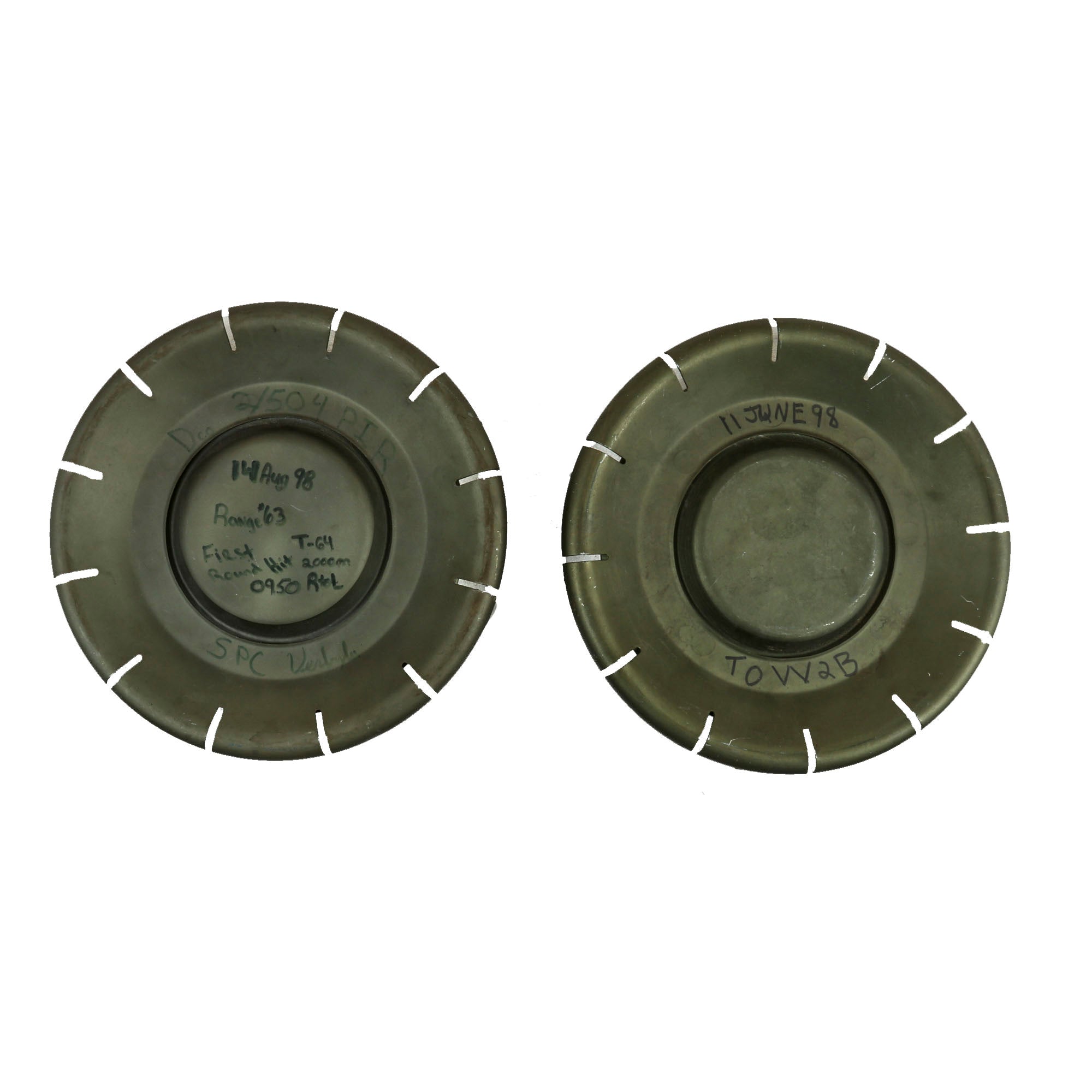 The first end cap is inscribed with marker 11 JUNE 98 / TOW2B, and the second is inscribed: