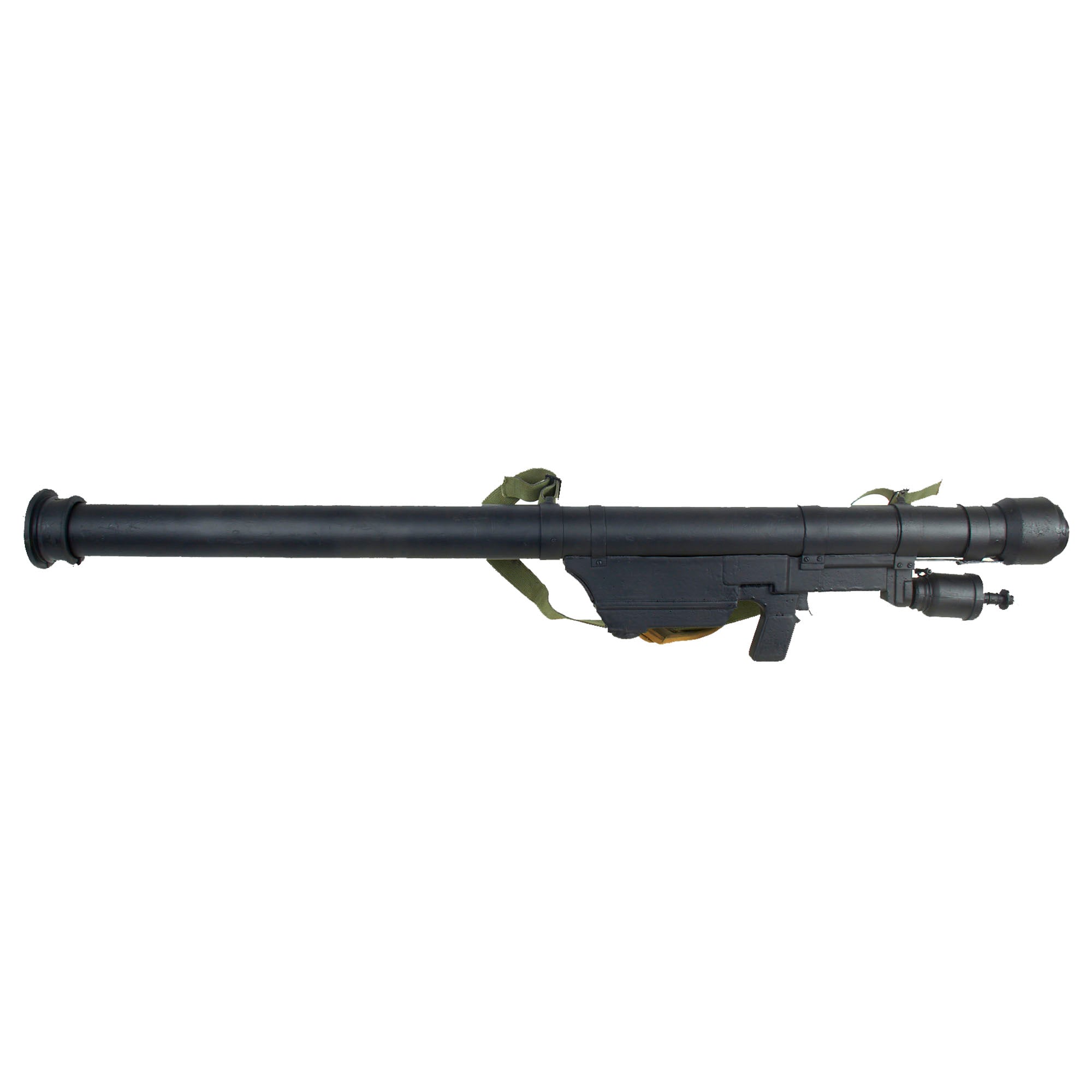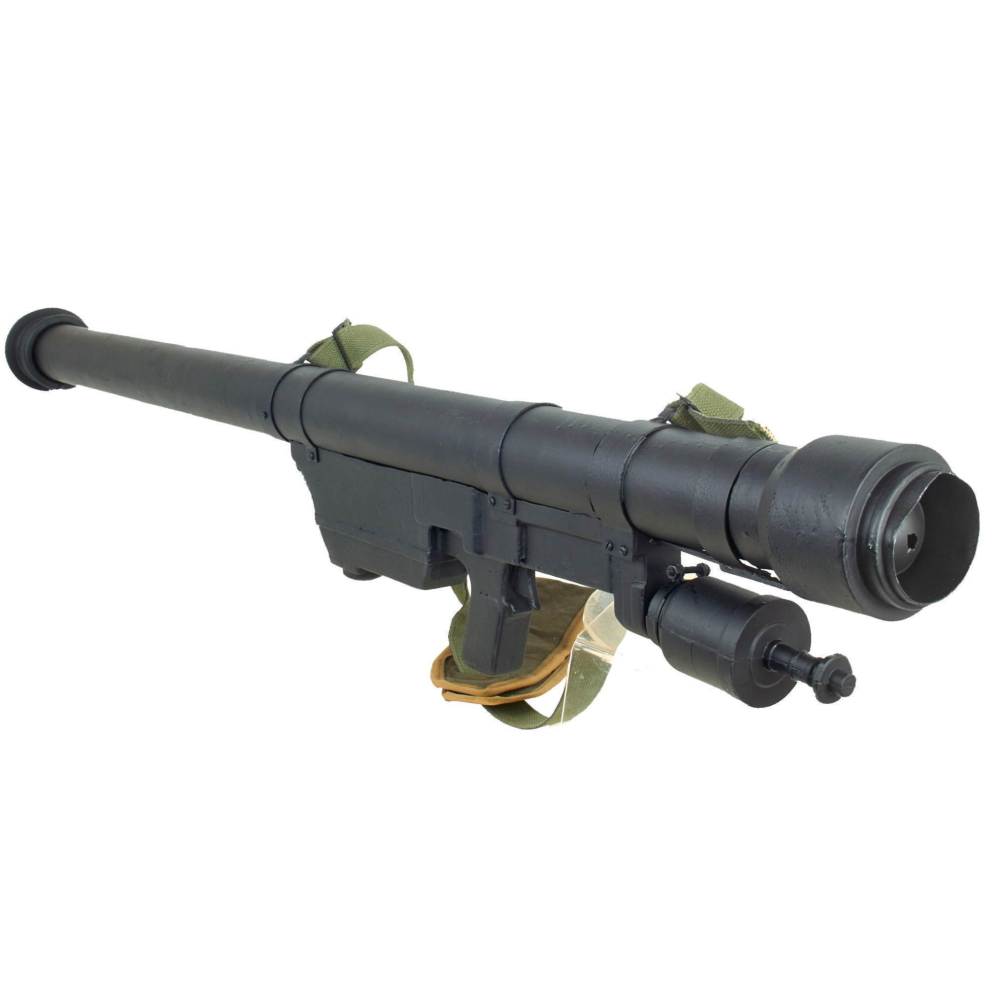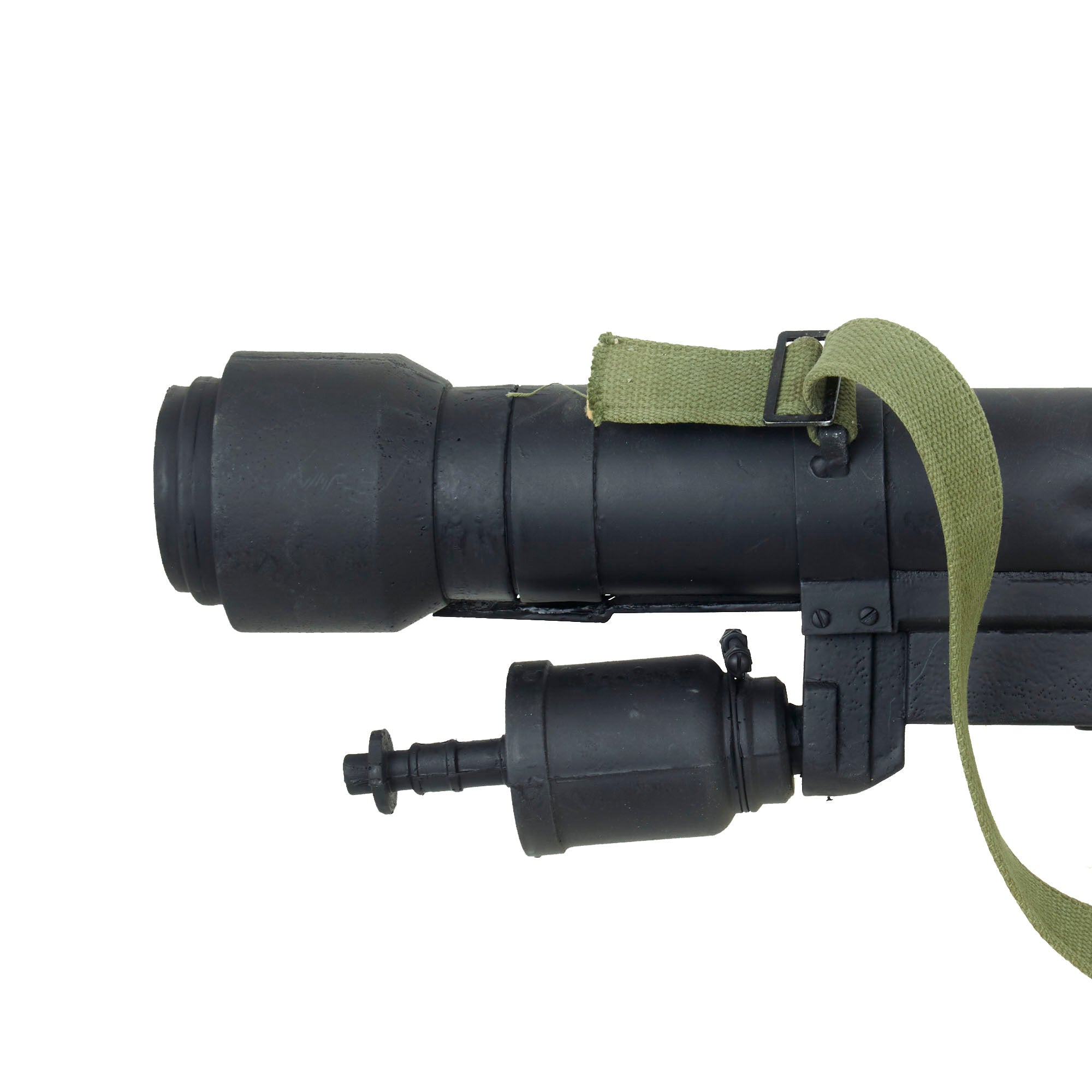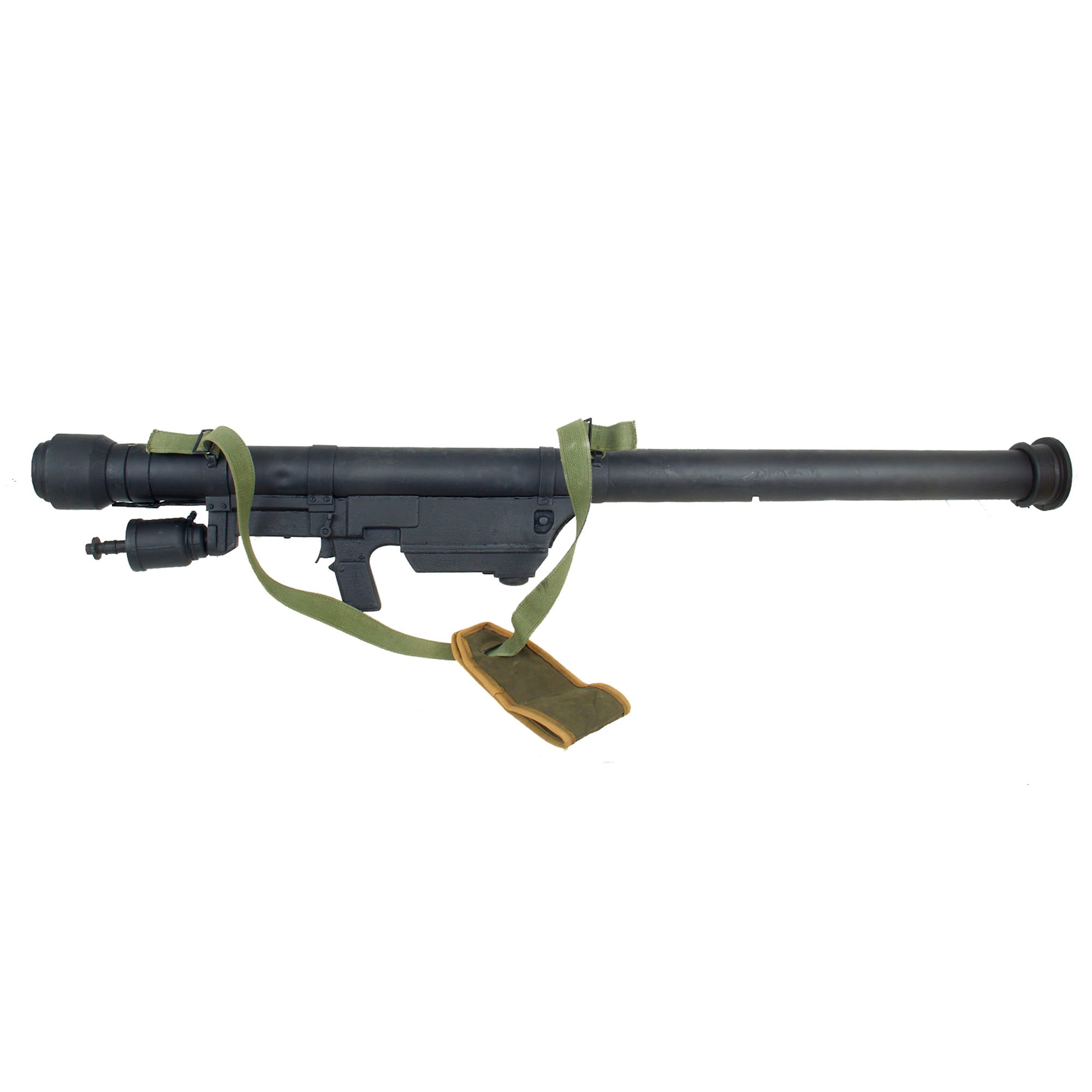 This is a GWOT (Global War on Terror) era Stinger Missile trainer. It contains no actual parts from a FIM-92 Stinger and is constructed of resin, metal, and rubber, with fabricated markings and an original sling for display.