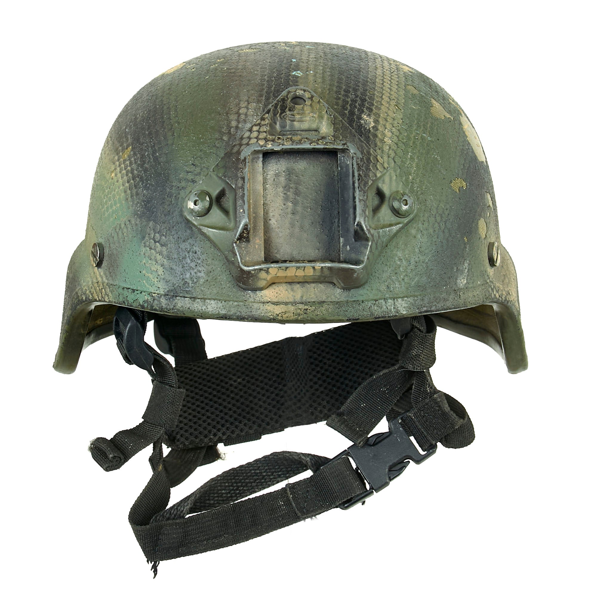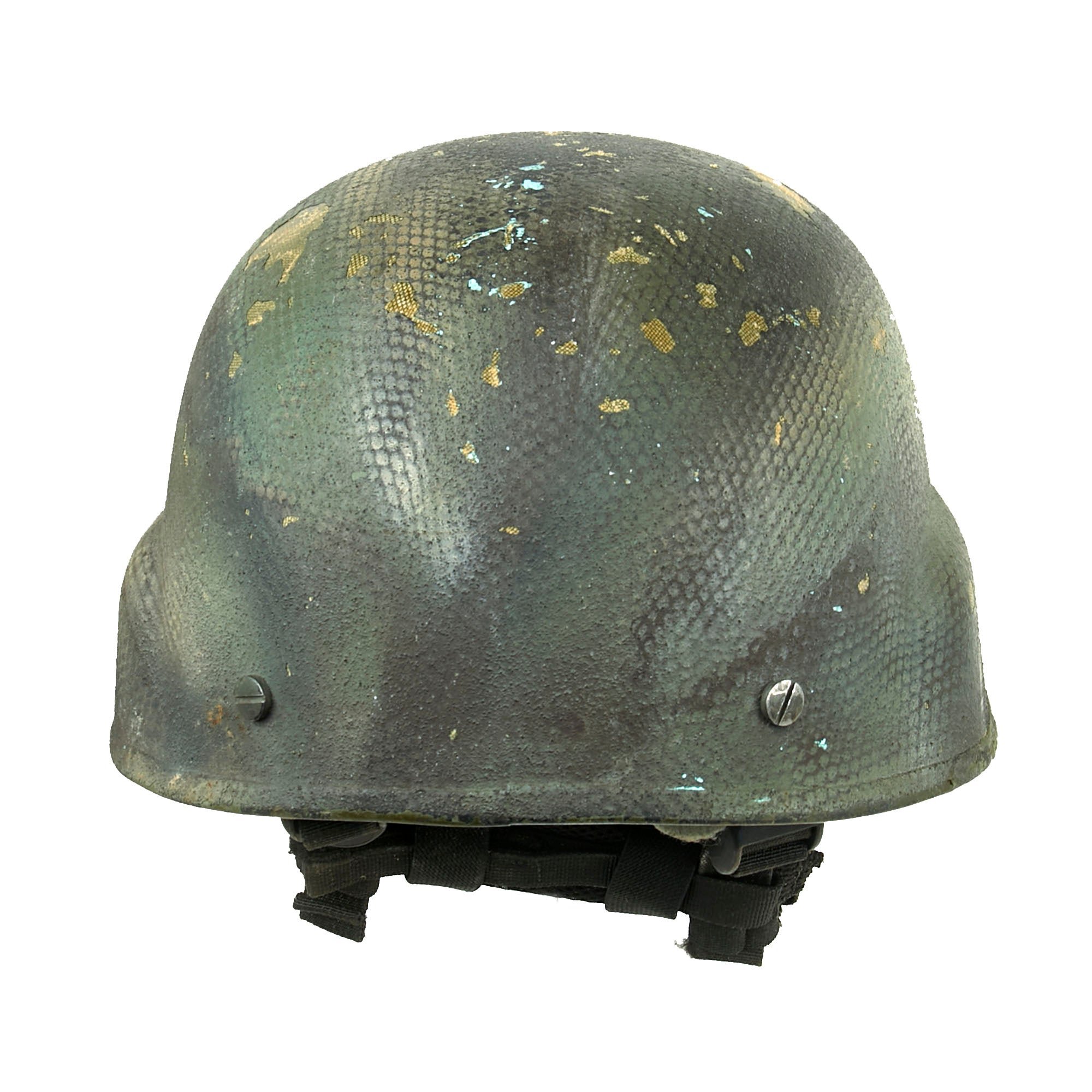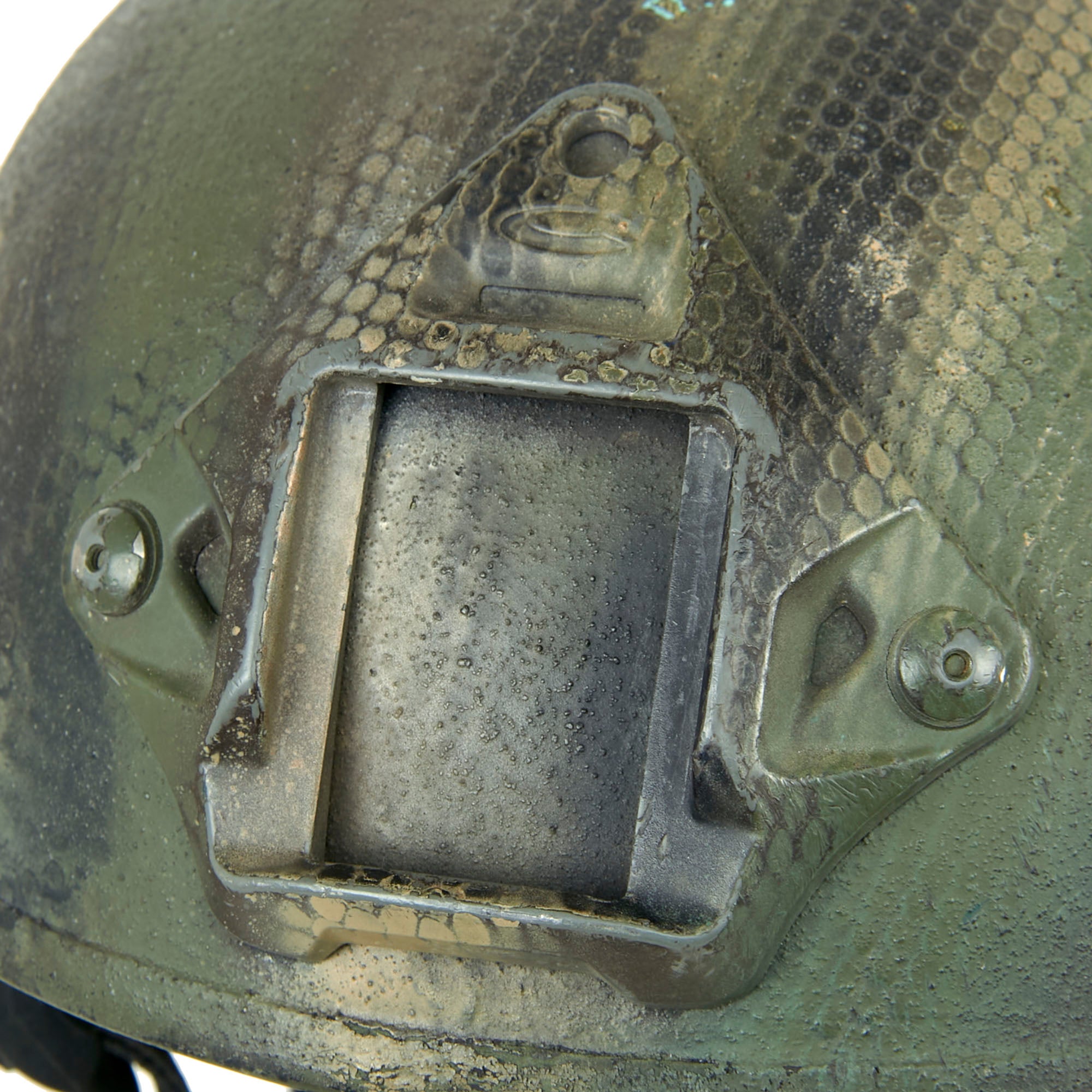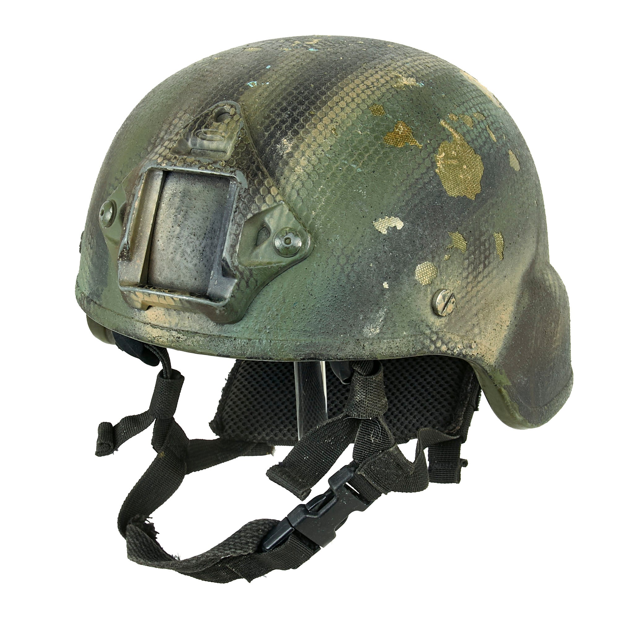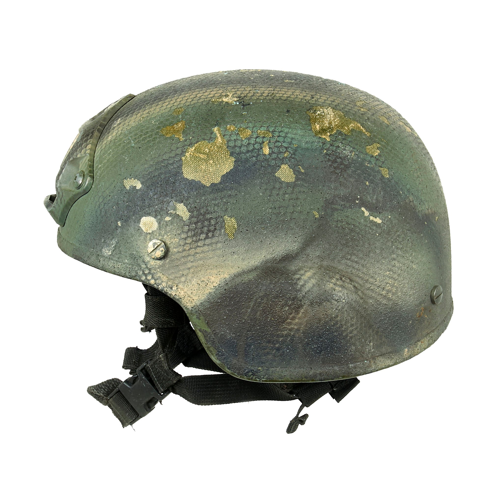Original Item. Only One Available. This is a lovely GWOT-issued AS-500 Armorsource Kevlar helmet used by Special Operations, with a gorgeous camouflage paint scheme that resembles snakeskin.