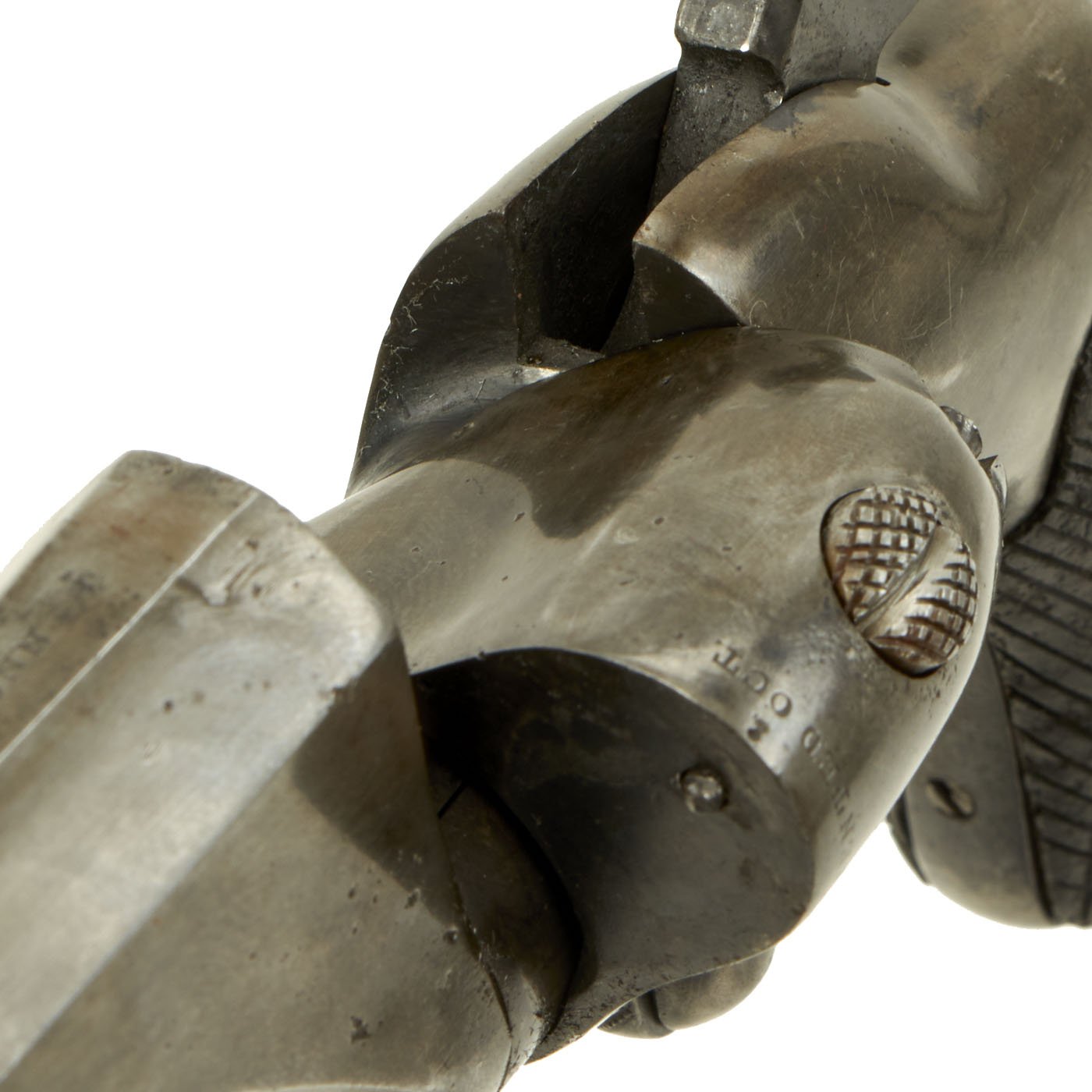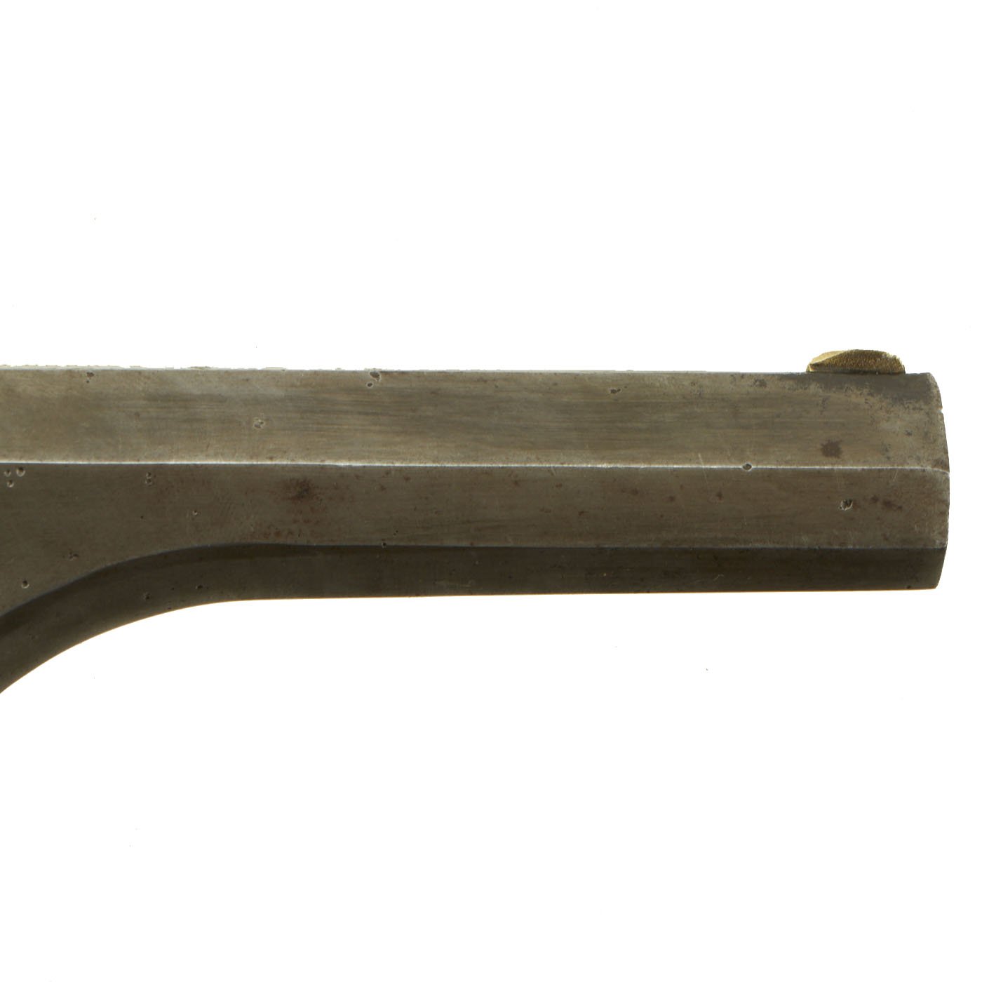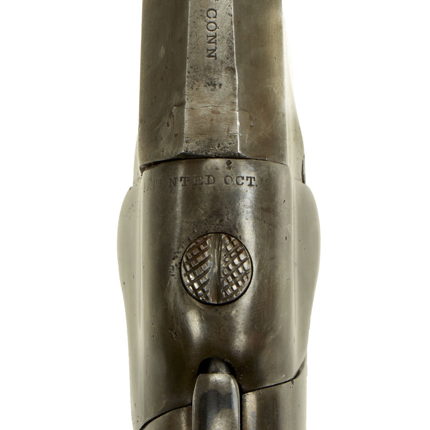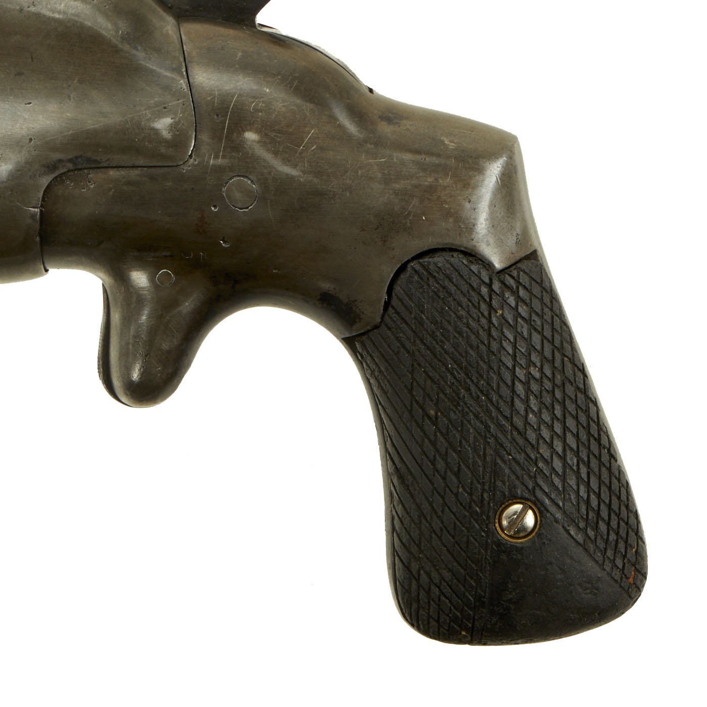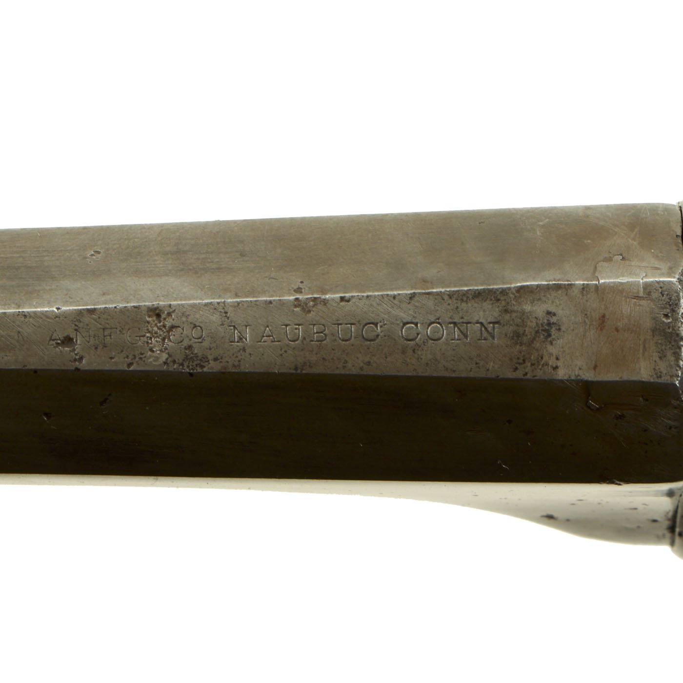 The story goes that Doc Holiday's part time girlfriend, Big Nose Kate, once drilled some gambler a new belly button with one of these powerful pistols. Using Hammond's "Bulldog" patent, these were made by the Connecticut Arms and Manufacturing Company. Records show production was between 1866 and 1880 and that total production reached fewer than 8,000 units. The top of the barrel is marked (partly worn away):