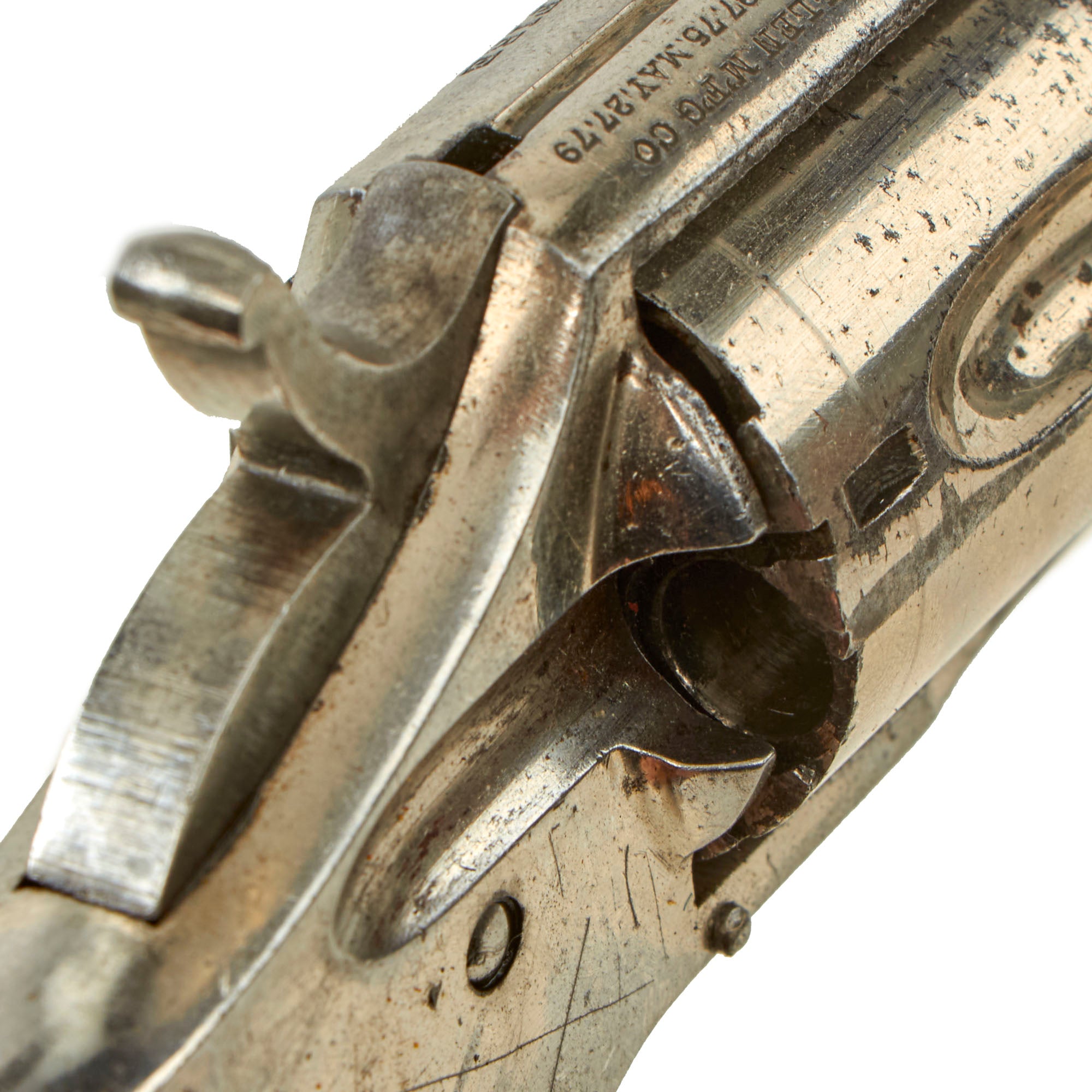 These antique guns are not sold in "live" condition, and are not tested for the the ability to feed or load any type of cartridge. They are sold as collector's items or as "wall hangers" not for use, and we make no guarantees regarding functionality aside from what is stated in the description. Any attempt at restoring an antique gun to be operational is strongly discouraged and is done so at the risk of the customer. By purchasing an antique gun from IMA you thereby release IMA, its employees and corporate officers from any and all liability associated with use of our Antique guns.