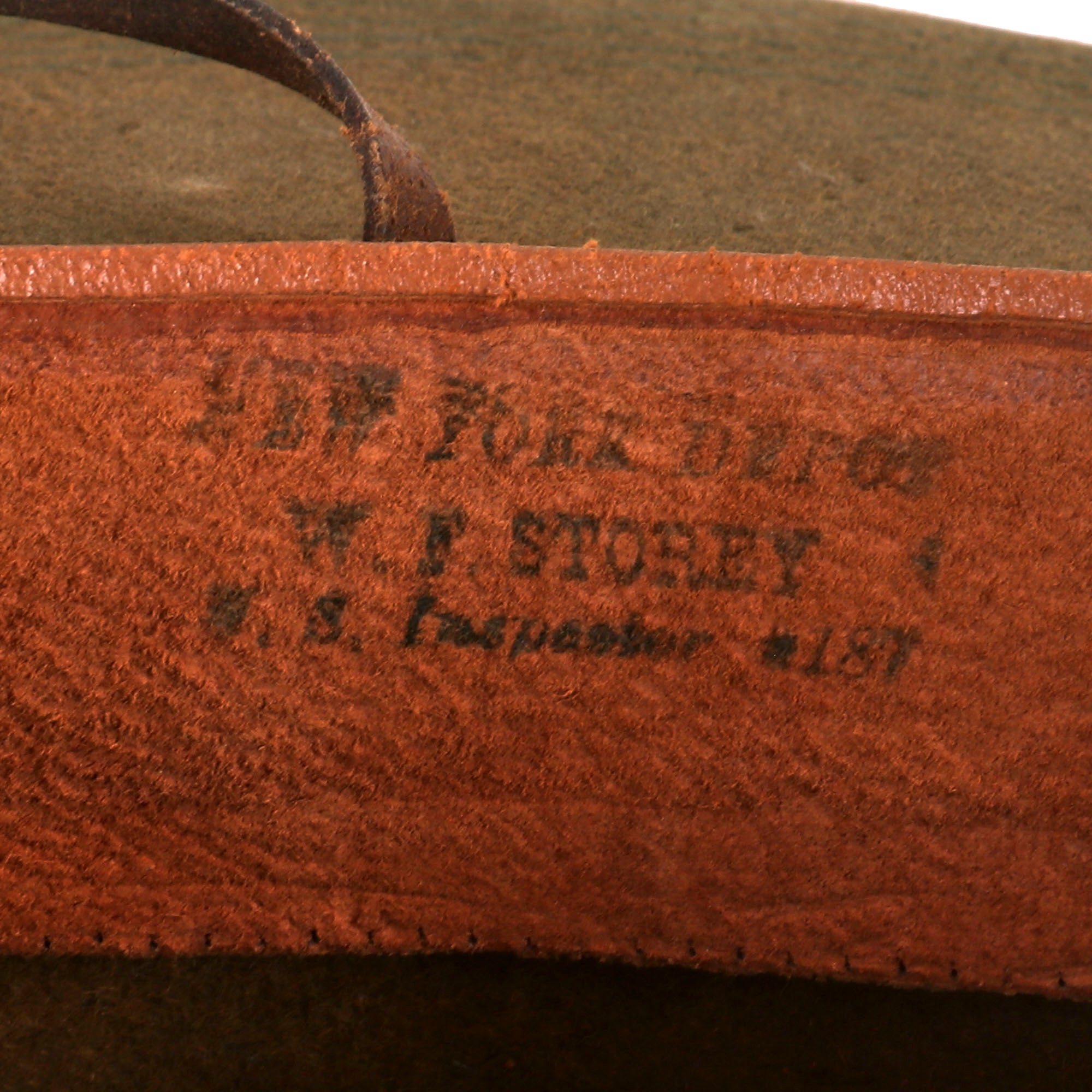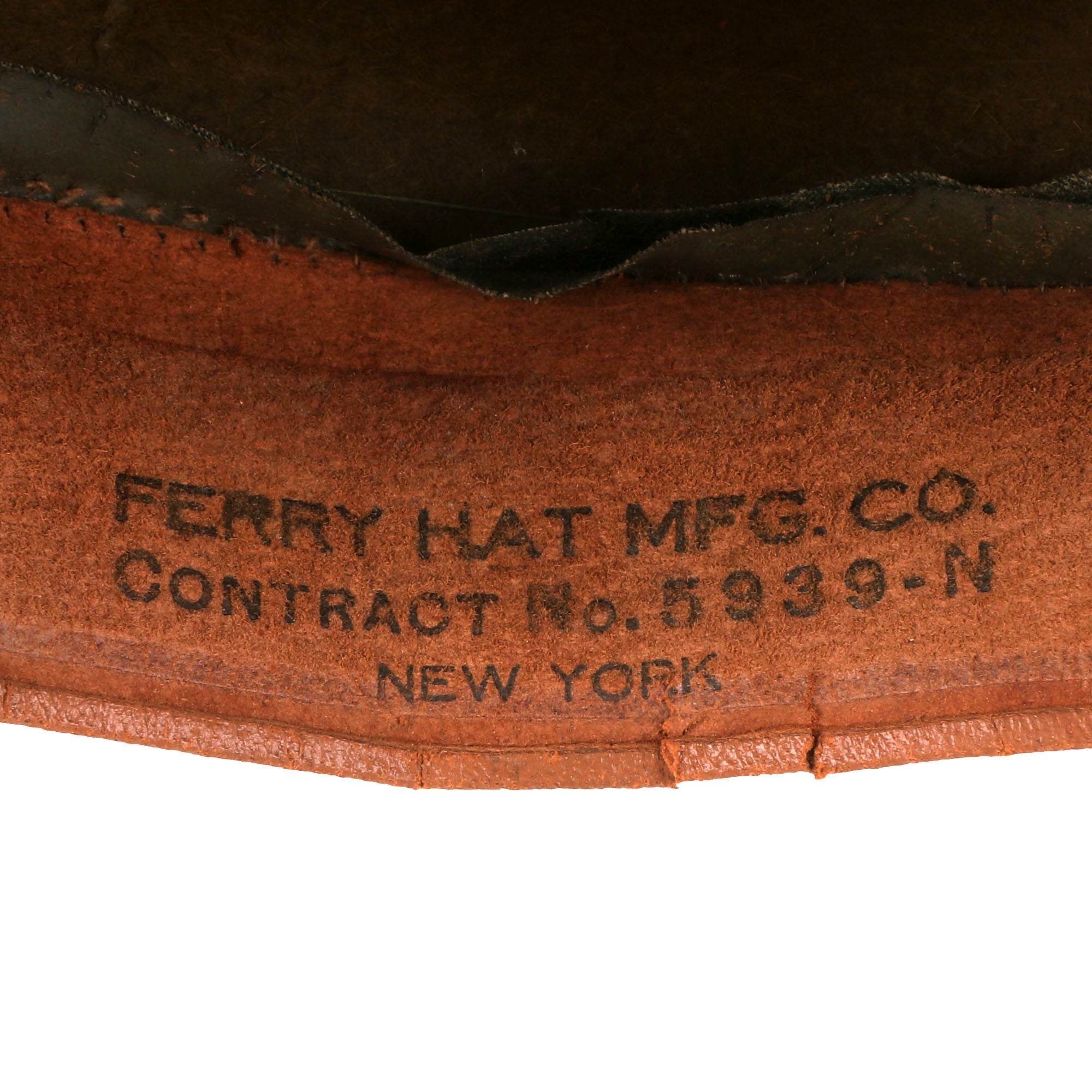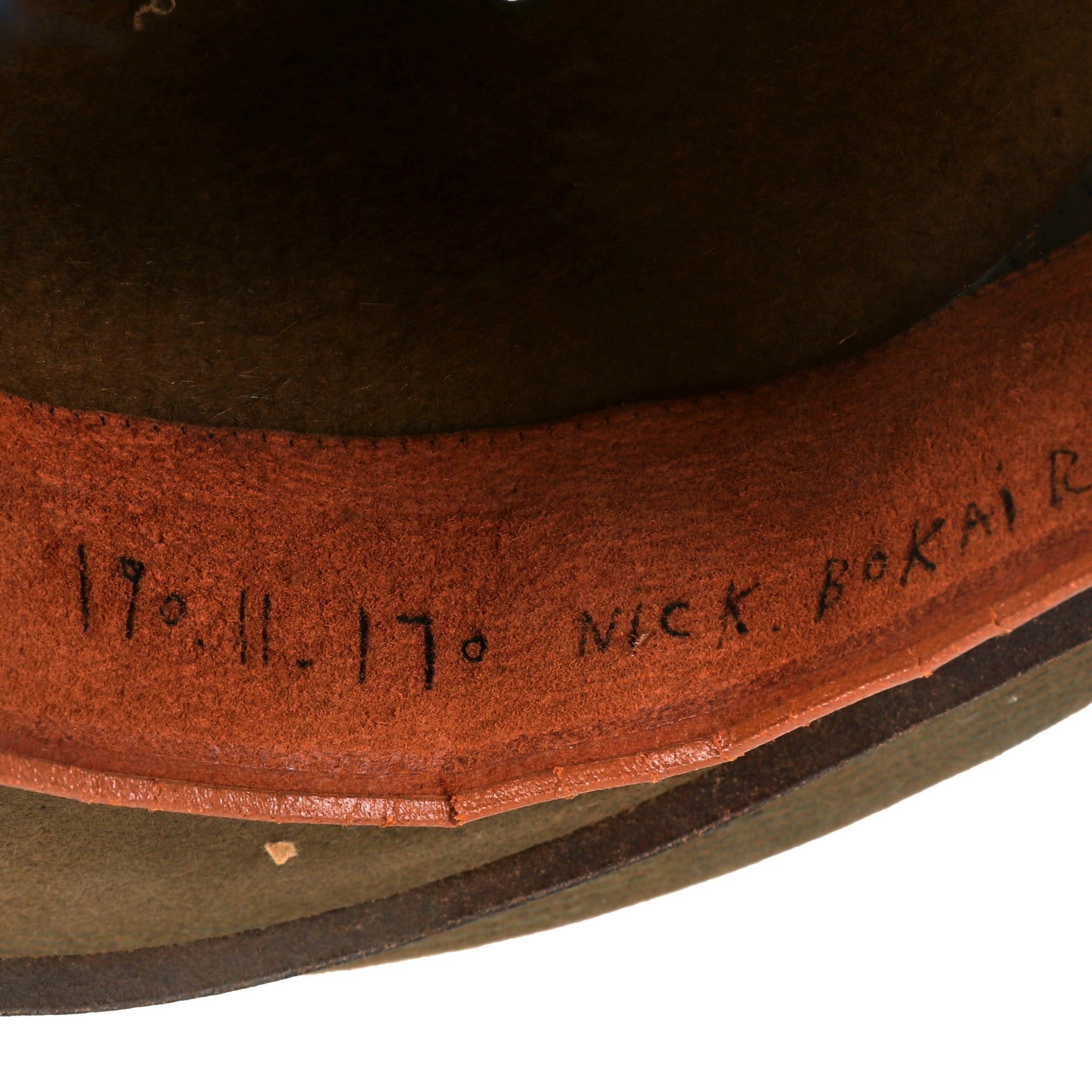 This M1910 Campaign hat was manufactured by Ferry Hat Manufacturing Company, which is stamped under the sweatband. The interior reads 190.11.170 Nick Bokair, 1917. Nick Bokair was part of the 33rd Infantry Regiment which served in Panama for several years leading up to, during, and after World War I.
