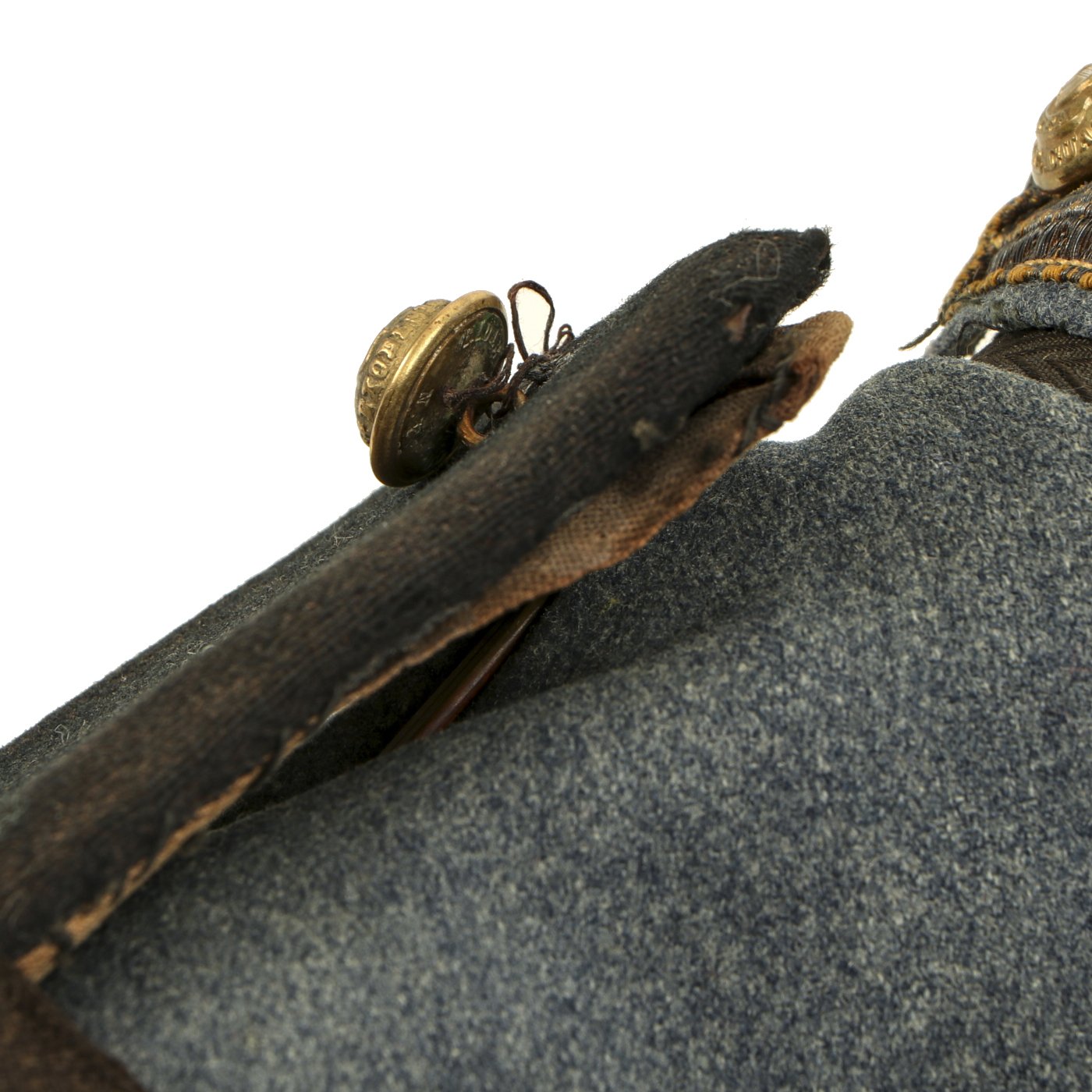Original Item Only One Available. This is a United States Model 1850 or M1850 Militia Coatee. We believe it dates from the early period of the Indian Wars as the inside tails are a green-black not a solid black like the later issue examples. This Coatee is fort the 7th New York Militia Regiment with multiple names written inside the on the lining.