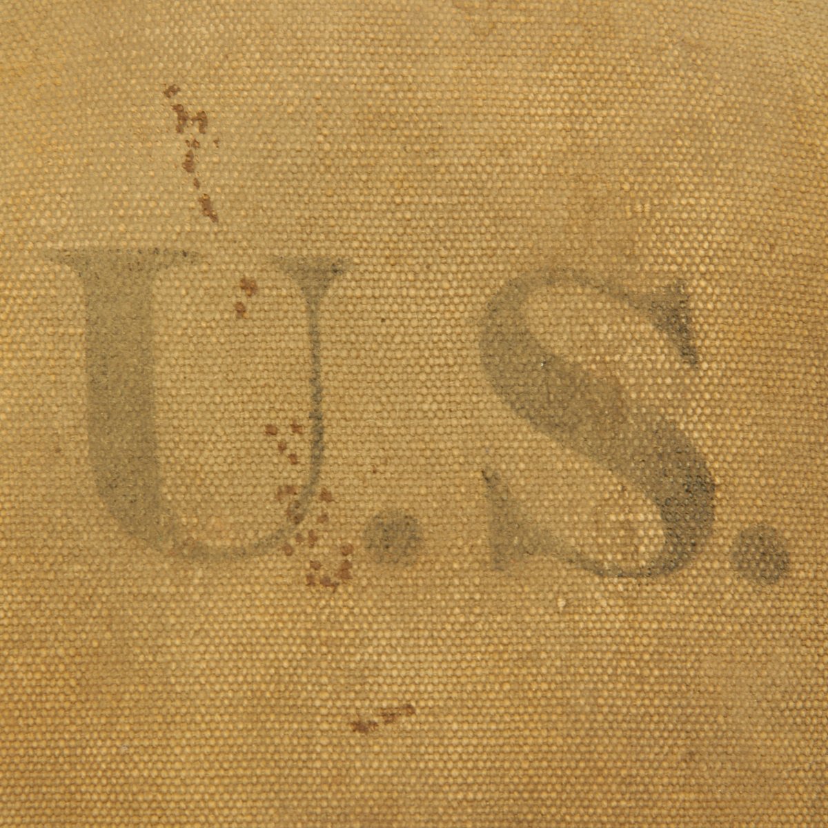 Original Item: Only One Available. US M1878 Canteen with a tan canvas cover with a very clear U.S. stencil on the front and on the reverse it is stenciled: