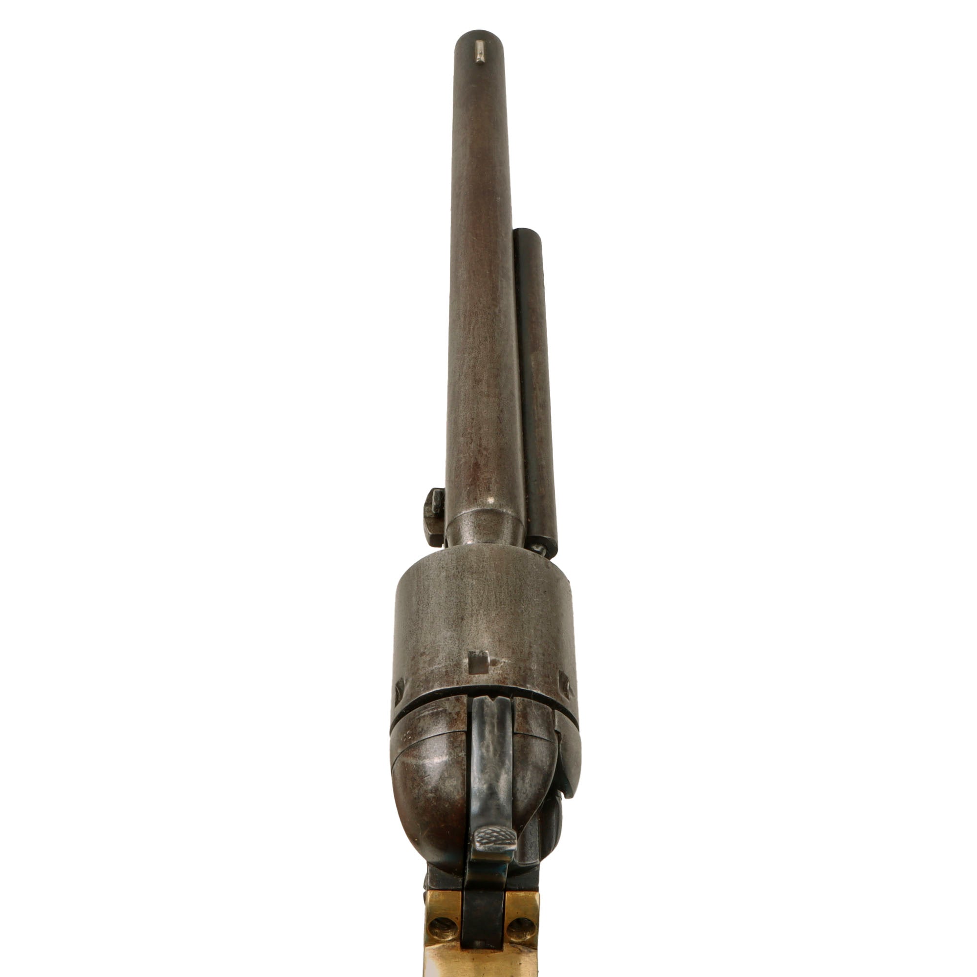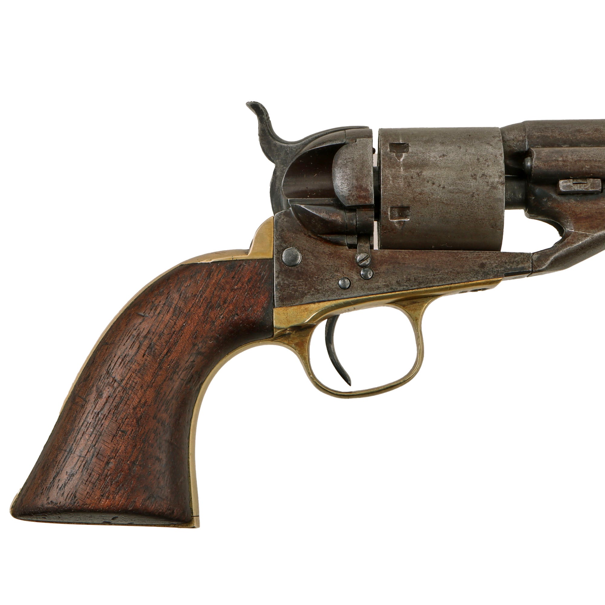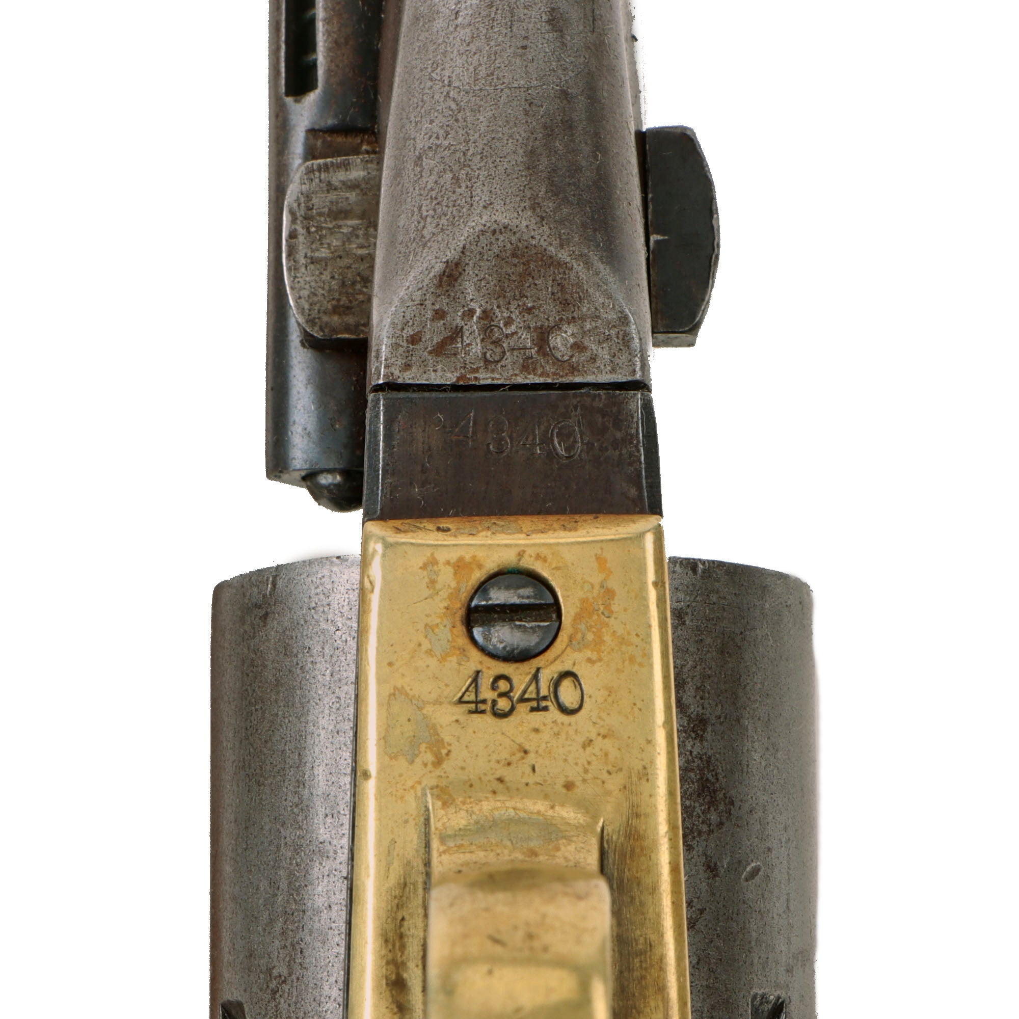 This is one such example, which unlike others we have seen looks to have used leftover parts from the Colt Navy Model 1861 Percussion Revolver in .36 caliber. It bears a low serial number 4340, which is almost certainly not part of the Model 1861 serial sequence, and was instead added to parts used to make this factory converted revolver. It looks to have been made mostly from modified parts, not utilizing any purpose built parts like some later examples, though this is often very hard to distinguish.