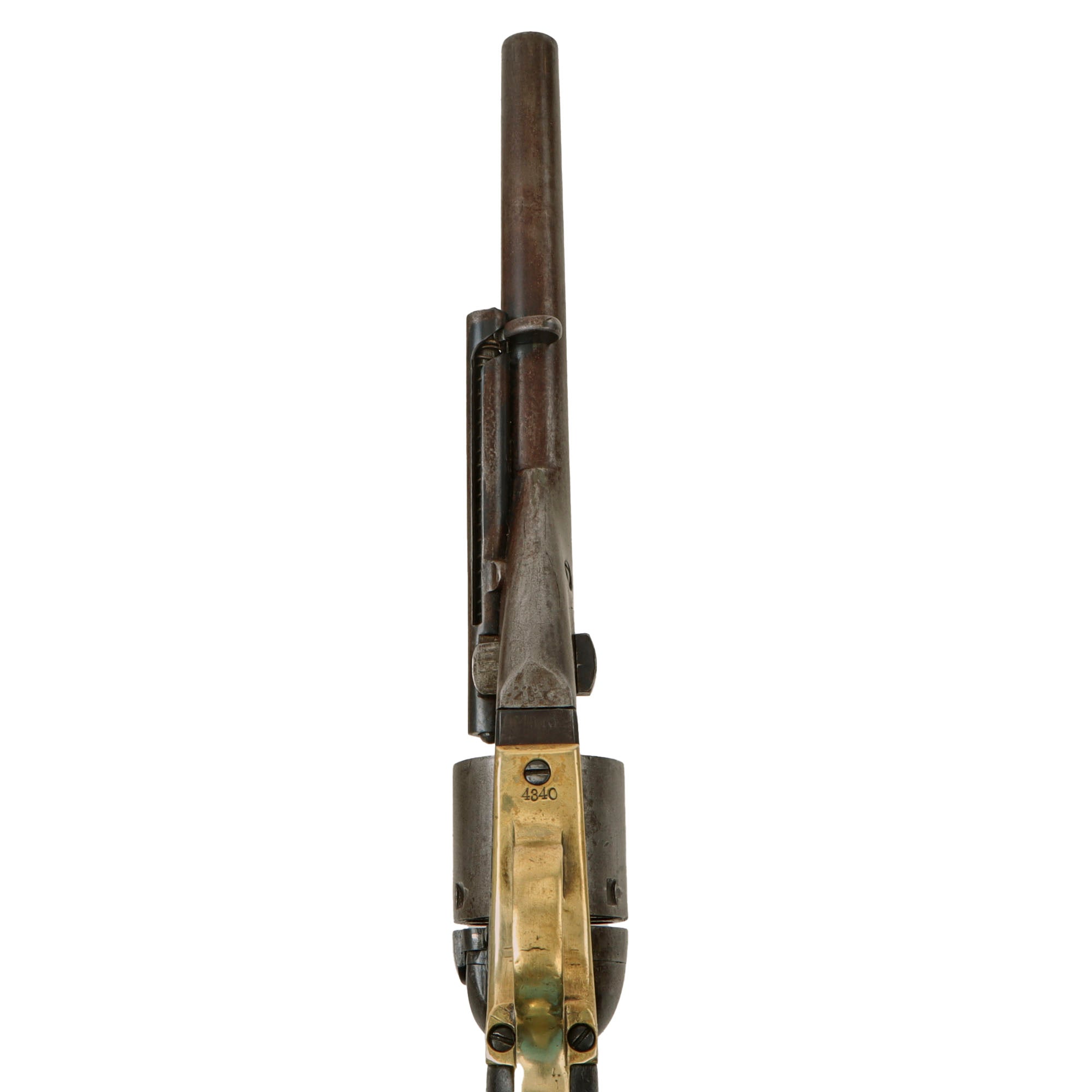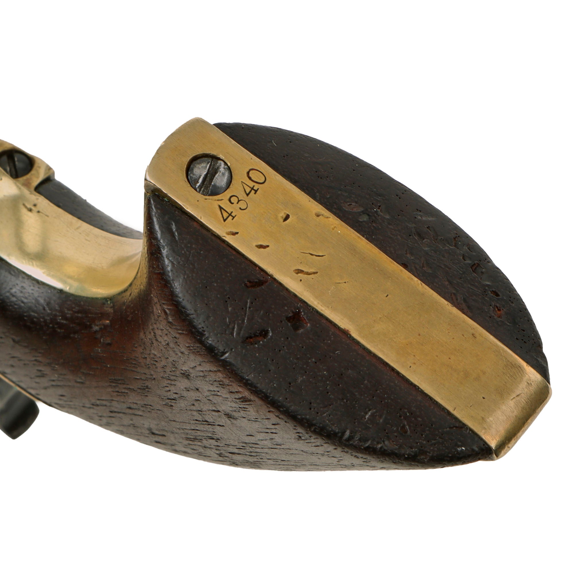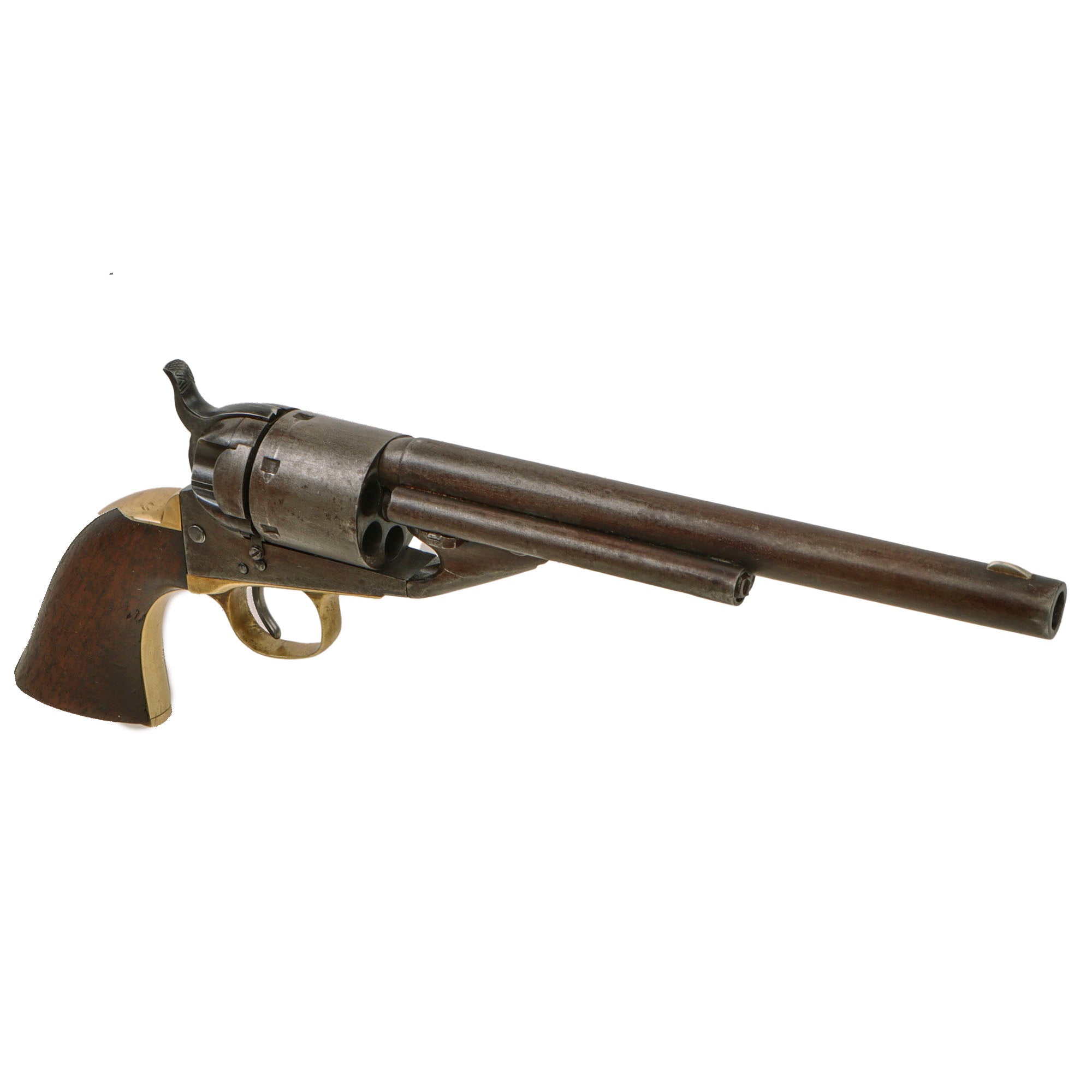This is one such example, which unlike others we have seen looks to have used leftover parts from the Colt Navy Model 1861 Percussion Revolver in .36 caliber. It bears a low serial number 4340, which is almost certainly not part of the Model 1861 serial sequence, and was instead added to parts used to make this factory converted revolver. It looks to have been made mostly from modified parts, not utilizing any purpose built parts like some later examples, though this is often very hard to distinguish.