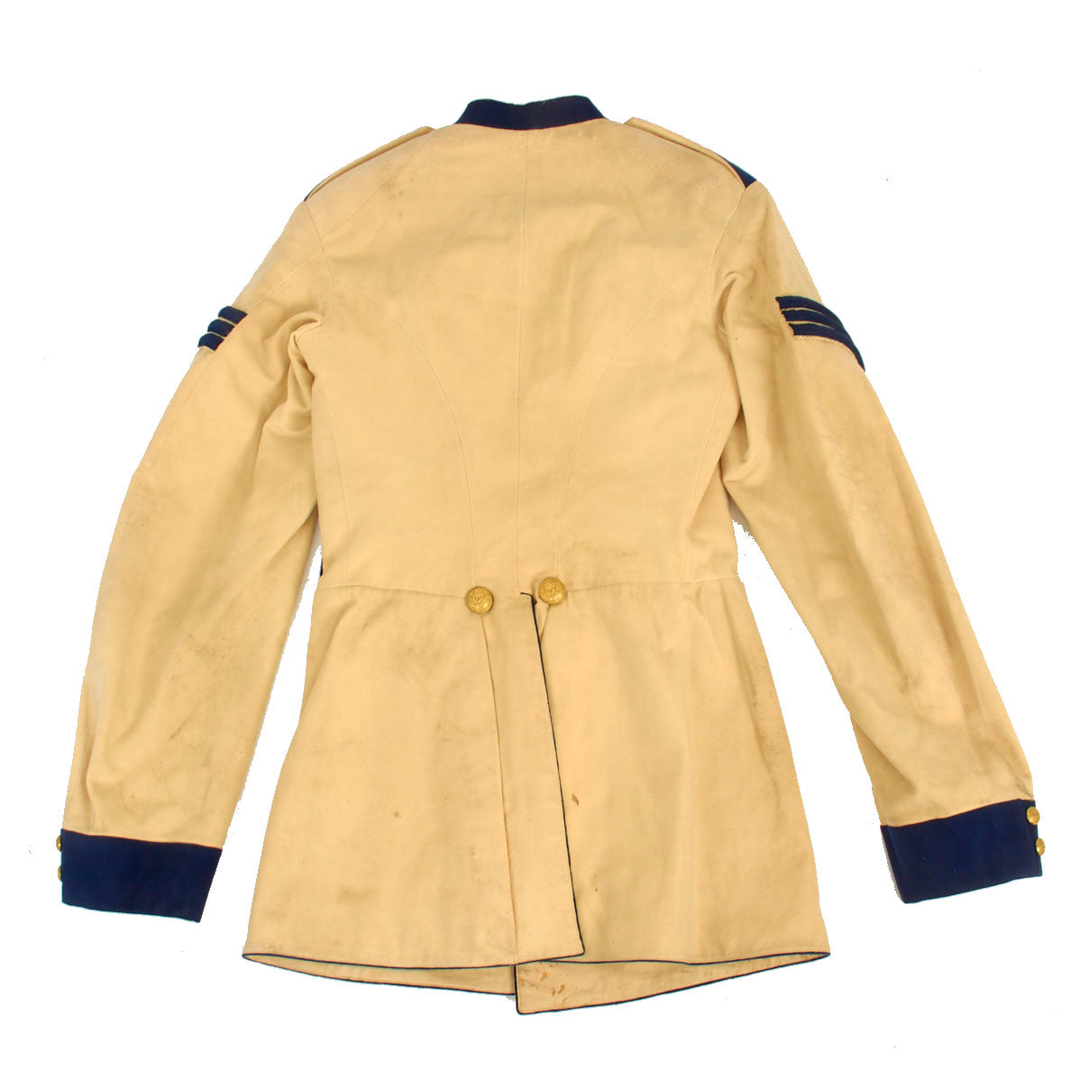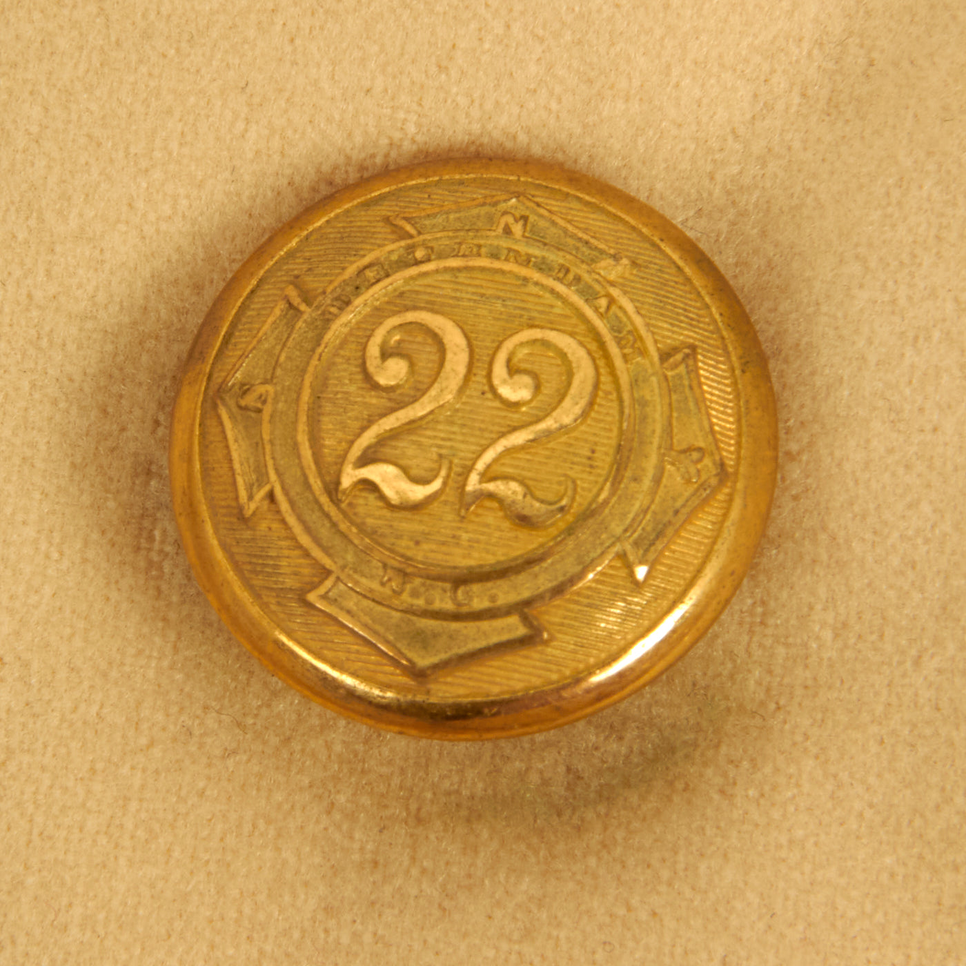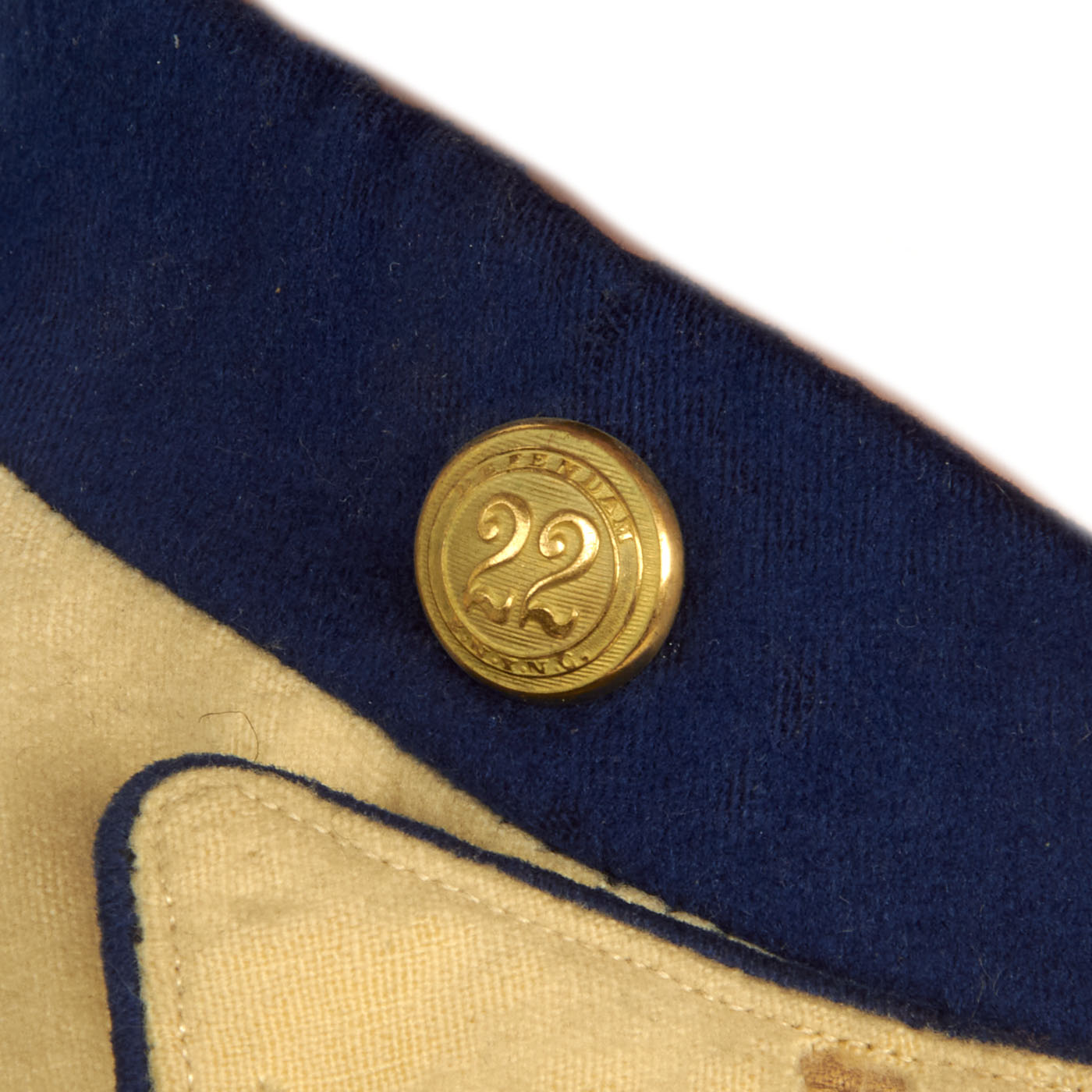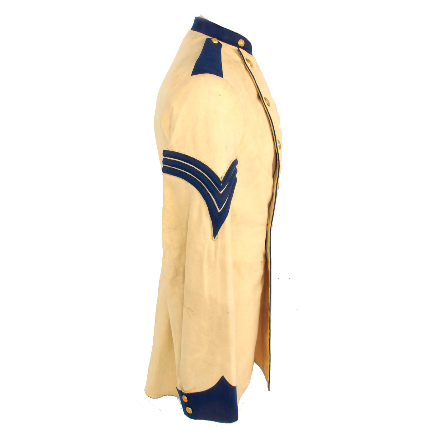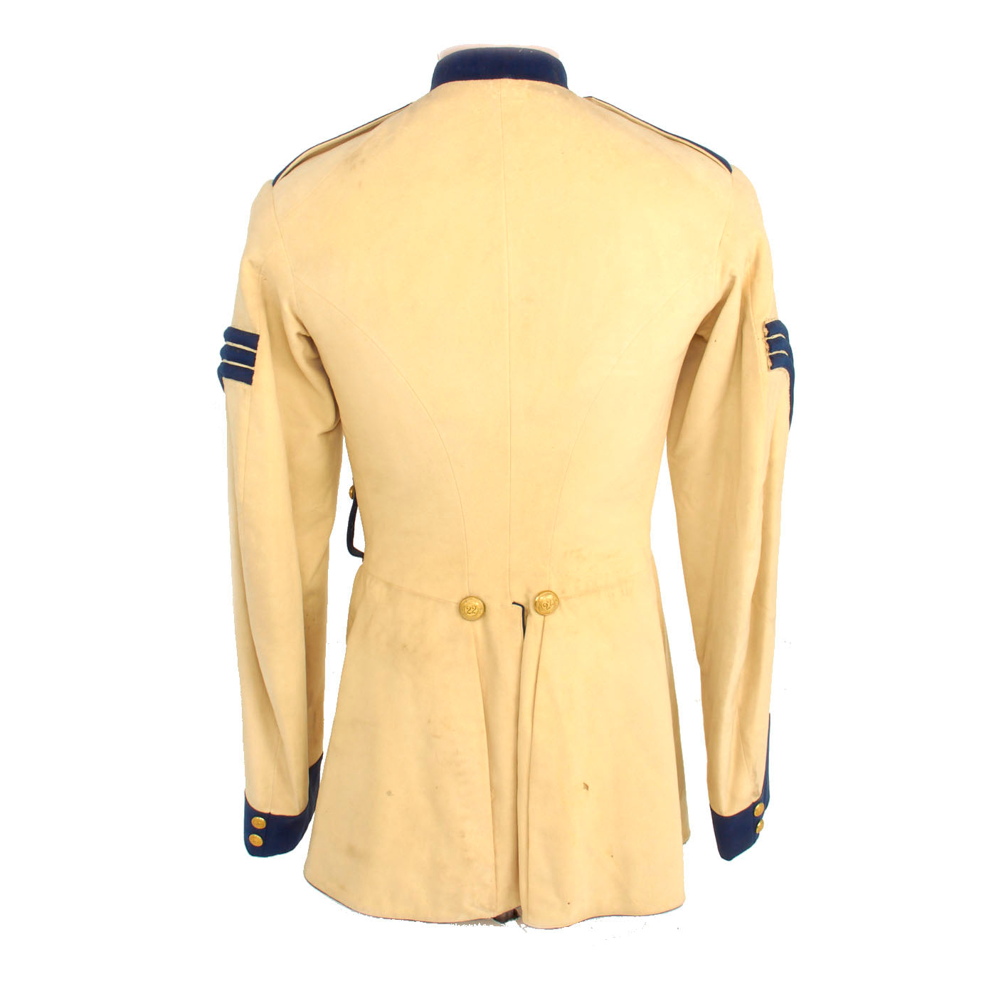Original Item: Only One Available. Indian Wars/Spanish-American War Era white dress coat fitted with 22nd Regiment Militia numbers on the buttons. We have not been able to locate another example like this uniform. The only tag on the inside is a Brooks Brothers of Broadway tag on the inside back lining.