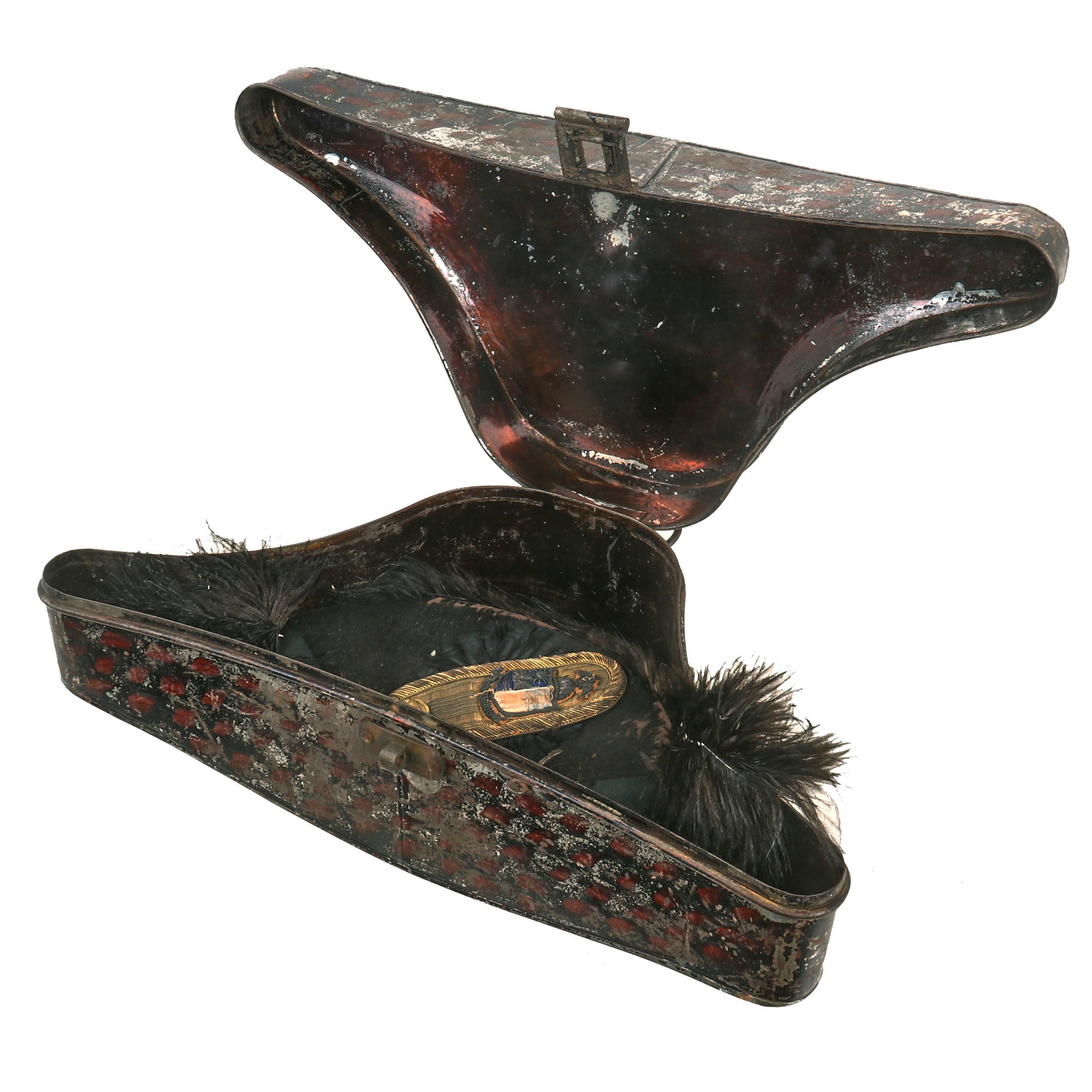 Original Item: Only One Available. Now this is a fantastic piece of history that dates back to the post Civil War era. A Chapeau-Bras, which translates literally to “hat arm”, is a bicorne hat that is designed to be compressed and carried under the arm, formerly worn on dress occasions by men in the 18th Century, and later in the United States Army by General and Staff Officers.
