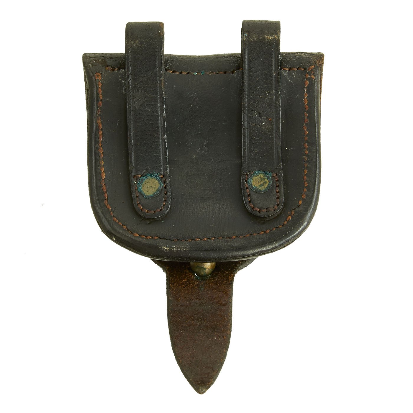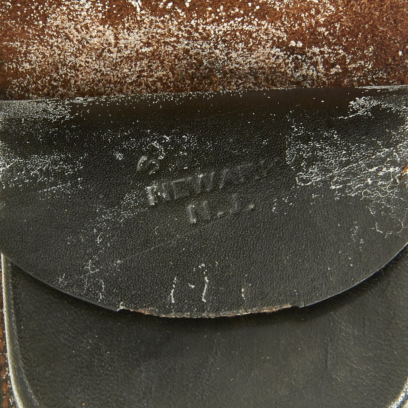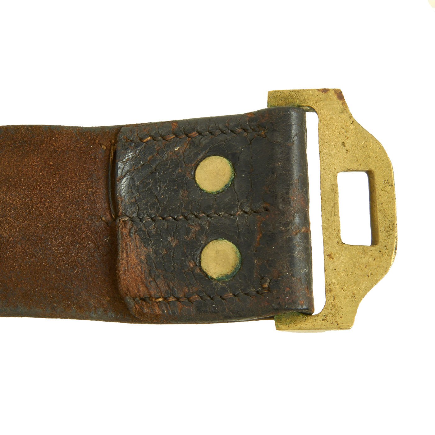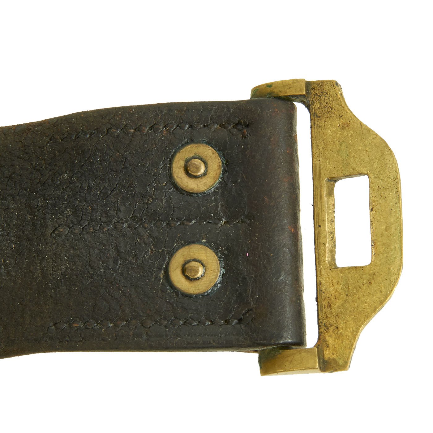 Original Item: Only One Available. This is an 1890s high quality brass eagle plate with silvered laurels and cast eagle. The buckle measures 2 14" x 3 1/4 and has been mounted to a 40 inch by 1 5/8 leather officer waist belt. The leather is sound and pliable displaying normal age and wear. Overall very good condition. Also included is a leather cap box with very nice R. WHITE U.S. ORDNANCE DEPT. Inspection stamp. Box still retains the internal wool padding and has maker stamp from Newark, New Jersey. Offered in excellent condition.
