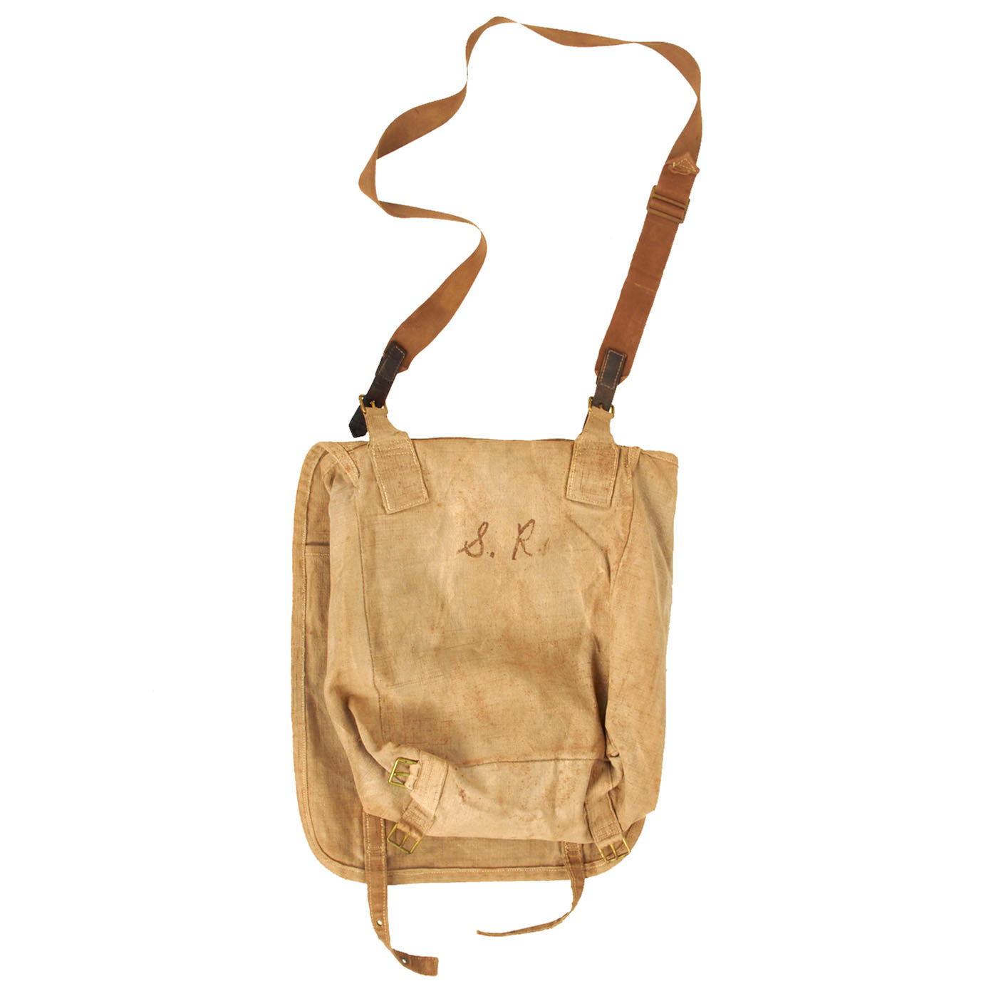 Original Item: Only One Available. The term haversack comes from the seventeenth century Low German word hafersach meaning “a cavalry trooper's bag for horse provender,” literally an oat sack. By the mid eighteenth century the French were using the word havresac to mean “a single strapped bag worn over one shoulder and used for carrying rations.” This term came over into English with the same meaning. Prior to 1851 haversacks were made of white linen in a variety of forms and sizes.