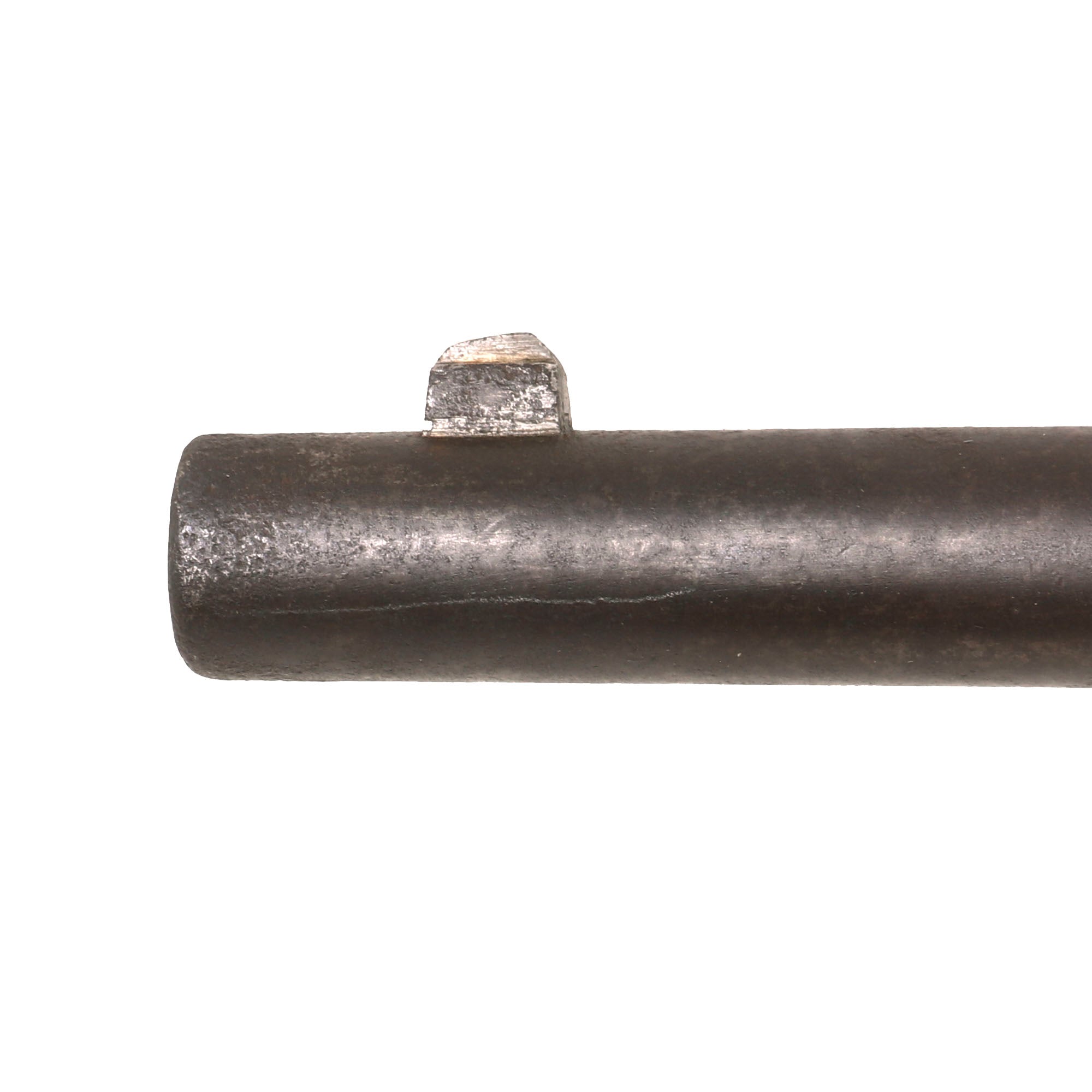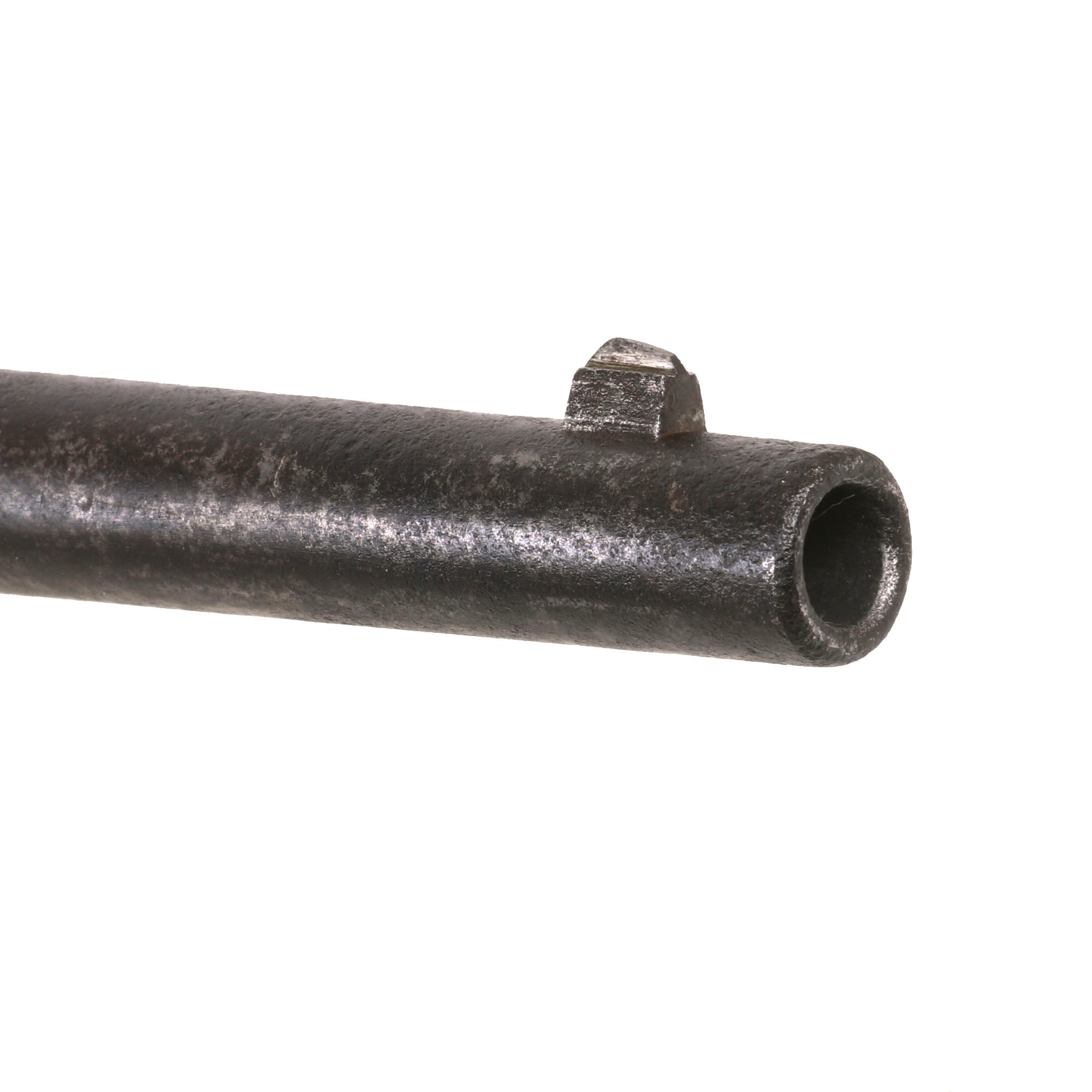 The bore is in very good condition, showing showing a bright finish with strong lands and grooves. There is some wear to the lands, and we can see that there was very light oxidation and fouling in the past, later cleaned away. It looks to have only seen light use during its long service life. The breech block moves correctly, and the extractor is still present and functional, though we have not tested it with real brass. The saddle ring bar is still present, with the correct saddle ring present. It has the door for a storage compartment on the butt plate, however the butt stock was never drilled out for one.