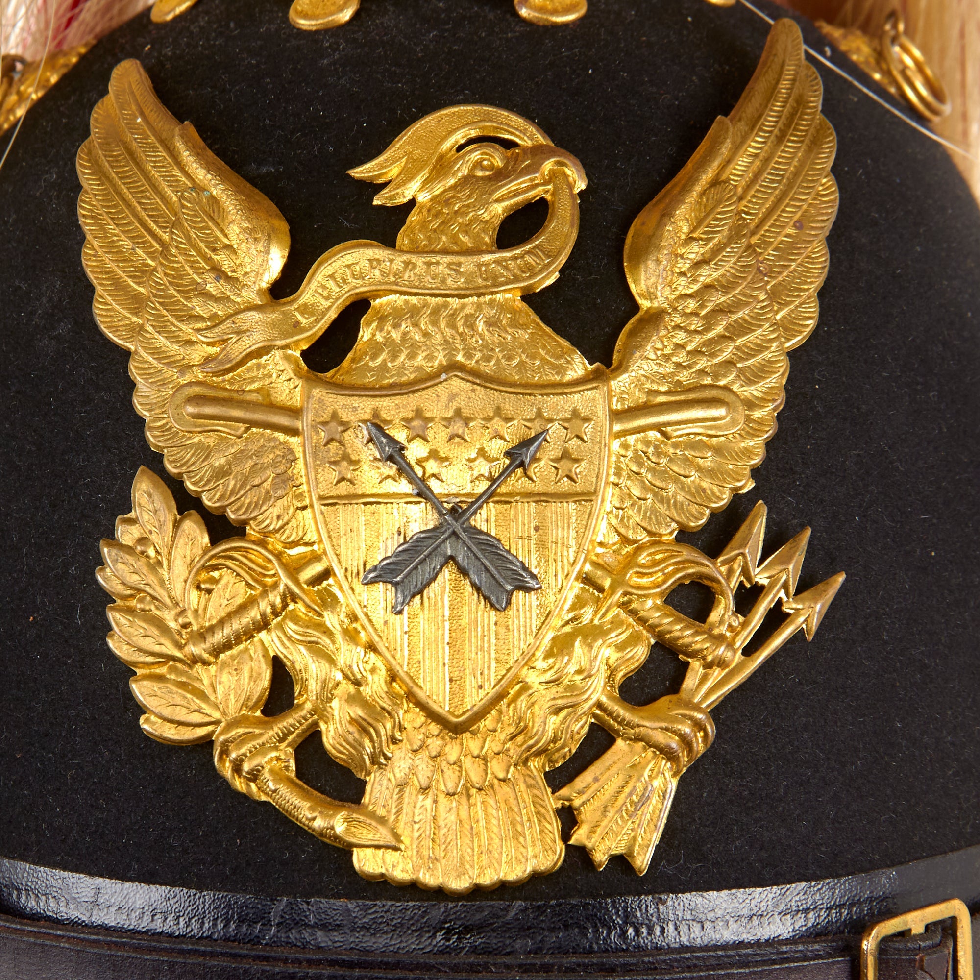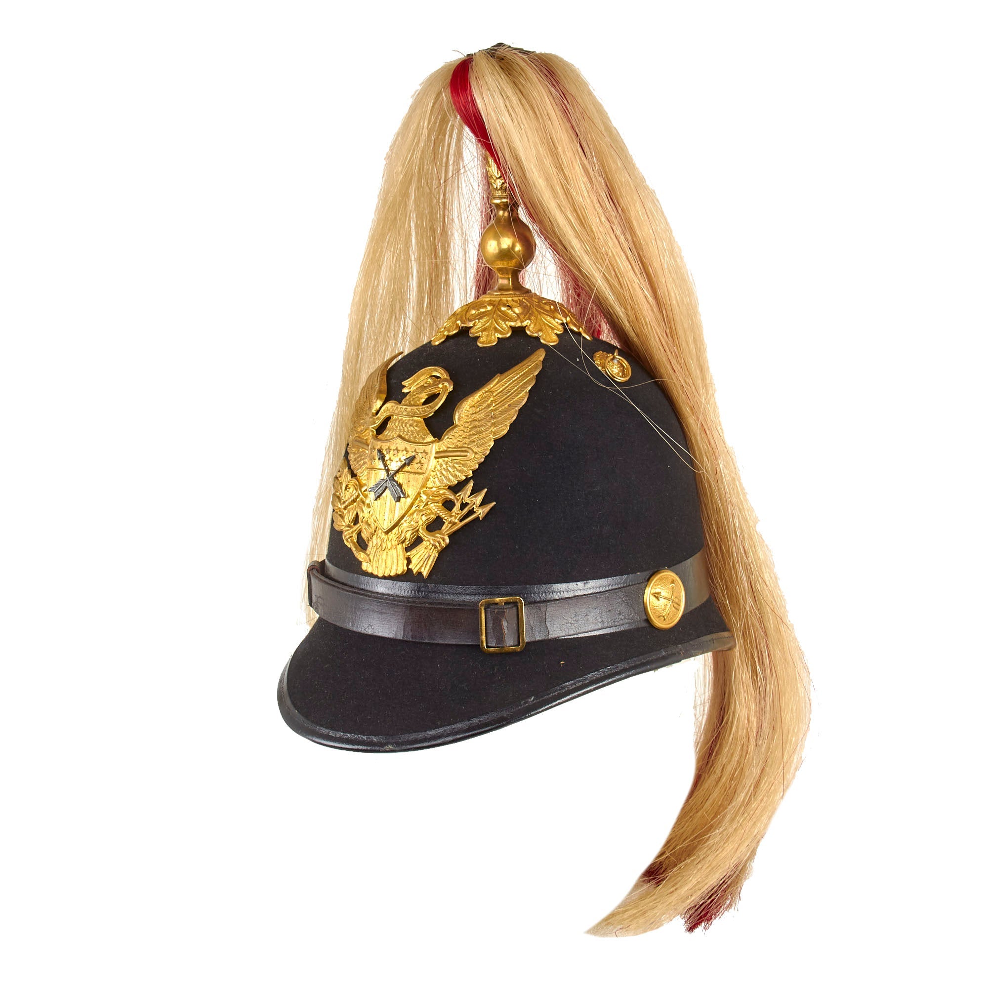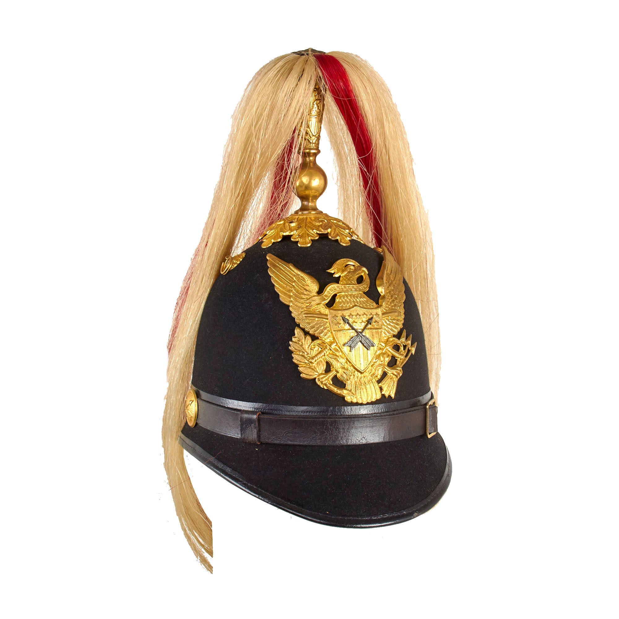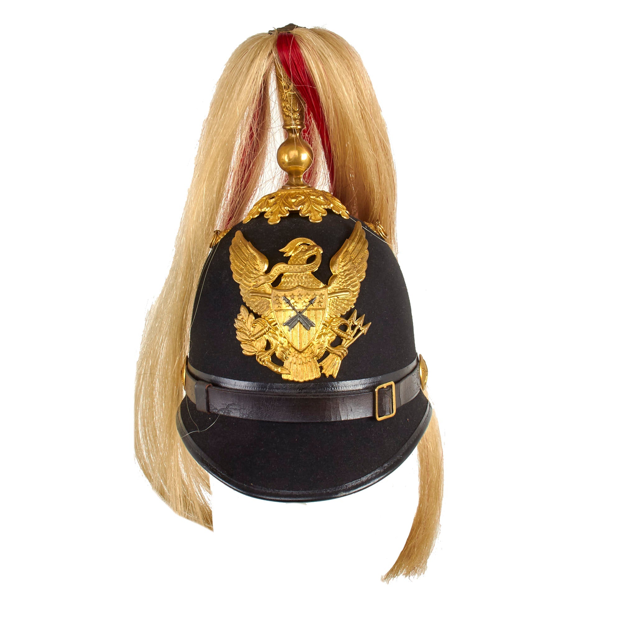 Original Item: One Only. Much like our European cousins in the 1880s, the U.S. Army started to adopt spiked pith helmets, often in white, with all brass mounts and occasionally plumes. These saw active service in the Spanish American War of 1898 especially in the tropical climate in Cuba. While often referred to as "pith helmets" in the broad sense, it was made from cork, like many European variants, such as the Wolseley pattern used by the British.