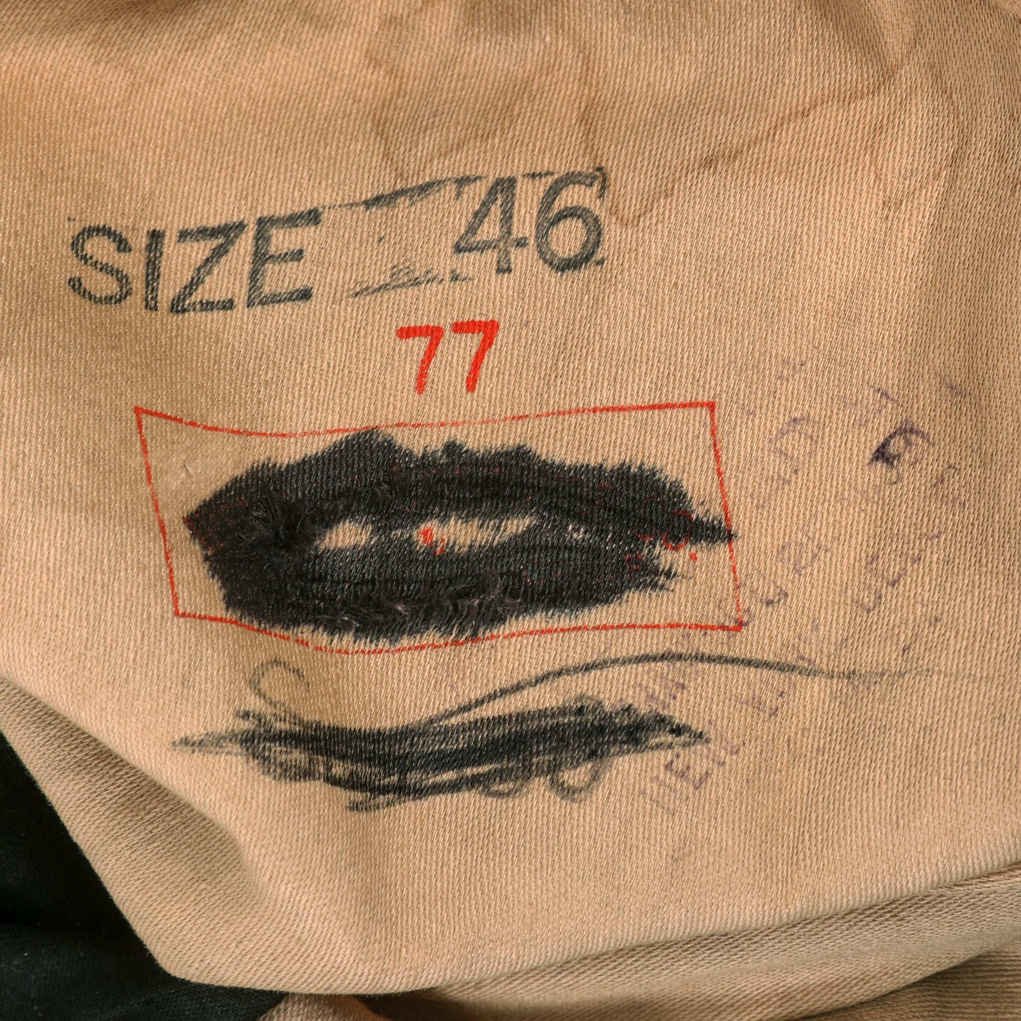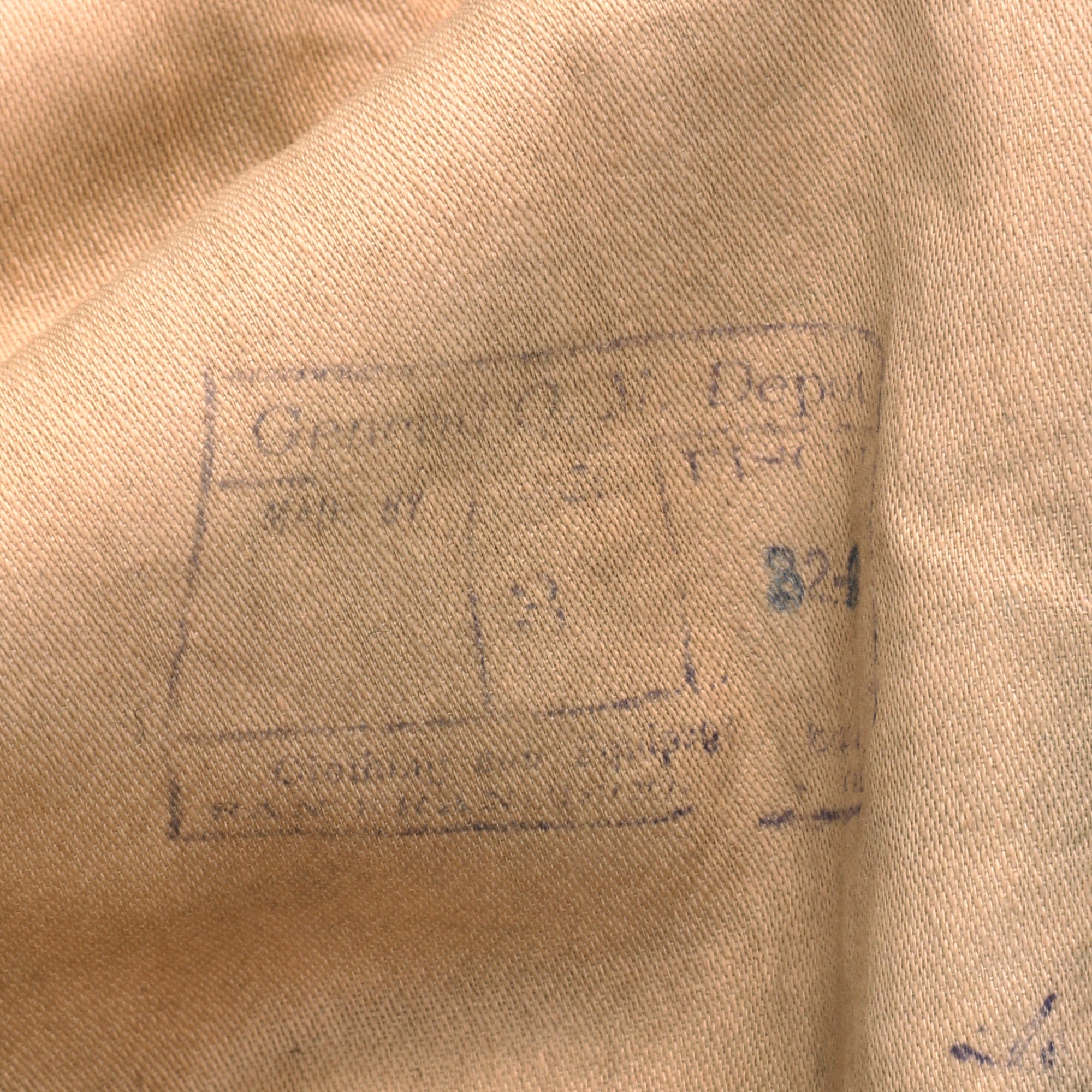 The greatcoat retains all of its U.S. general service eagle buttons, which have normal shields in the center instead of a letter denoting branch or company. There is a General Quartermaster Stamp in the interior left shoulder, but it is too faded to read any dates, just the numbers 92-93, which we assume is either a size marking or issue date, for 1892-1893. The opposite shoulder has a Costume house stamp, which is very commonly found on attractive uniforms of this period, being used for films & plays with military settings in the 20th century. There is also a size stamp, 56.