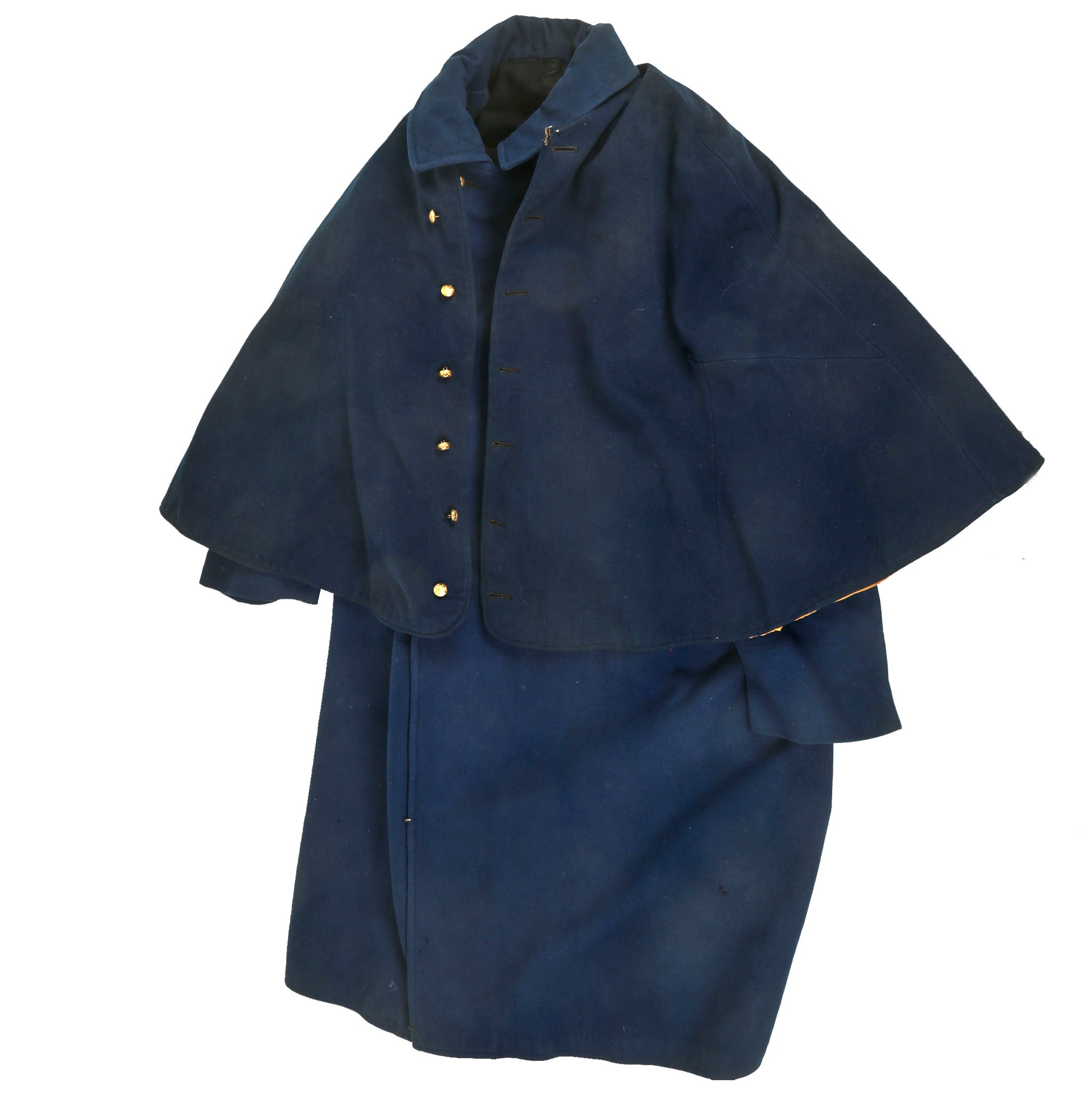 Original Item. Only One Available. One of the most attractive uniform pieces from the Indian War period is absolutely the M1885 Mounted Greatcoat. This is a gorgeous original example and even retains its original yellow-interior cape, denoting that the soldier is in the Cavalry.