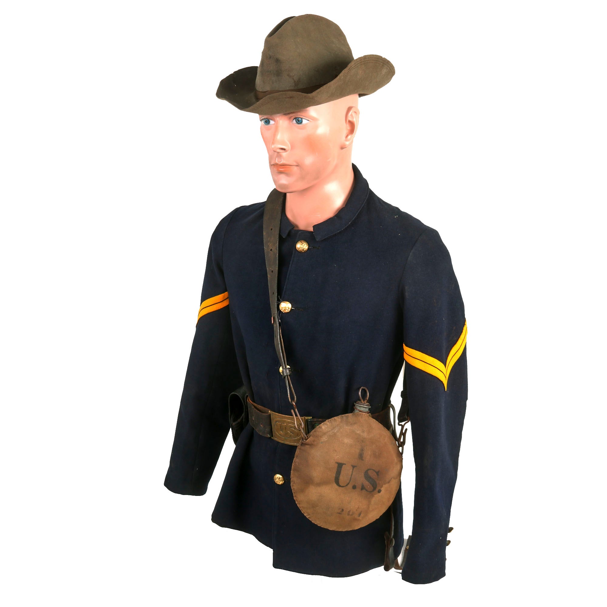Original Items: Only One Set Available. Between the early 1870s and early 1880s, a considerable lack of uniformity was noted in army clothing, particularly in the field uniform. A closer look at period photographs reveals that even within the same company, there were up to four different patterns and several variations of uniforms simultaneously. This lack of consistency was primarily due to the surplus of uniforms and equipment that the Army Quartermaster Department had at the end of the Civil War.