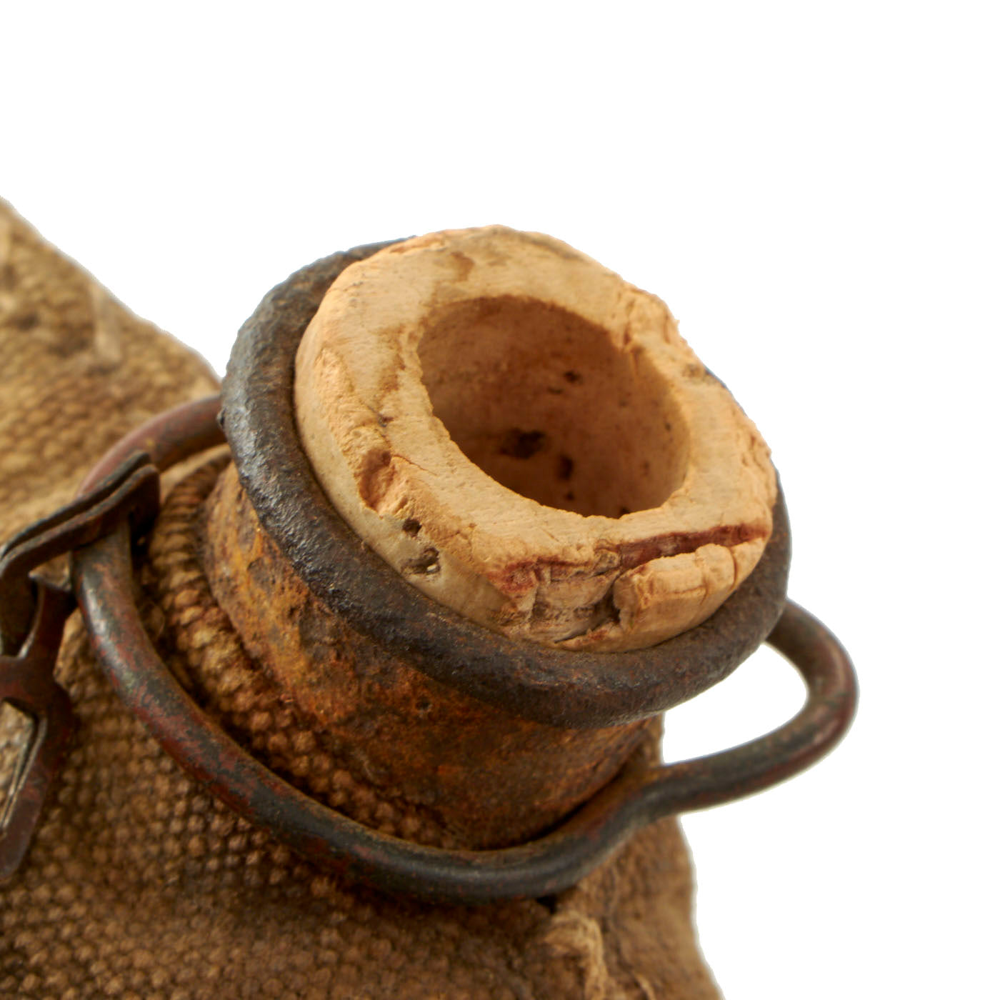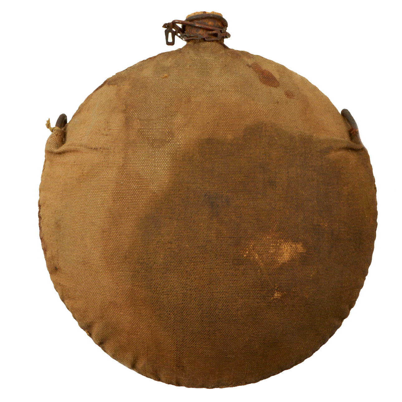 The Model 1878 Canteen is in well used condition, but is still in very solid condition. Patina, signs of corrosion, and age are evident. The original cork stopper is missing, with only part of the retention chain remaining.