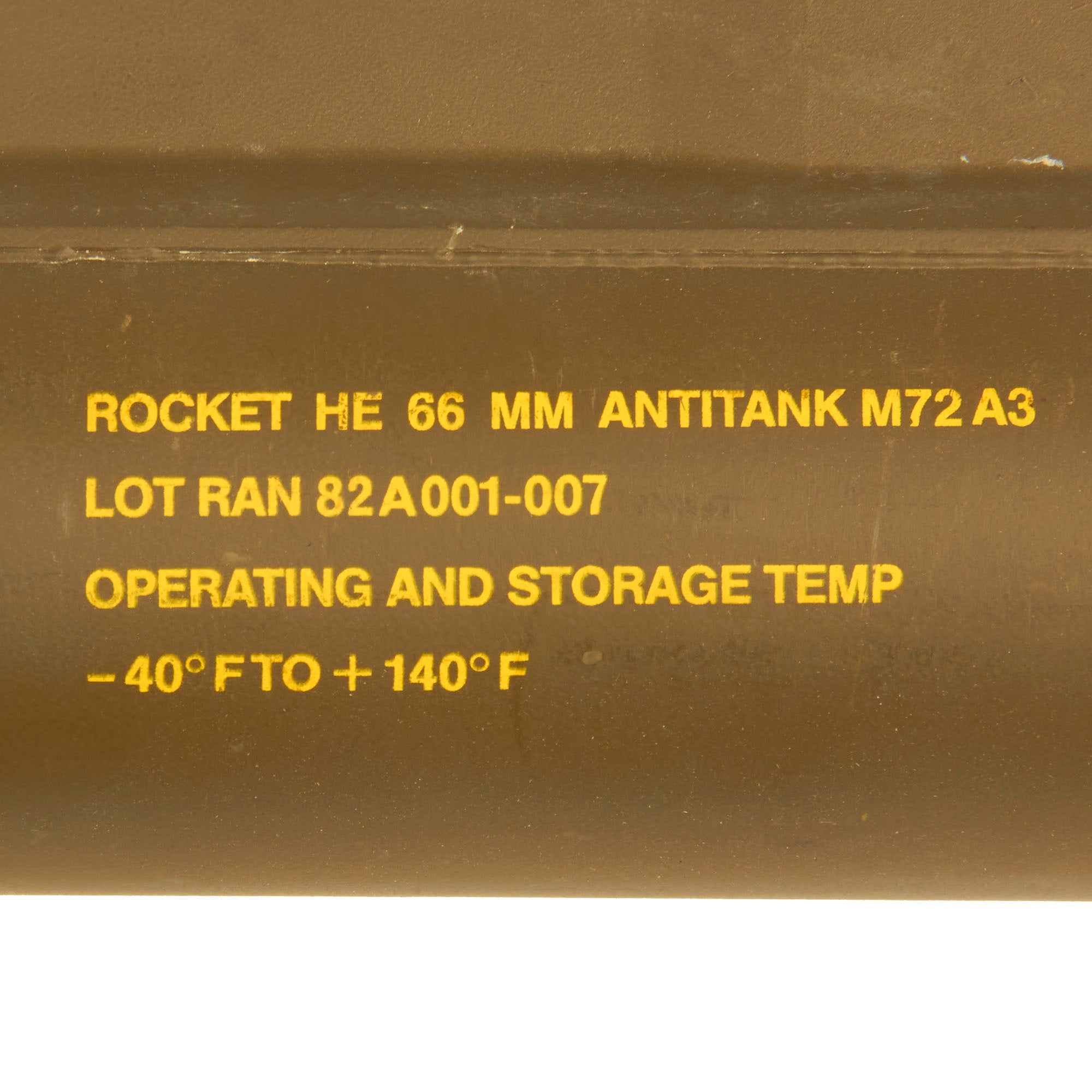 Original Item: Only one available. This is an inert non-firing BATF compliant M72A3 LAW Light Anti-Tank Weapon offered in good condition. Once fired, these tubes are unable to be reloaded.