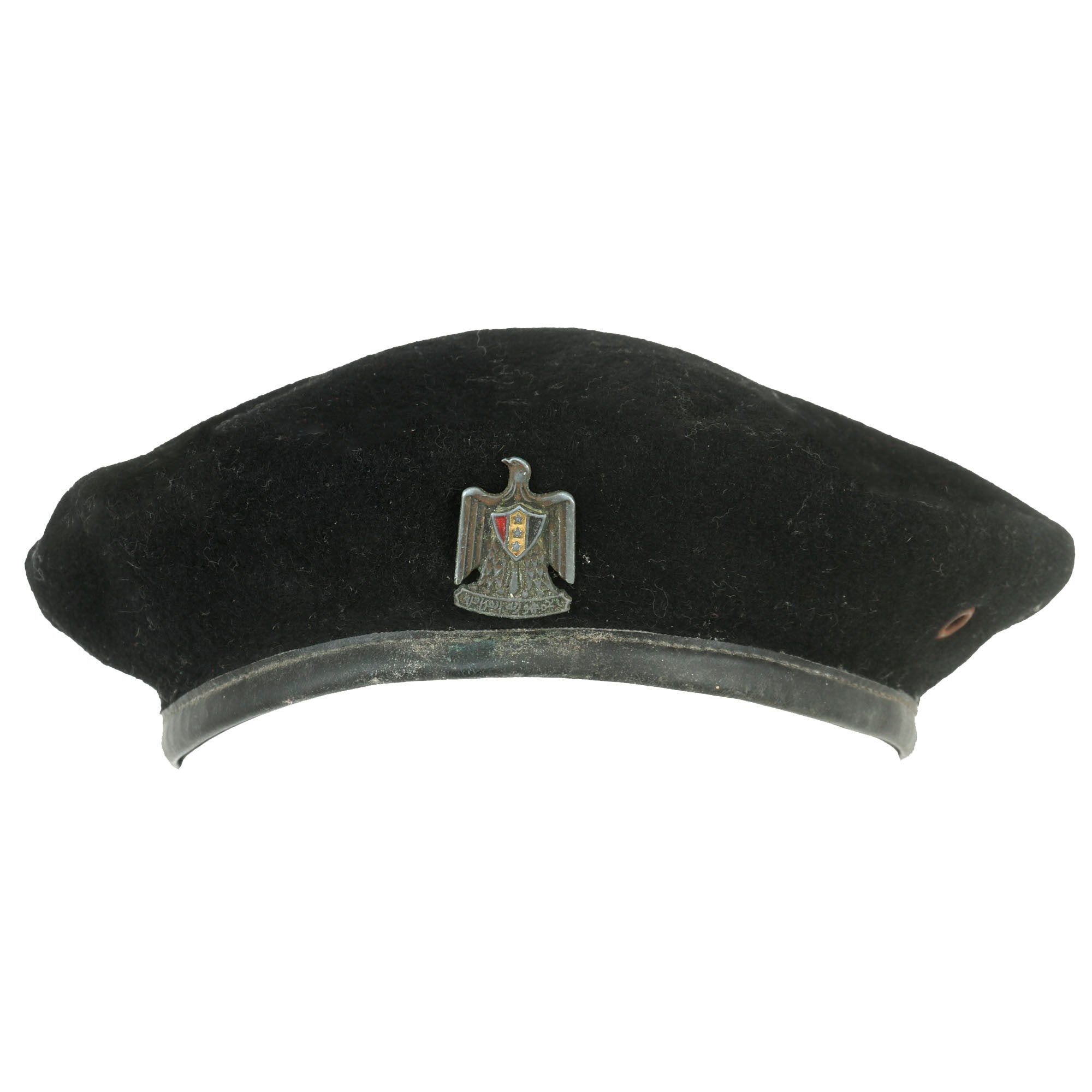 - Iraqi beret with Officer’s cap eagle affixed. Faint markings.