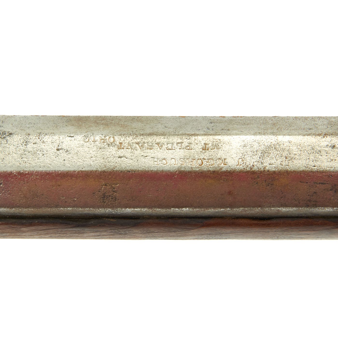 We estimate that this octagonal barrel rifle was made about 1840, and was marked on the barrel by the maker: