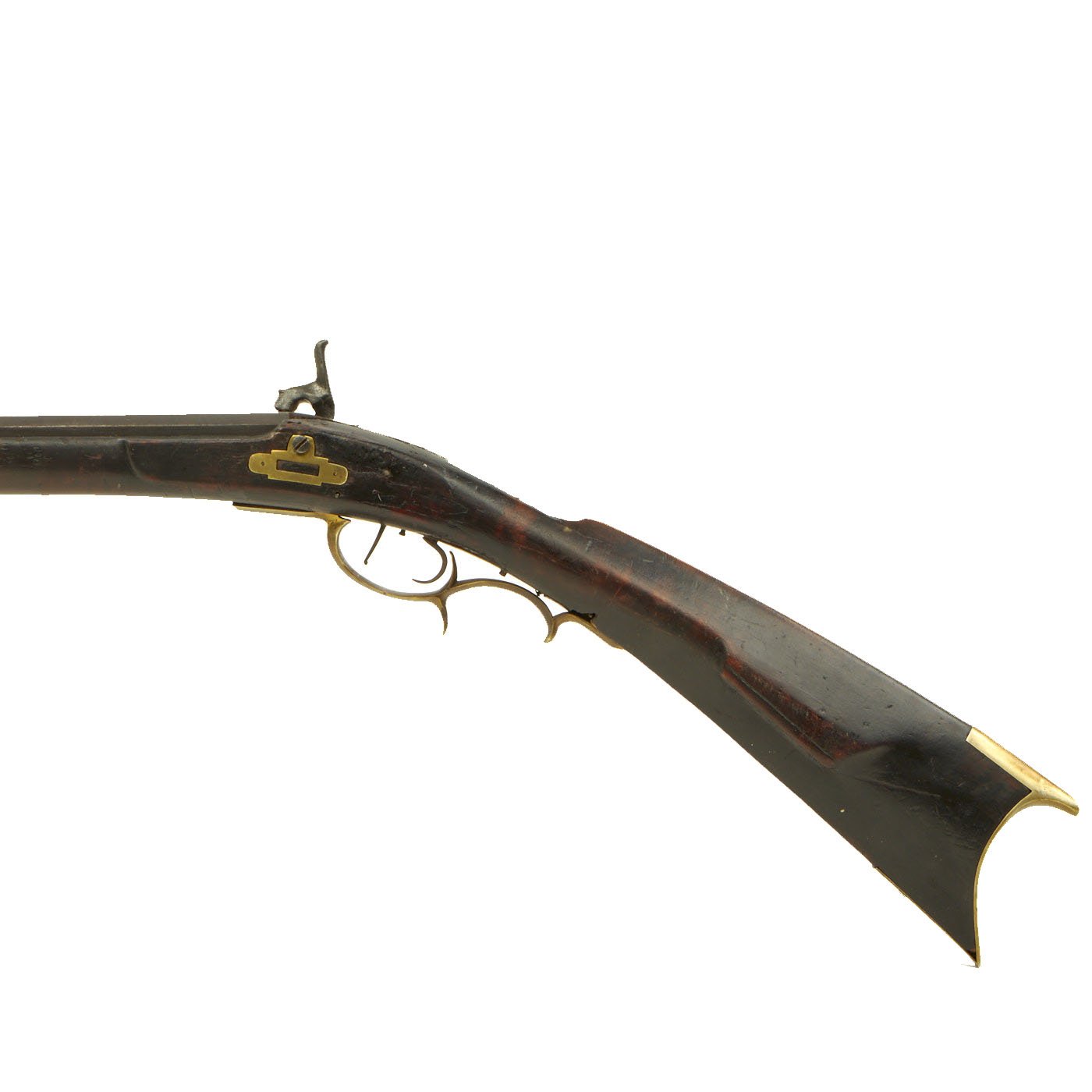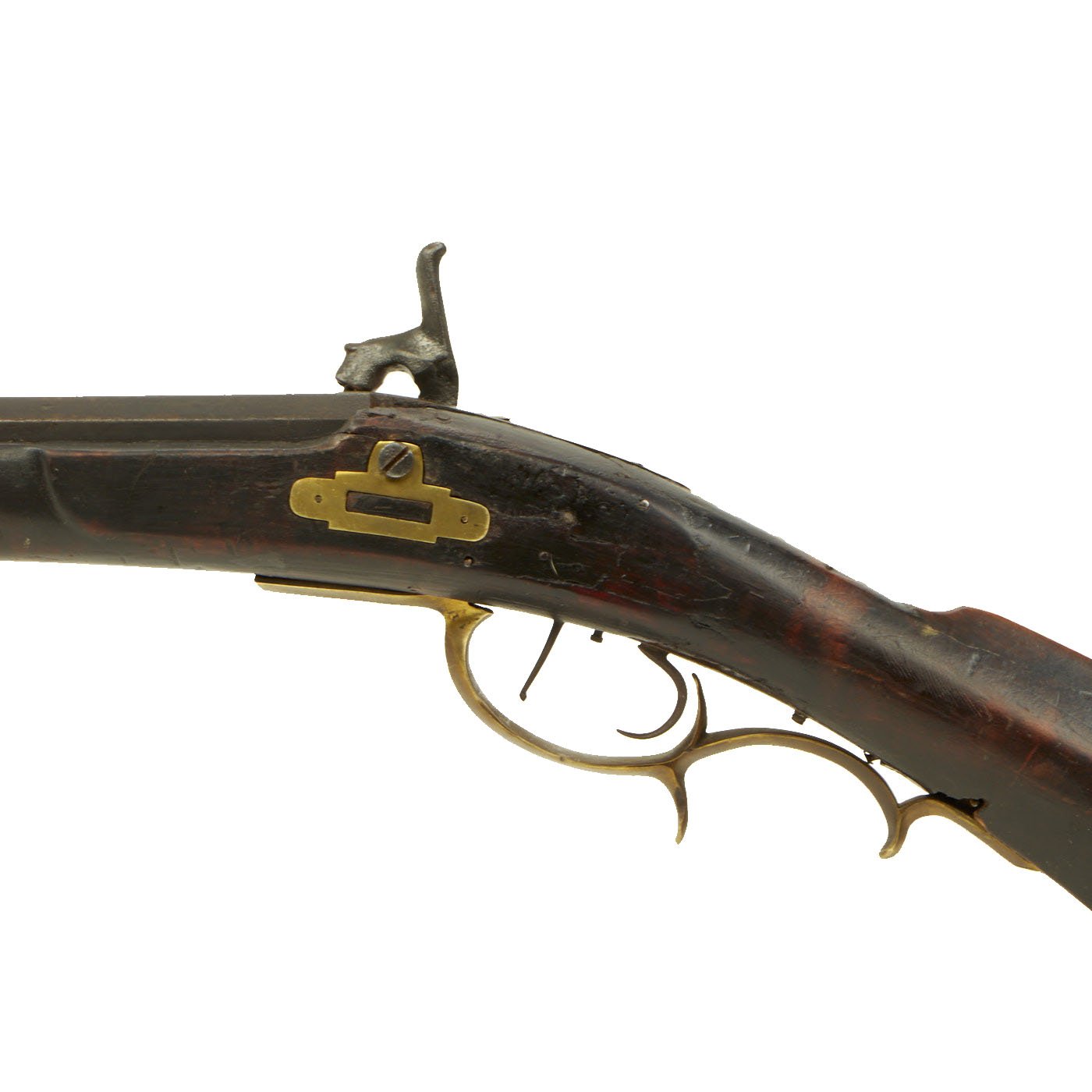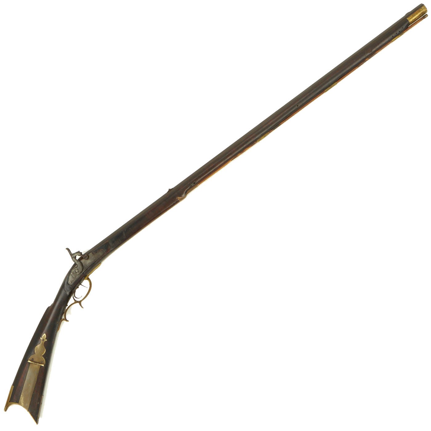 Original Item: Only one available. Here is an octagonal barreled "Kentucky" rifle, which more correctly is known as a Pennsylvania Rifle. It has the typical curved butt stock used in the mid 1840s more southern areas. It looks to be in .30" caliber, a very common size for these rifles, and has a heavy octagonal barrel with seven groove rifling. The rifle was built in the United States, most likely in the Kentucky area, using a British-made trade lock with a clear maker mark: