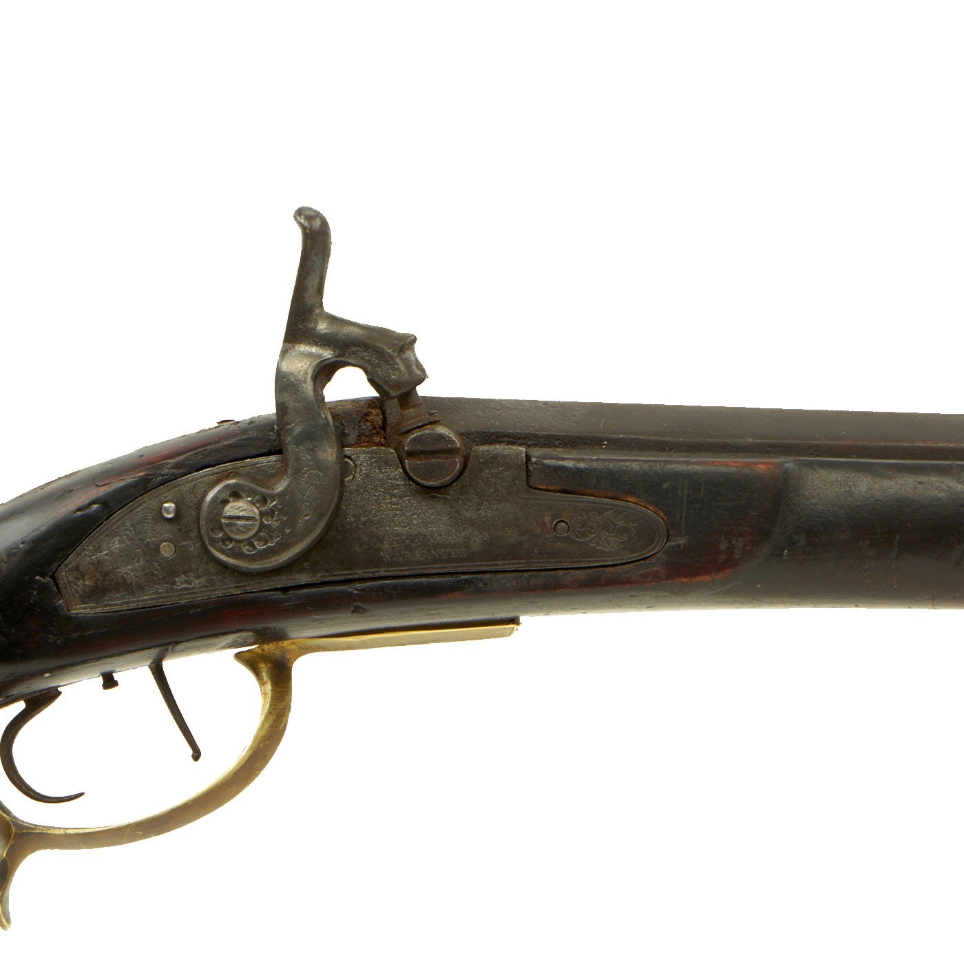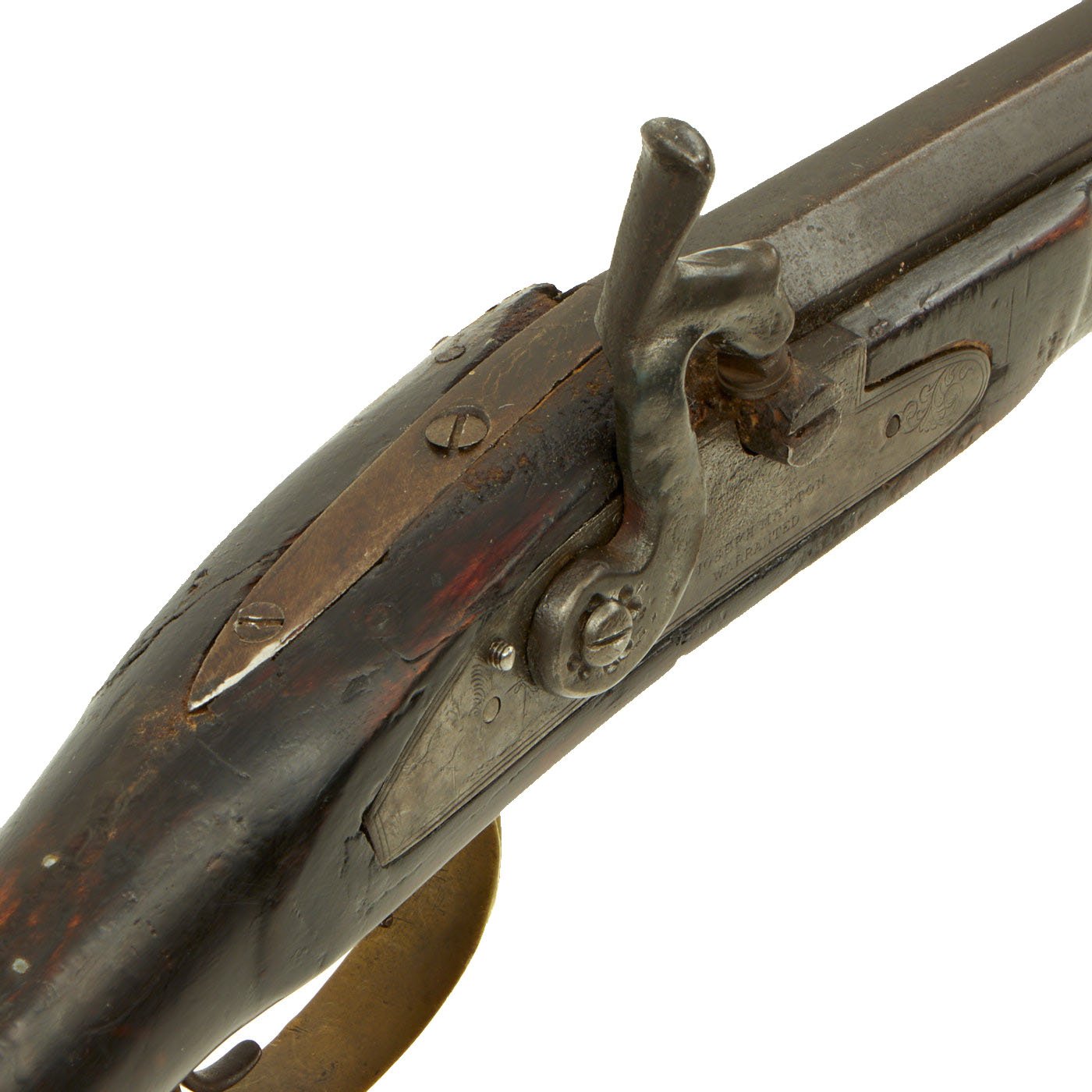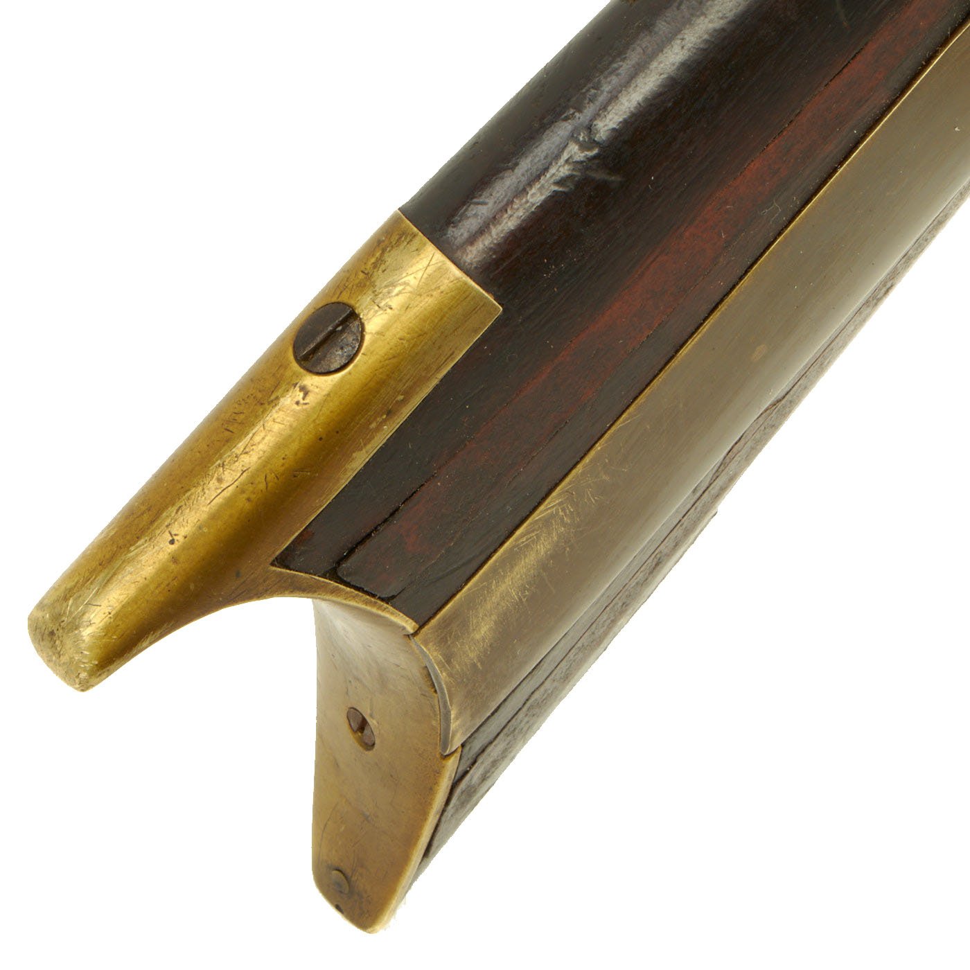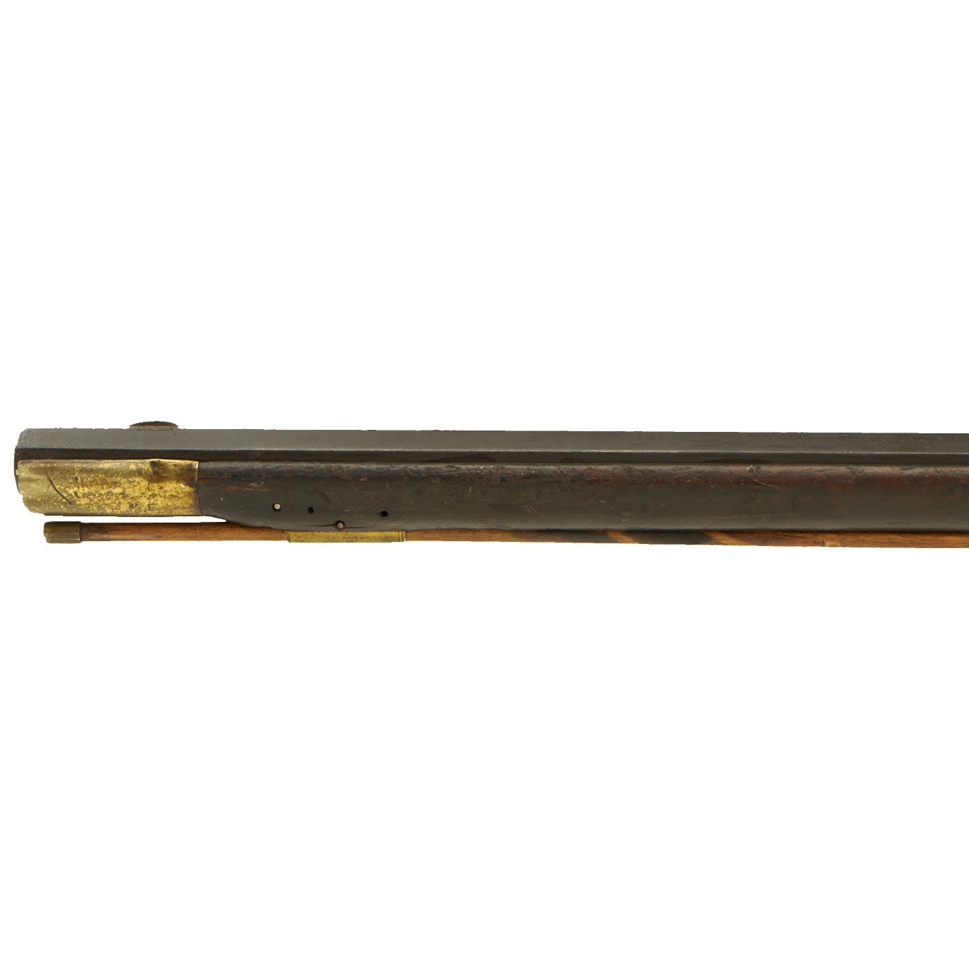 Original Item: Only one available. Here is an octagonal barreled "Kentucky" rifle, which more correctly is known as a Pennsylvania Rifle. It has the typical curved butt stock used in the mid 1840s more southern areas. It looks to be in .30" caliber, a very common size for these rifles, and has a heavy octagonal barrel with seven groove rifling. The rifle was built in the United States, most likely in the Kentucky area, using a British-made trade lock with a clear maker mark: