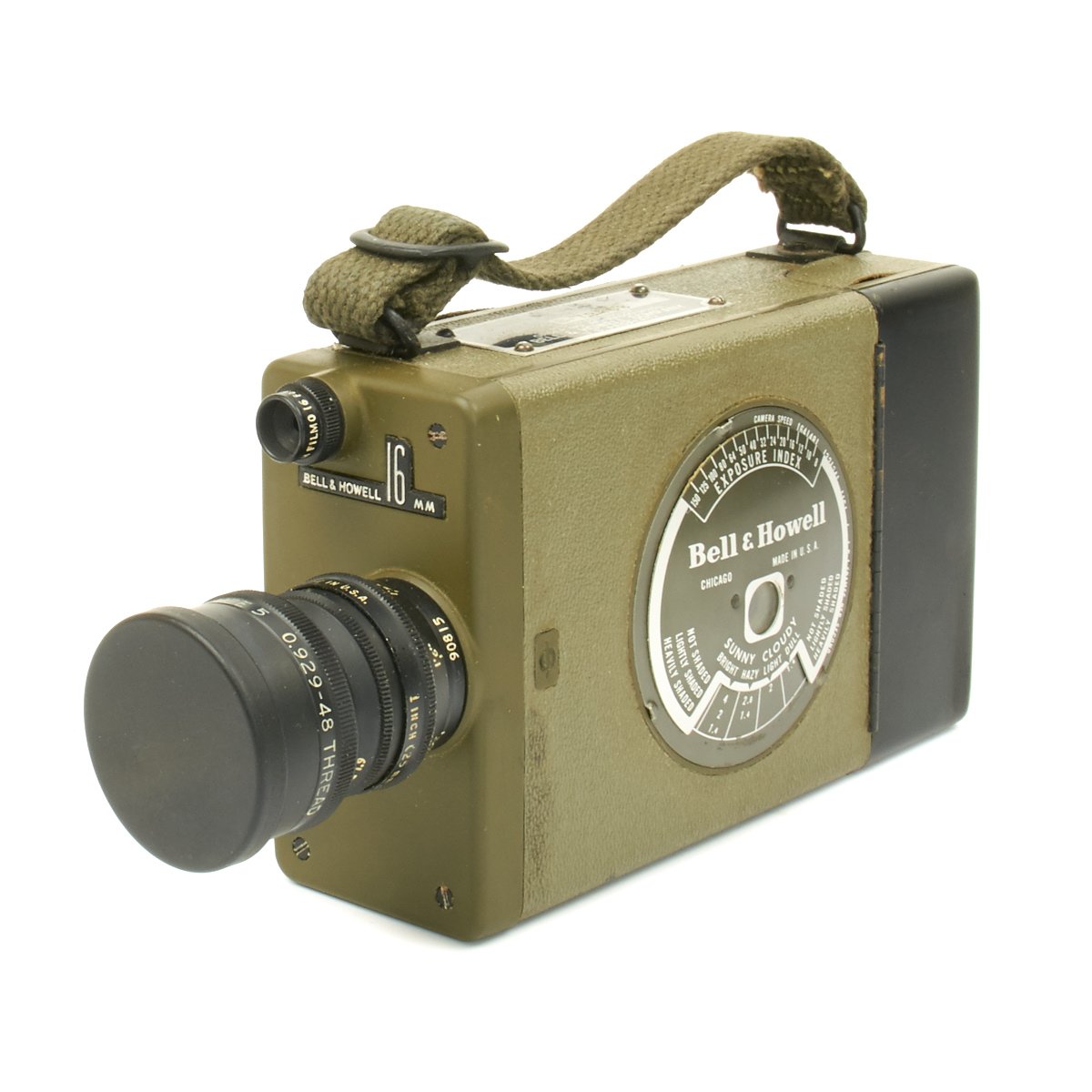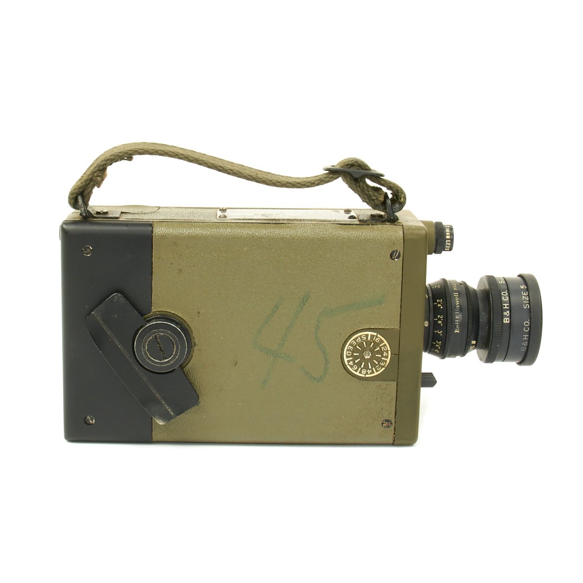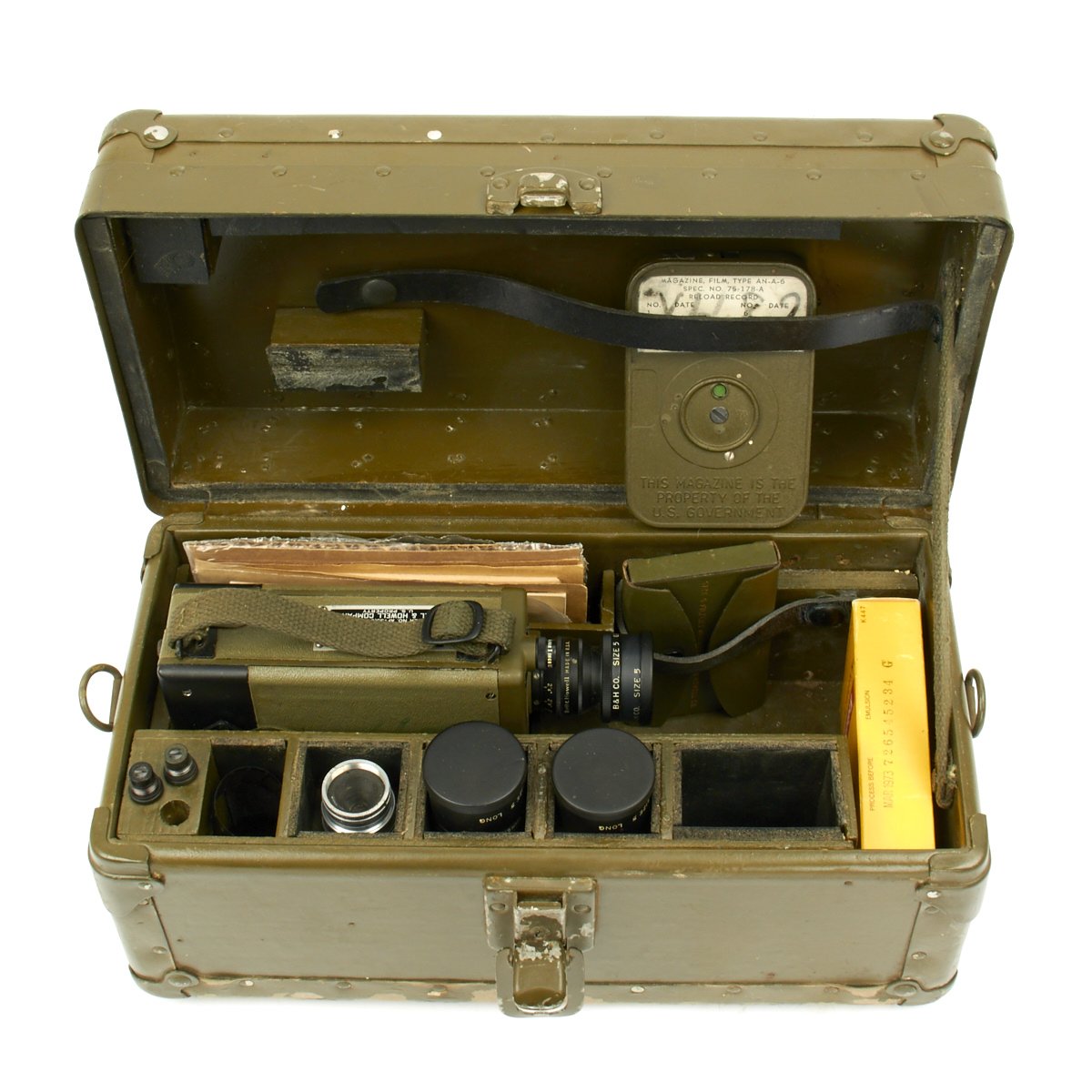 Original Item: Only One Available. Officially designated as Camera Set, Motion Picture, KS-11(1) manufactured for the U.S. Army at the end of WWII into the Korean was and used into the Vietnam War. This 16mm film camera features a OD green and Black aluminum body and uses 16mm magazines. Set originally consisted of four lenses (.7", 1", 2", 4") (one lens missing) with matching viewfinders, set of filters, chalkboard, lens-cleaning tissue, manual, all fitted in combat case with data plate that reads: