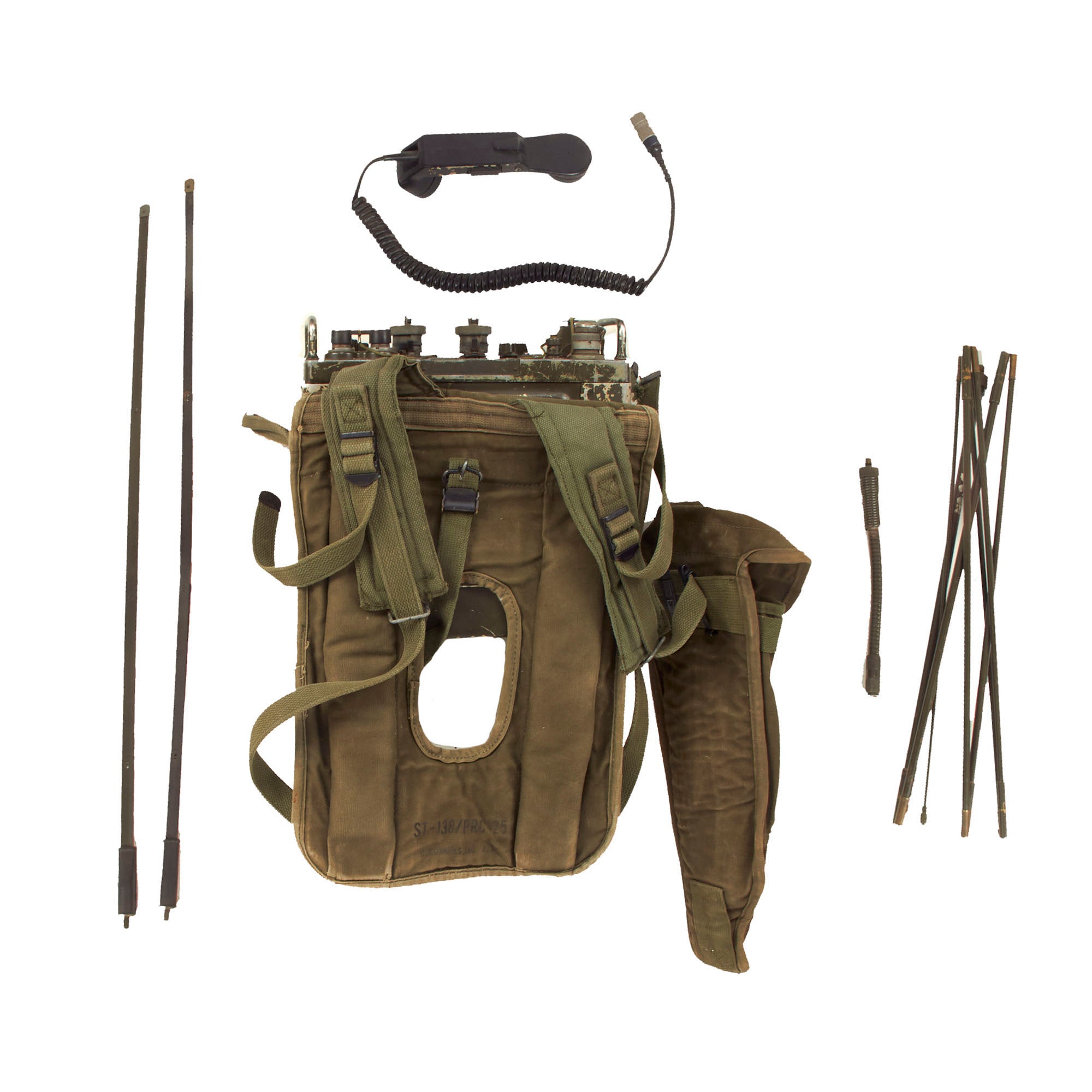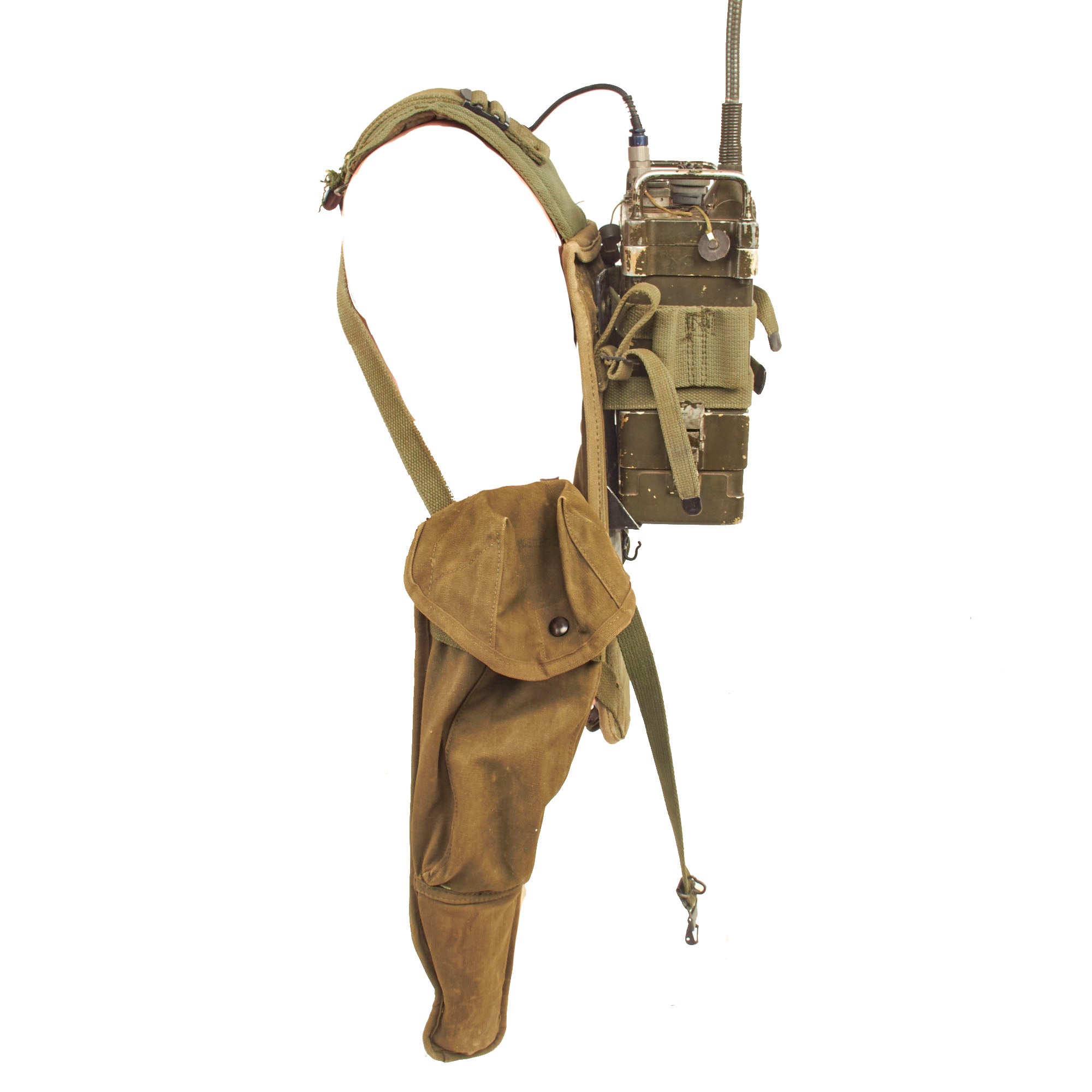 Original Item: Only One Available. This is an original Korean War Era AN/PRC-77 Radio Back Pack Set with a ST-120/PR canvas carry harness set.