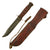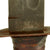 This knife features original painted leather washer grip, which is in very good condition, with no cracks or splitting, and it has a heavy steel pommel with cross pinned tang. The blade has a good amount of the original finish, though it definitely shows wear and some light oxidation on the blade flat. The factory grind marks can still be seen throughout the blade. It has been sharpened once or twice, but still has the original shape. It is currently sharp, so handle it with care!